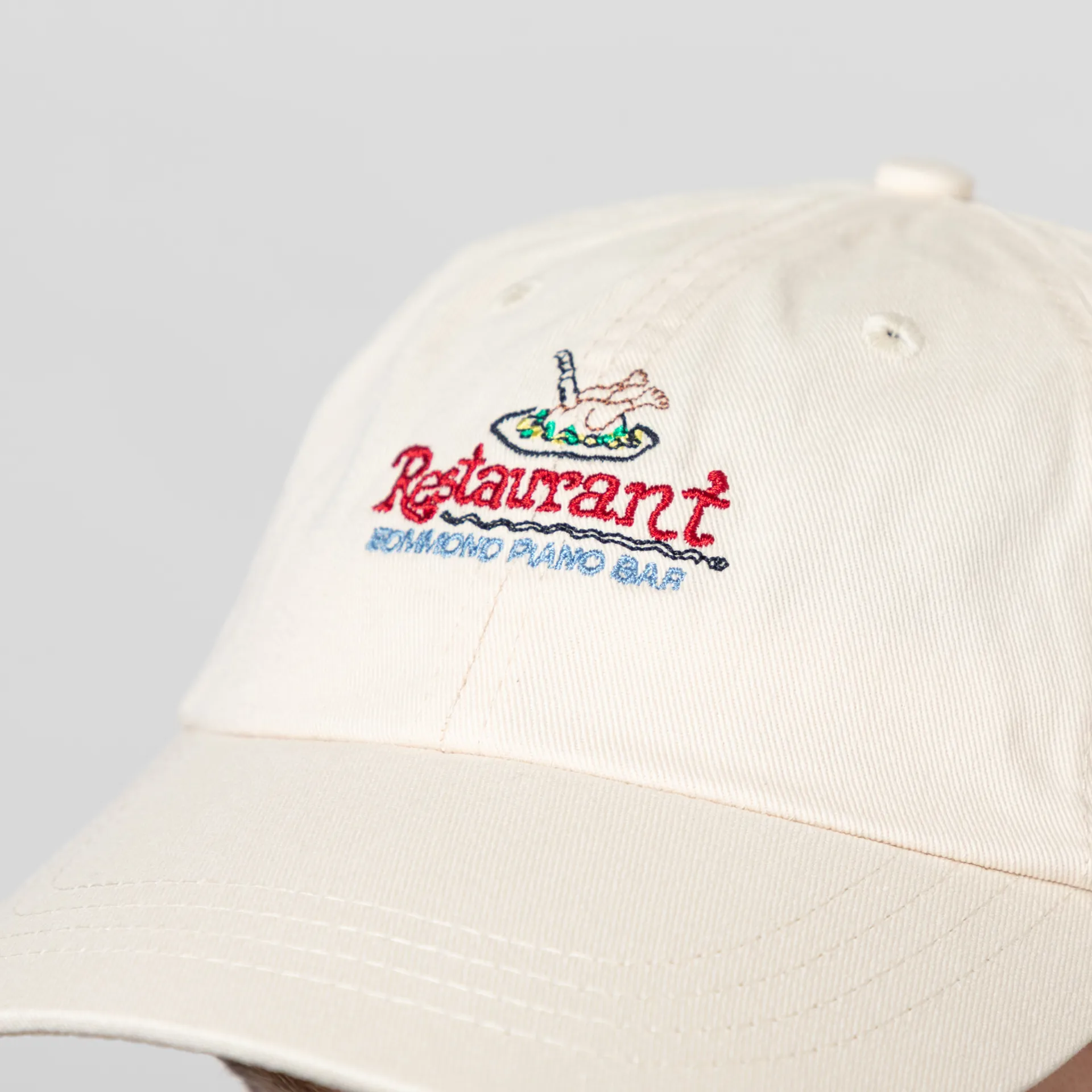 A six-panel from Edmmond Studios, constructed from 100% cotton with a curved brim, embroidered eyelets and adjustable strap