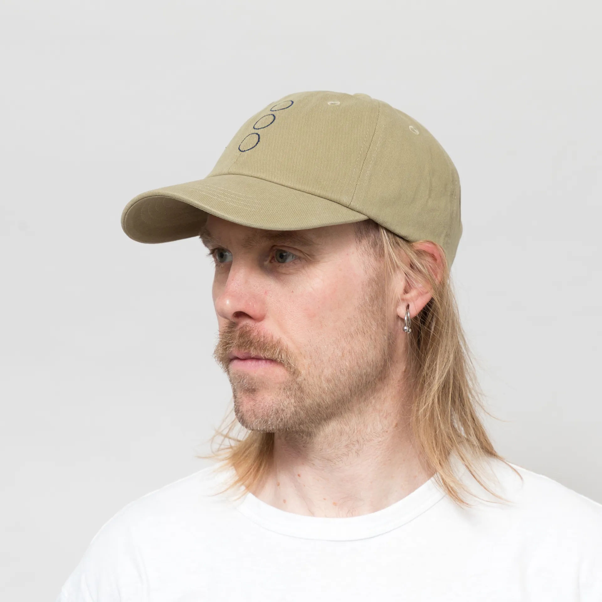 A six-panel from Folk, constructed from durable cotton twill with embroidered eyelets throughout. Featuring a firm, curved peak, an adjustable rear strap and finished with a branded rubber circle to the back and embroidery to the front.