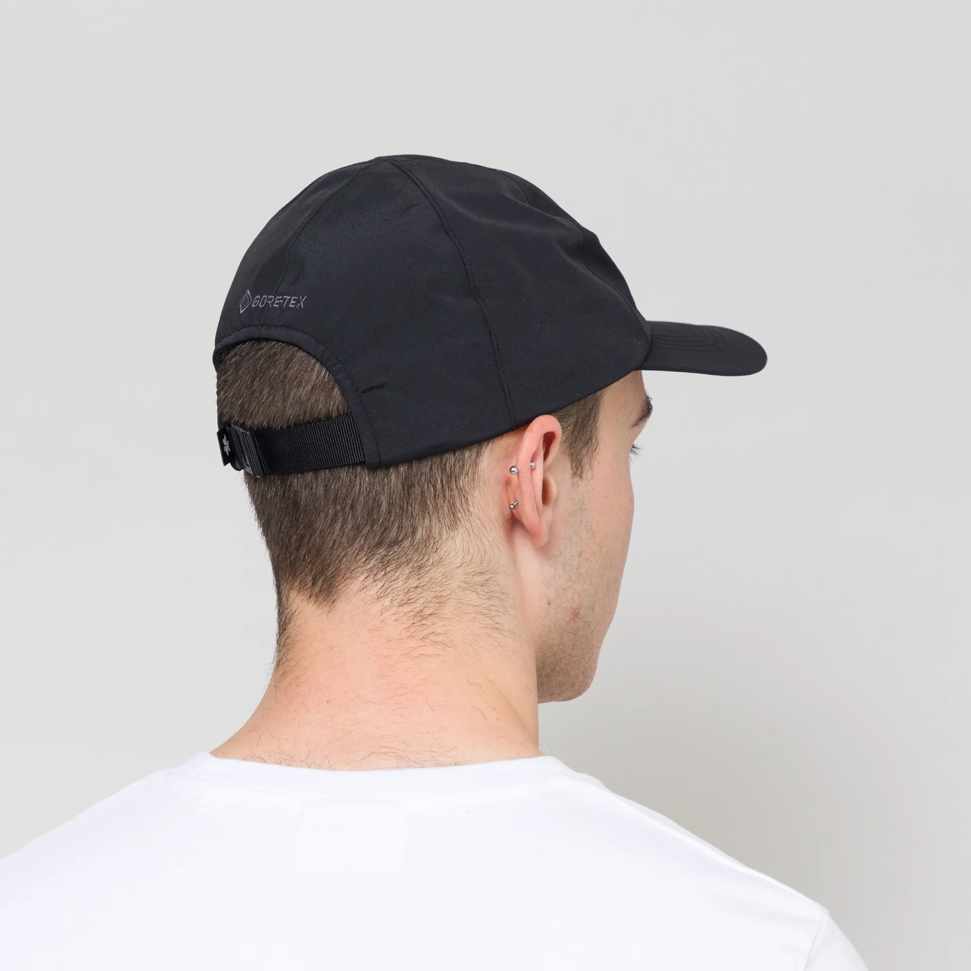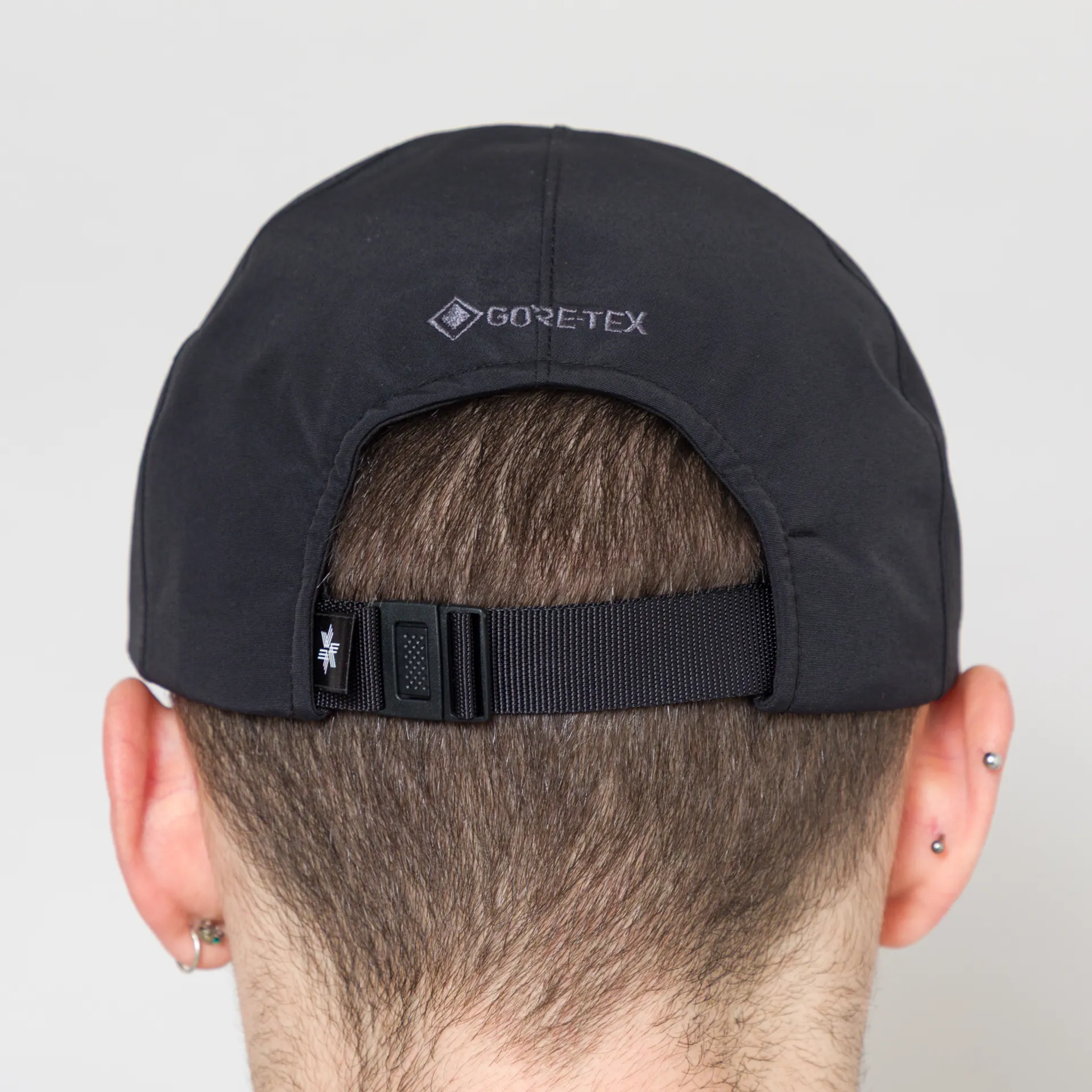 A six-panel from Goldwin, constructed from a two-layer GORE-TEX fabric, making it reliably waterproof and windproof. It has a slightly curved brim, an adjustable strap to the back and an embroidered logo to the front.