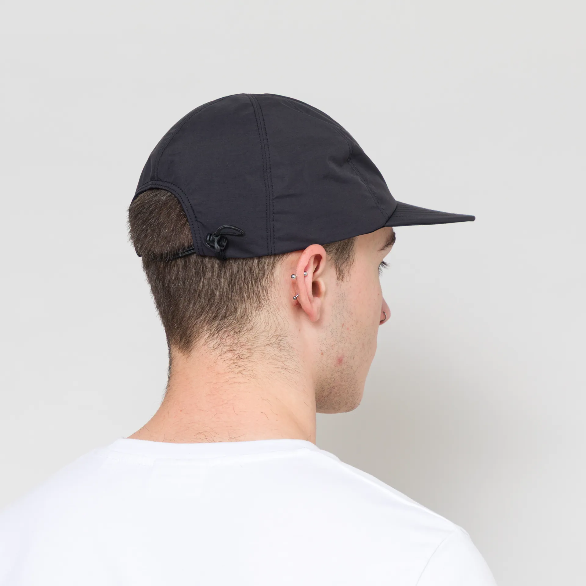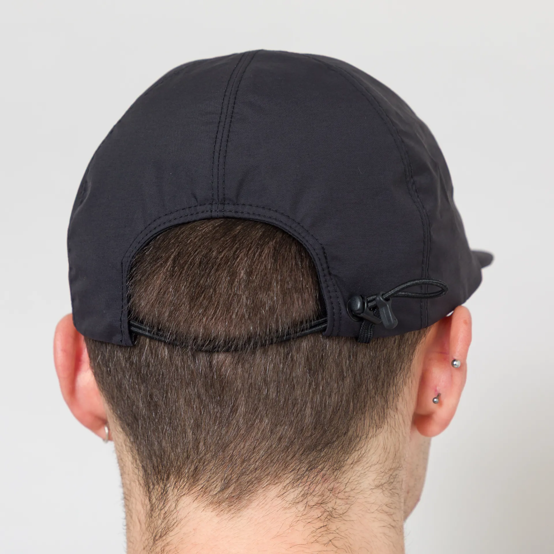A six-panel technical cap from Goldwin, constructed with PERTEX UNLIMITED, a lightweight fabric with windproof and water-resistant properties. It has a flat, flexible brim, a cord adjuster to the rear and a tonal embroidered logo to the centre front.
