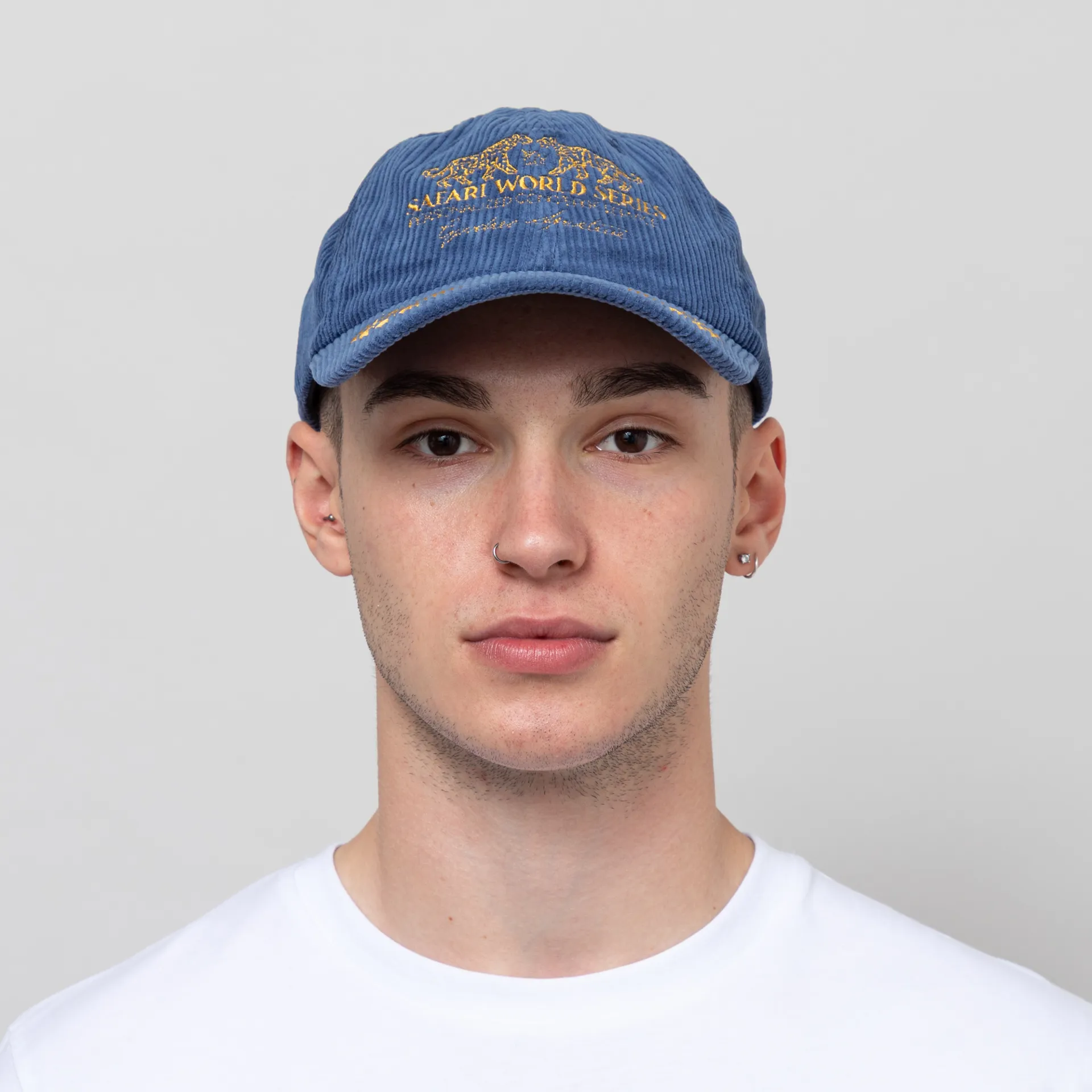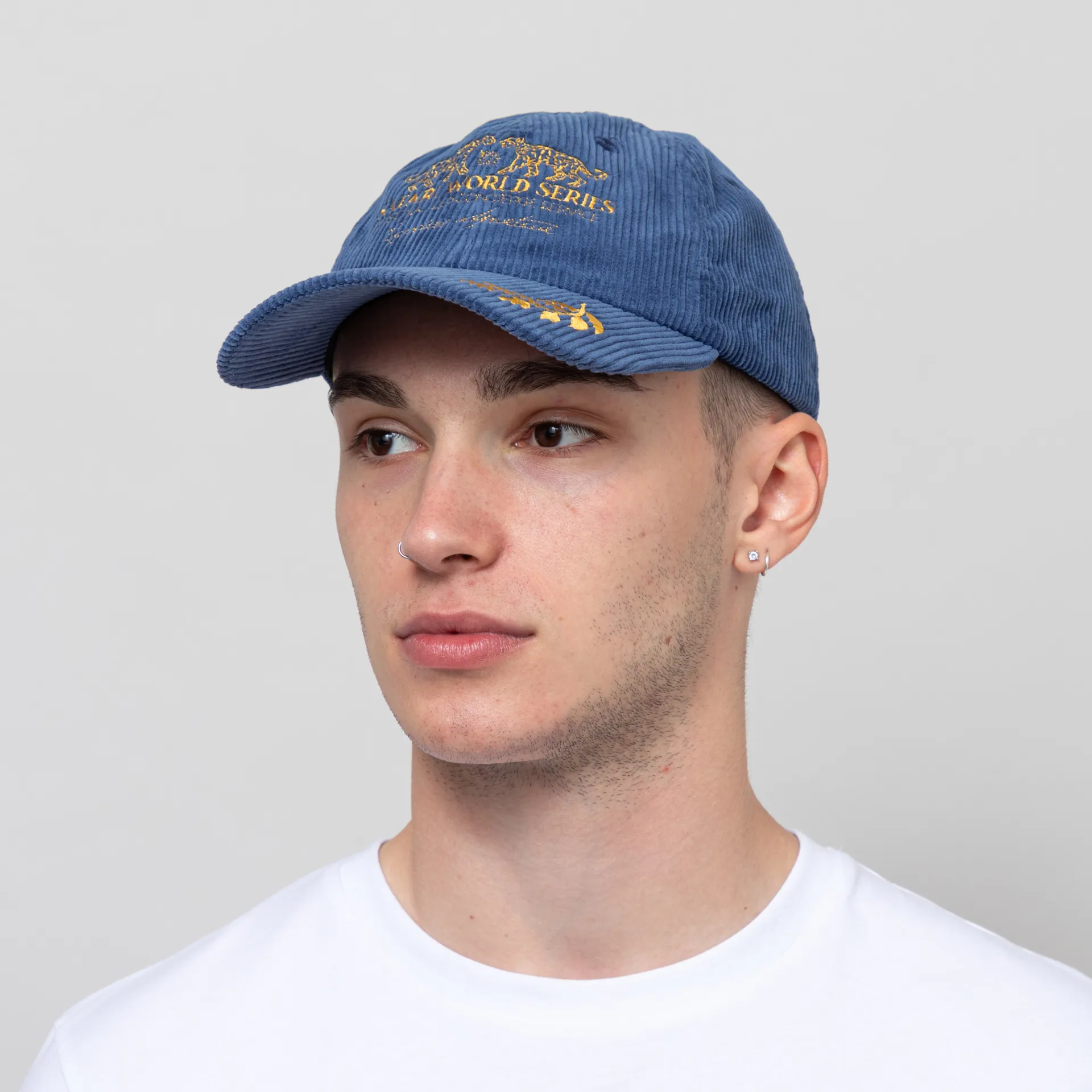 A six-panel cap from Goodies Sportive, constructed from durable cotton corduroy, with a curved brim, snap adjuster and embroidered graphics throughout.