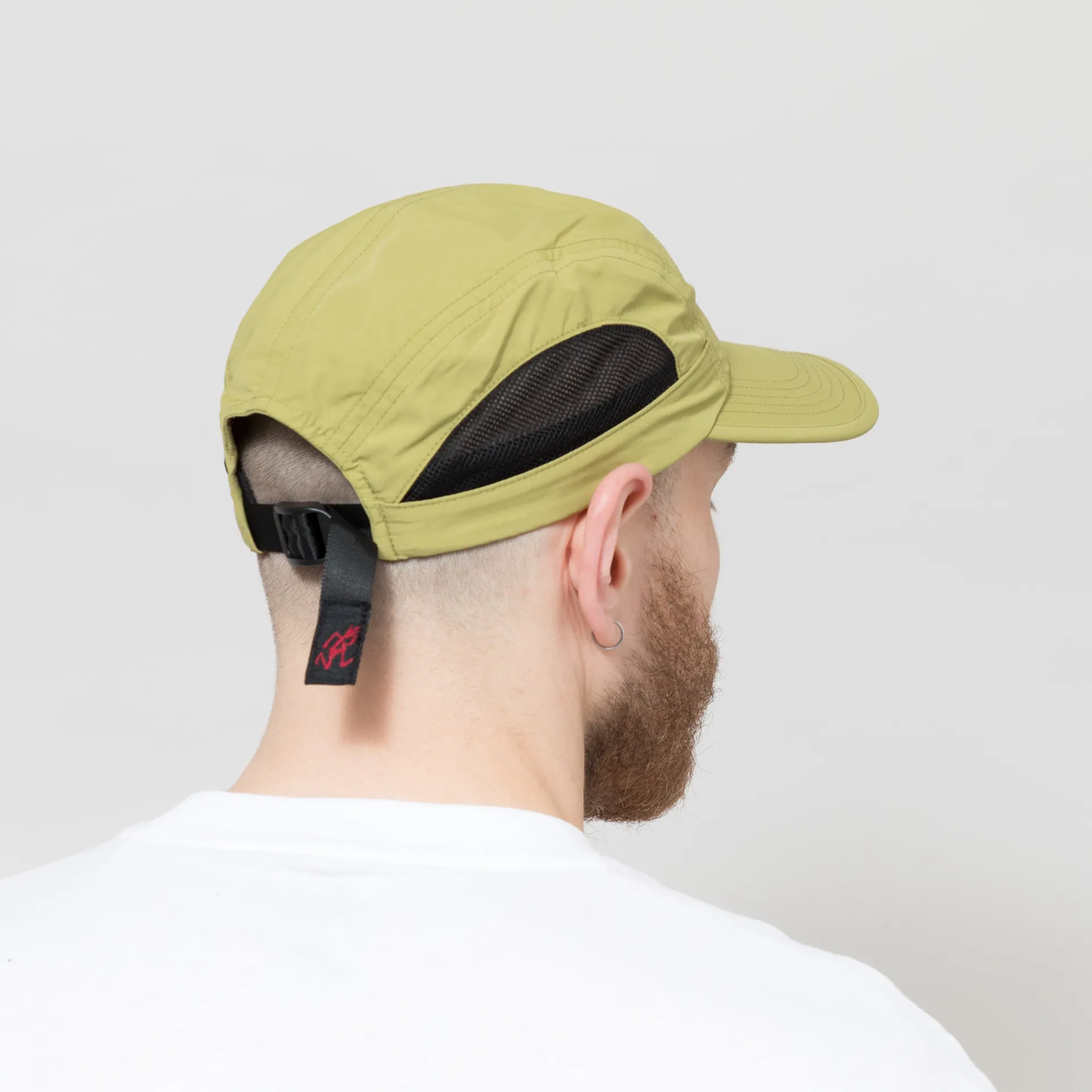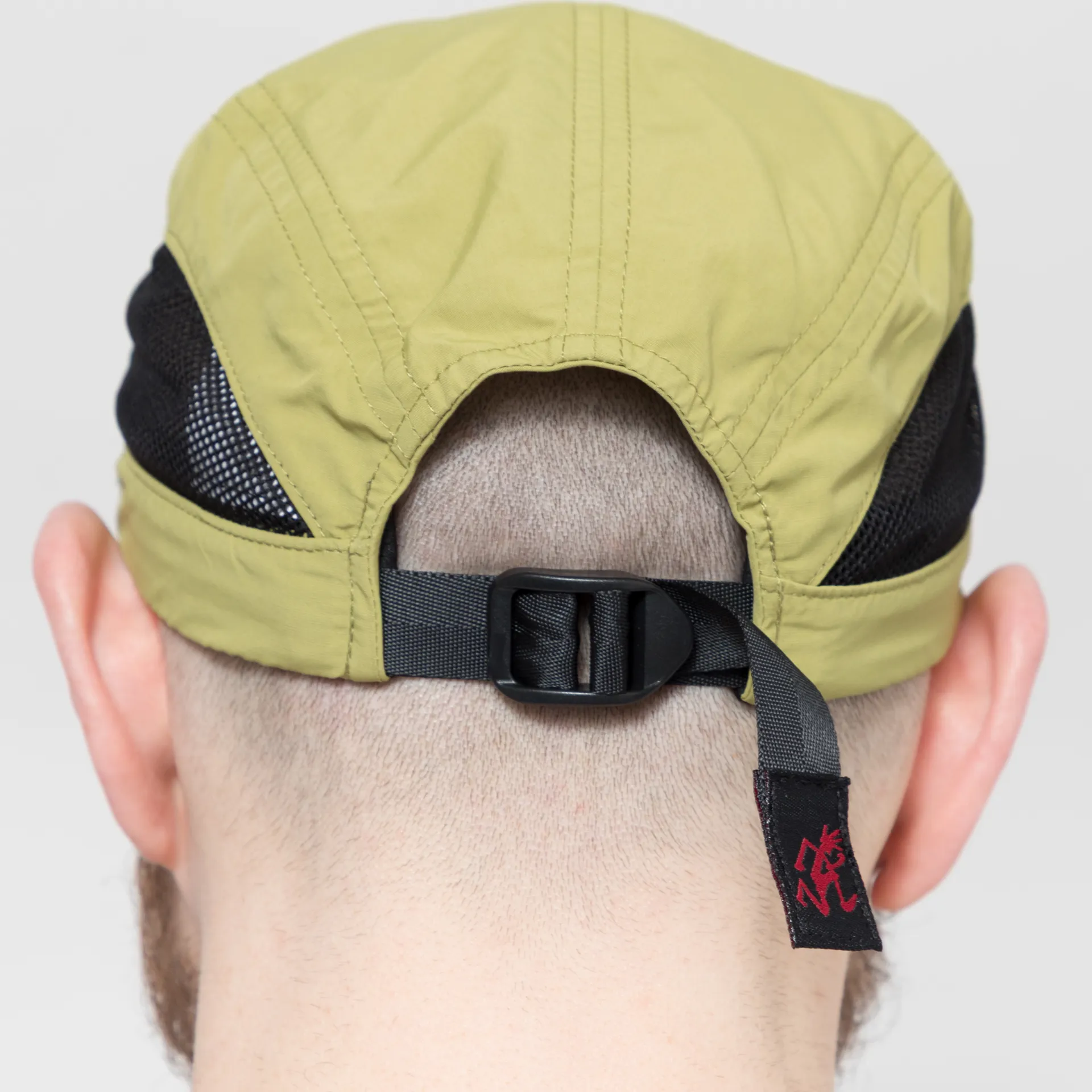 A lightweight six-panel from Gramicci, constructed from a water-resistant nylon/cotton blend, with mesh panels at either side for ventilation. Featuring a curved peak, an adjustable webbed strap to the back and a woven Gramicci flag label to the front.