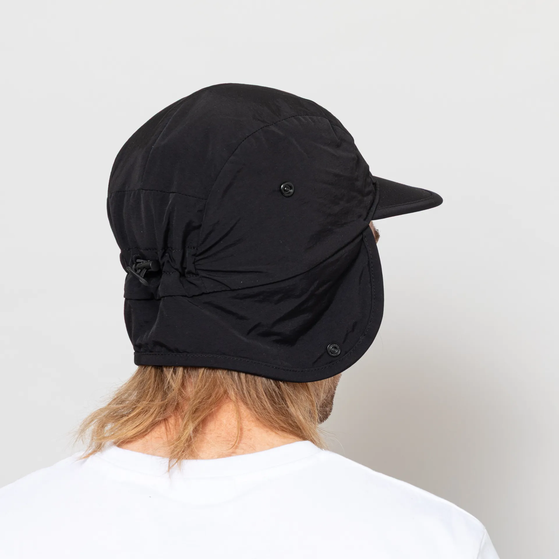 The Ramble Cap is constructed with a nylon outer shell, with an internal grid fleece lining for warmth. It has a flexible, flat brim, an adjustable toggle at the back and pop down ear flaps. Finished with a tonal embroidered logo to the front.