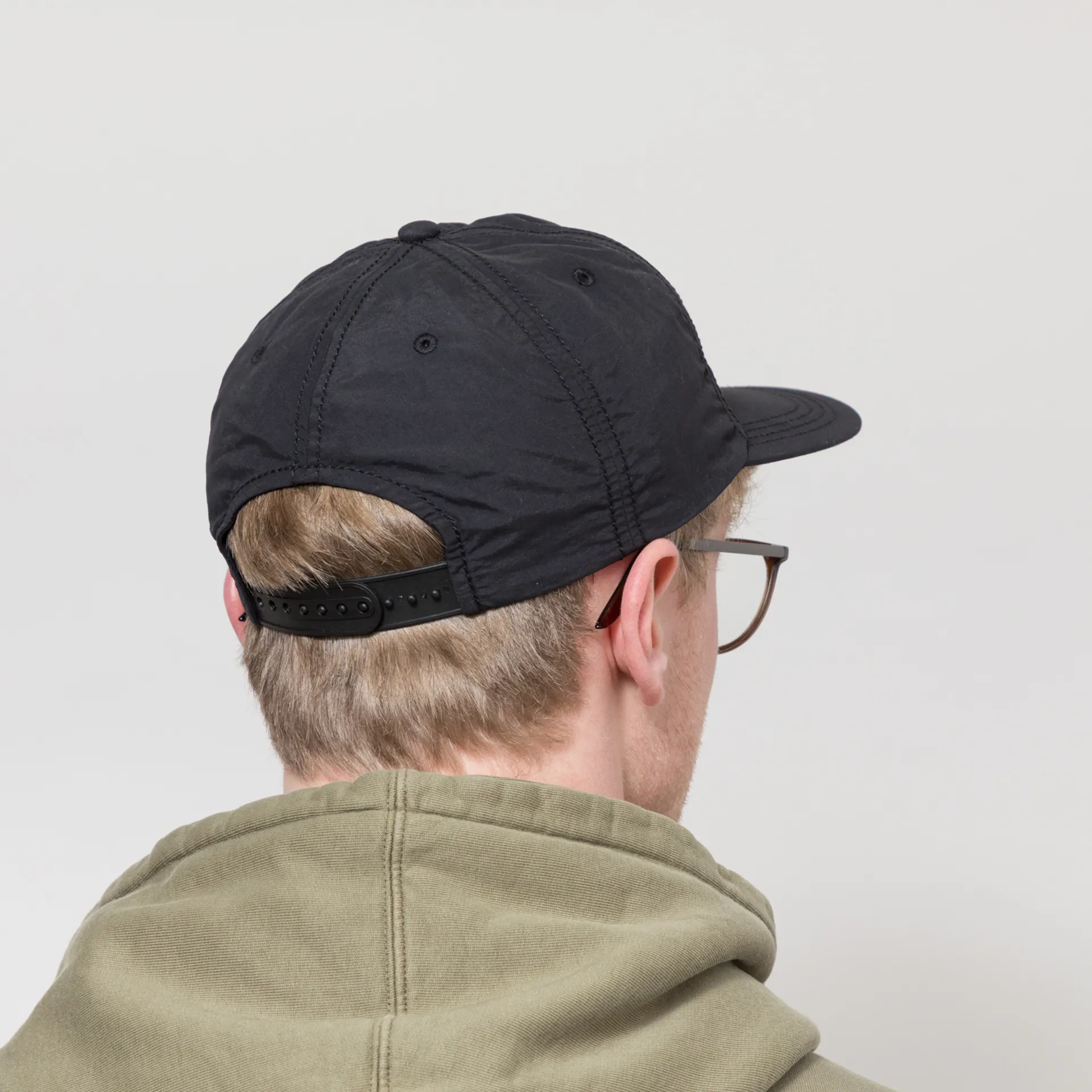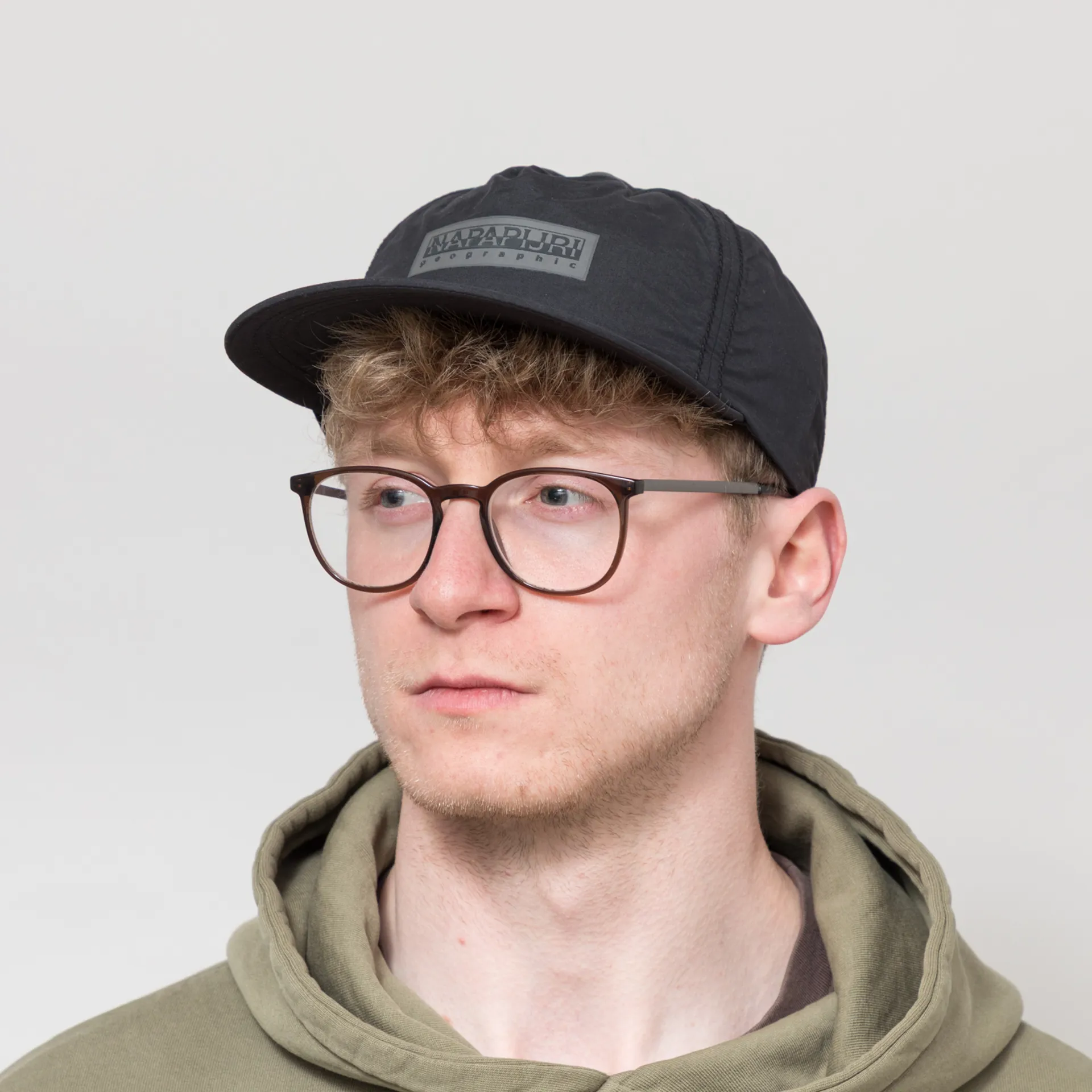 A six-panel from Napapijri, constructed from durable polyamide, with a flat brim and embroidered eyelets. Finished with a plastic adjuster to the rear and a tonal rubber logo to the front.