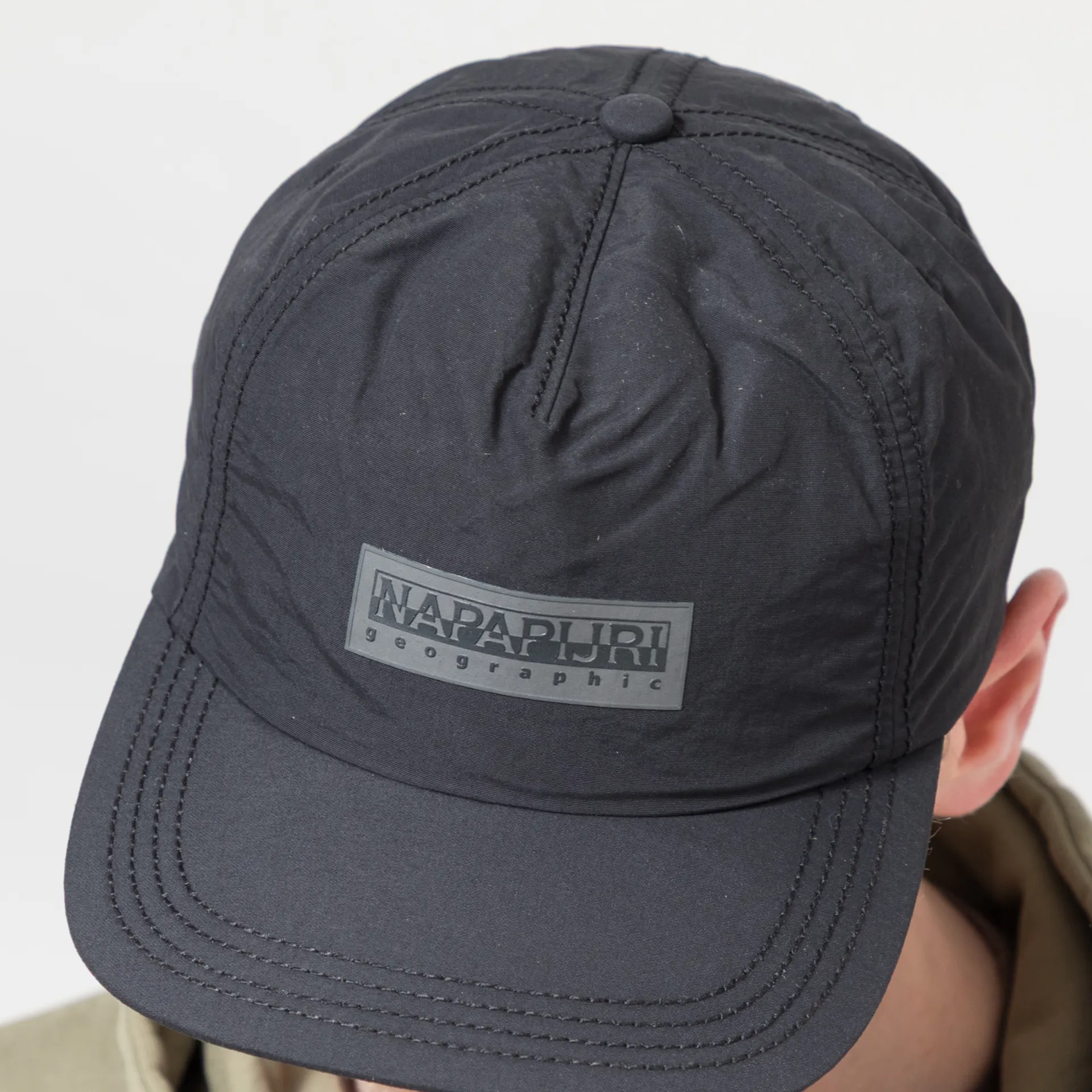 A six-panel from Napapijri, constructed from durable polyamide, with a flat brim and embroidered eyelets.