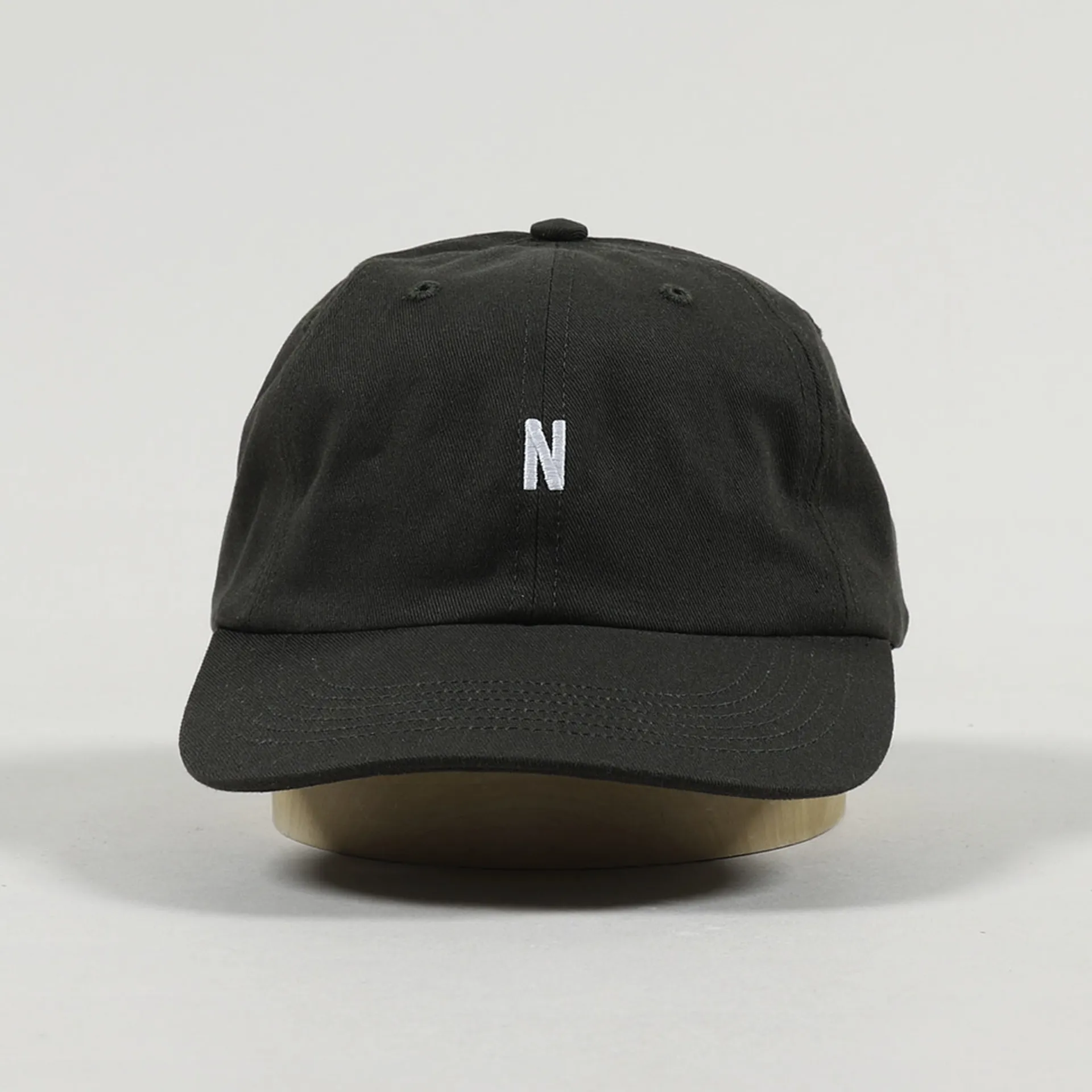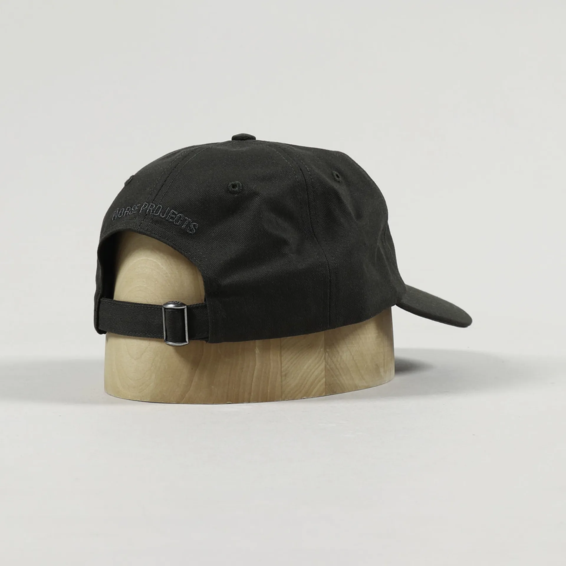 A cap from Norse Projects made in the USA from 100% cotton twill with an embroidered logo to the front and script to the back, above an adjustable strap.
