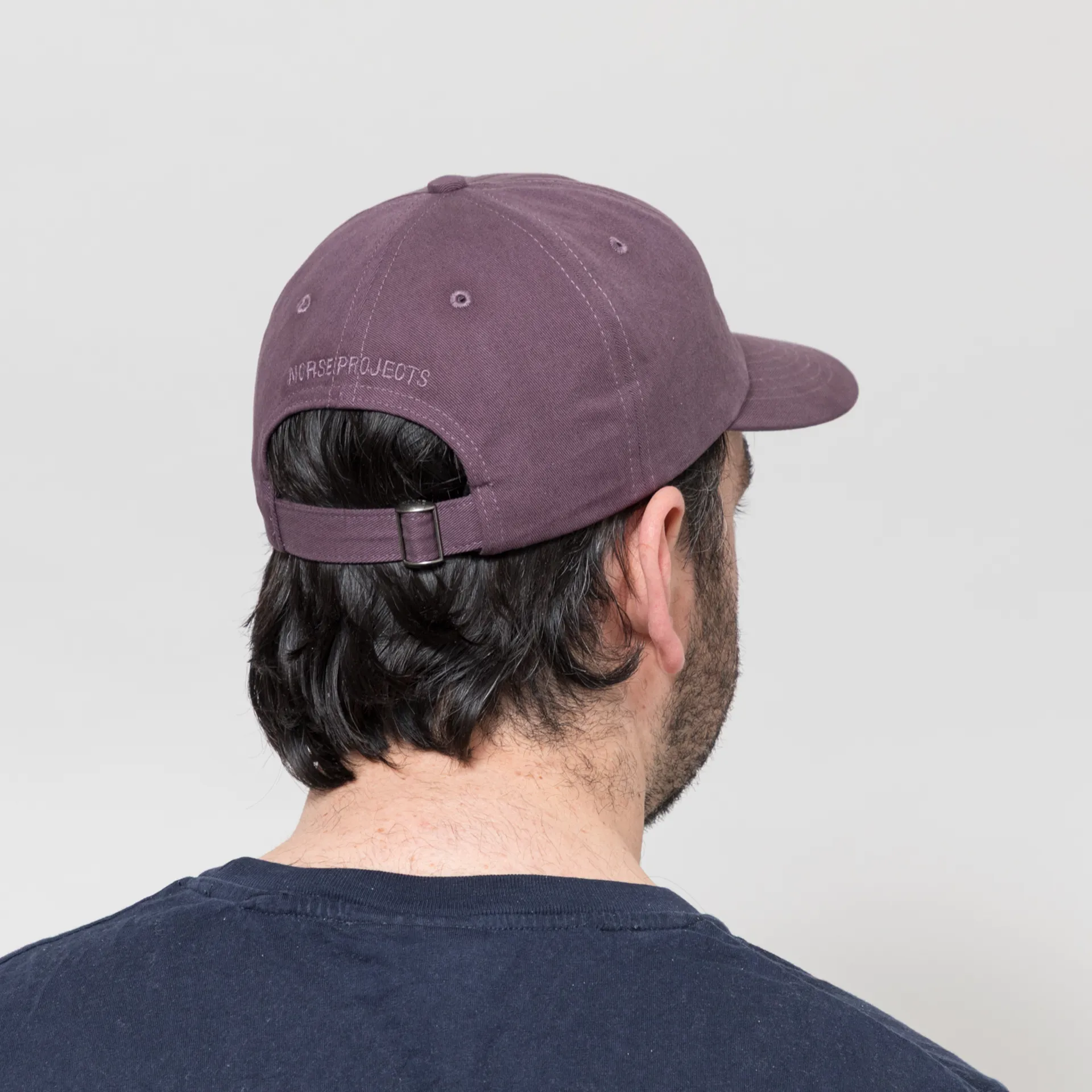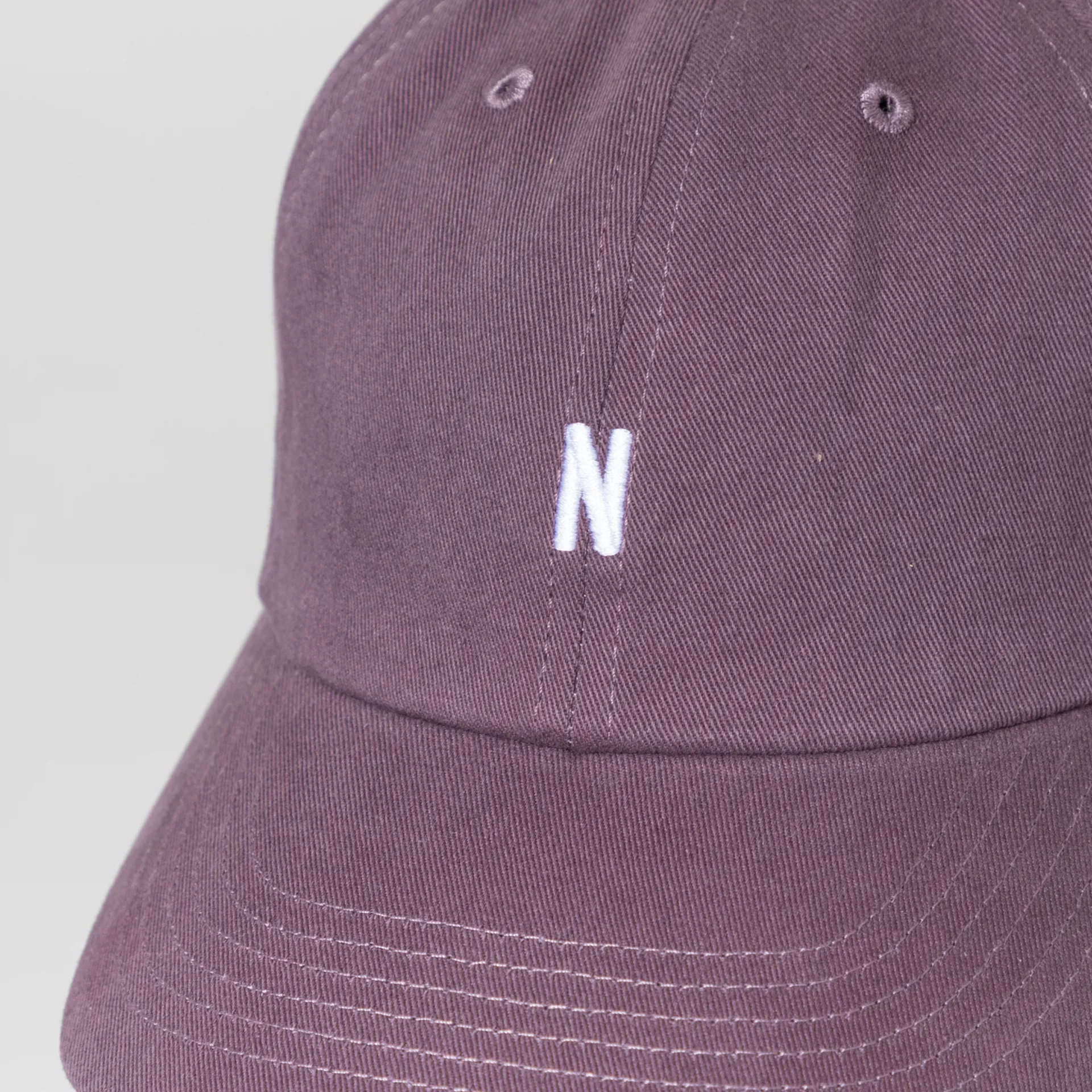A cap from Norse Projects made in the USA from 100% cotton twill with an embroidered logo to the front and script to the back, above an adjustable strap.