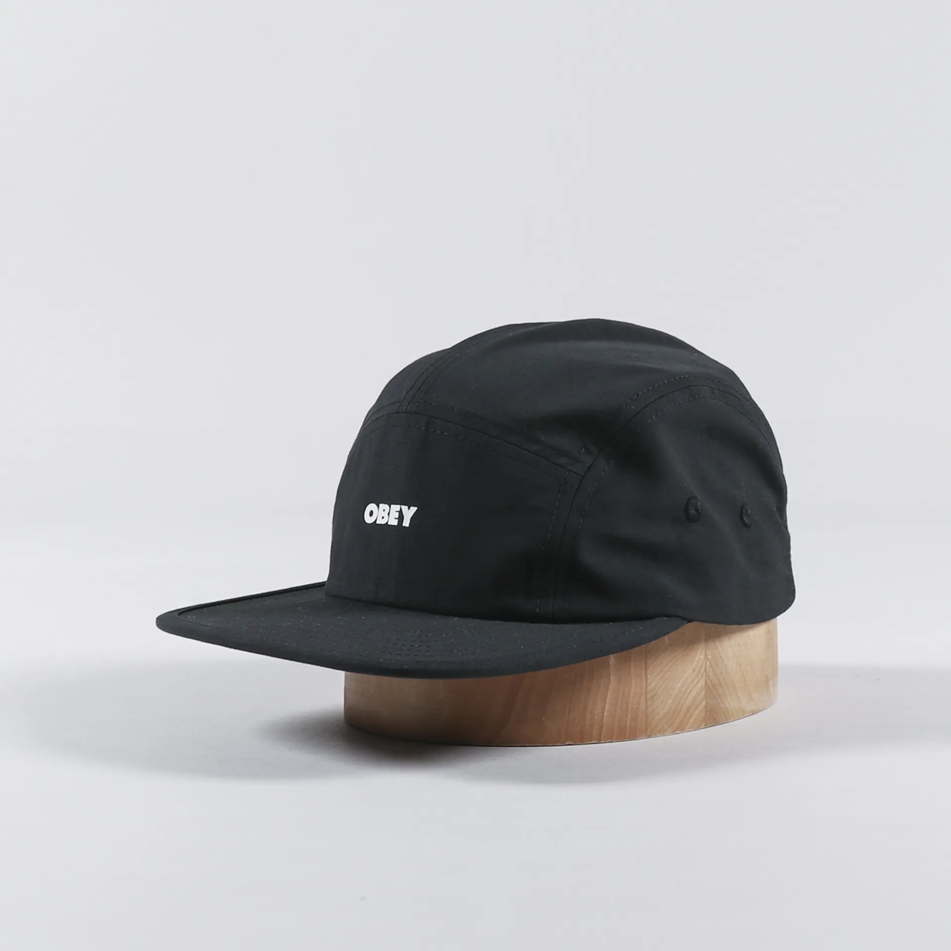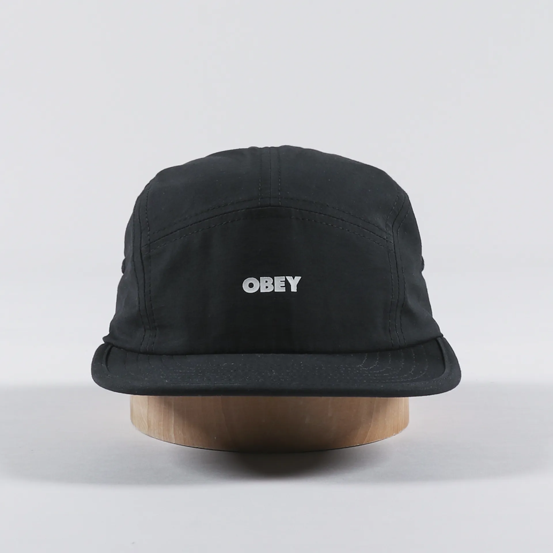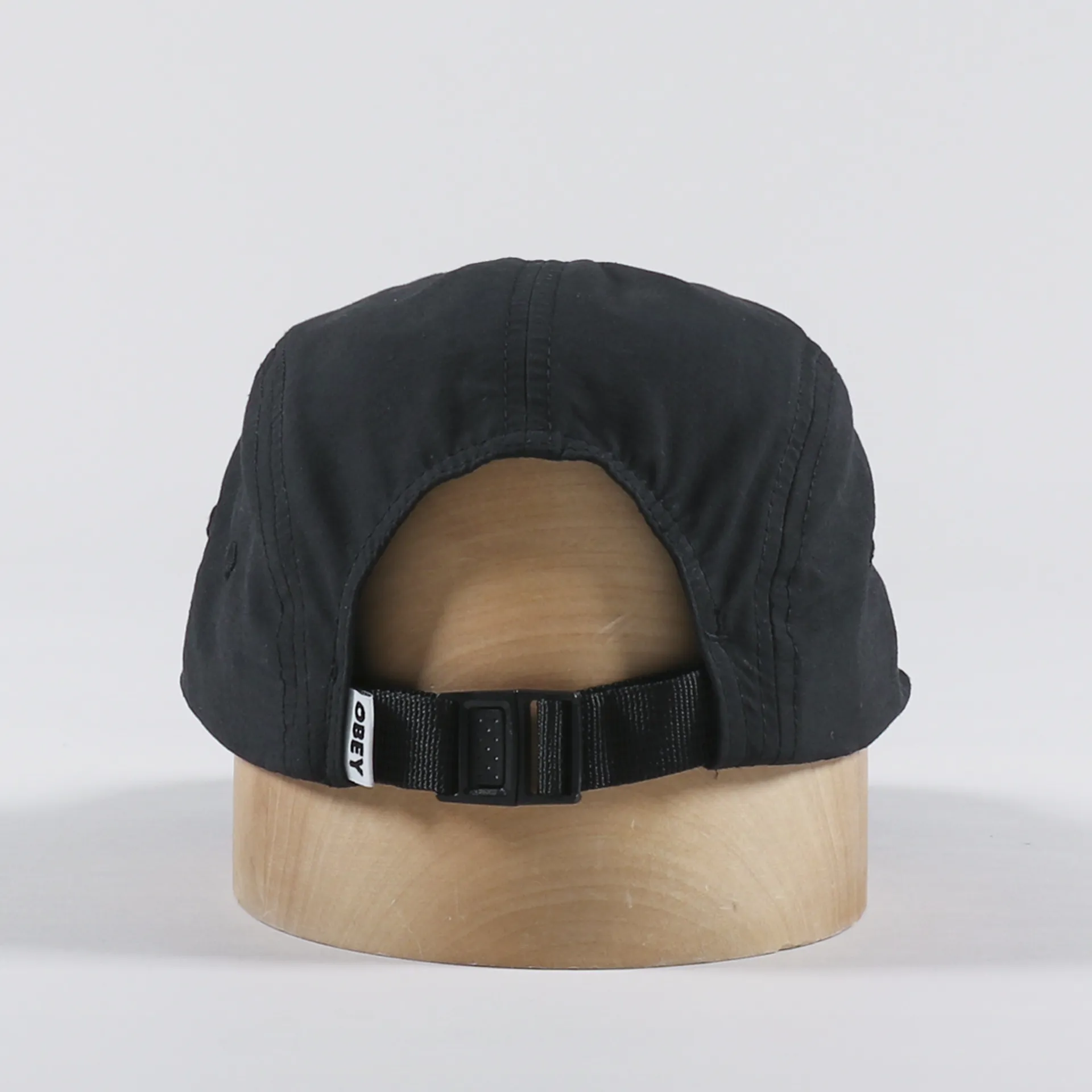 A five panel cap from Obey made from a nylon plain weave with an adjustable strap and a graphic logo print to the front.
