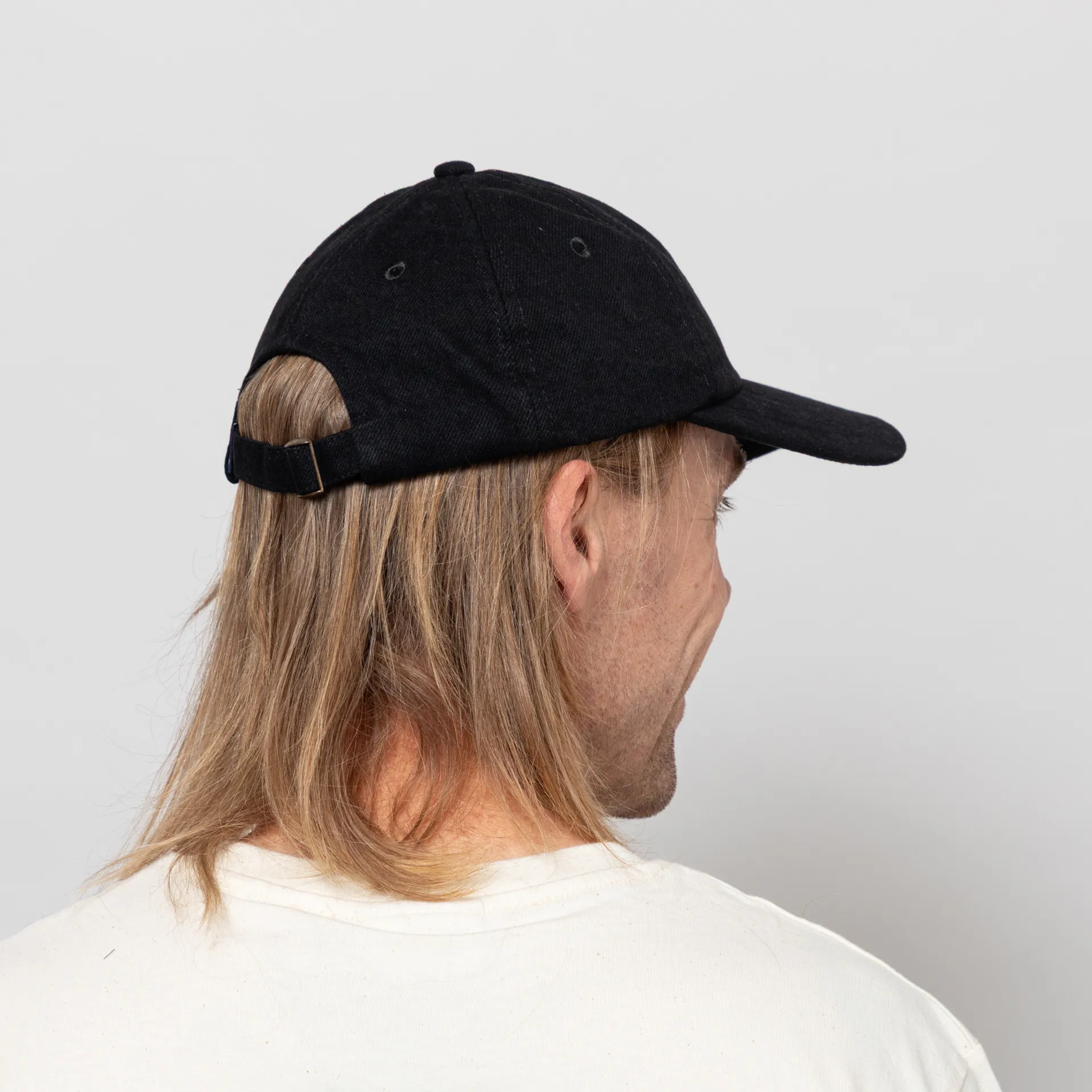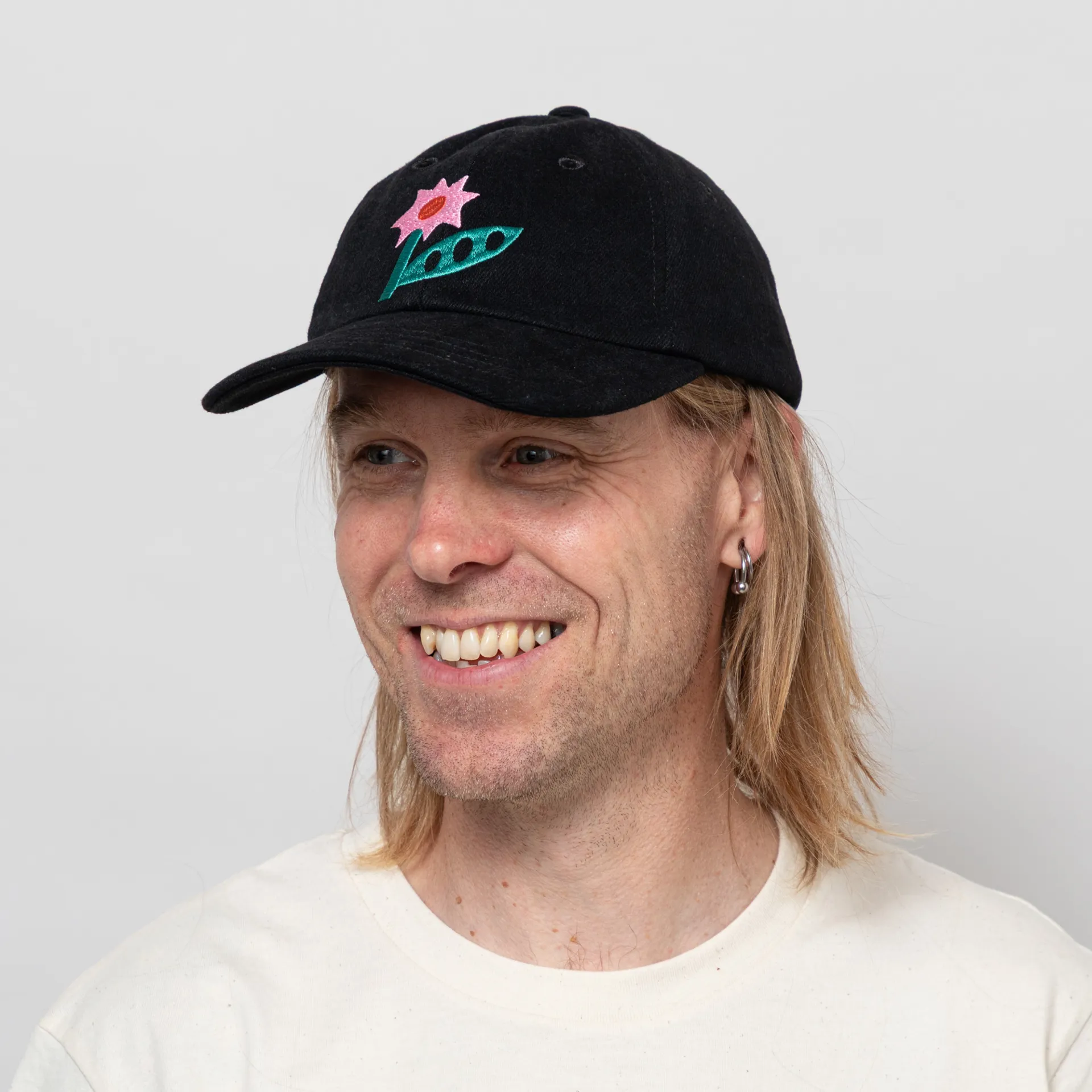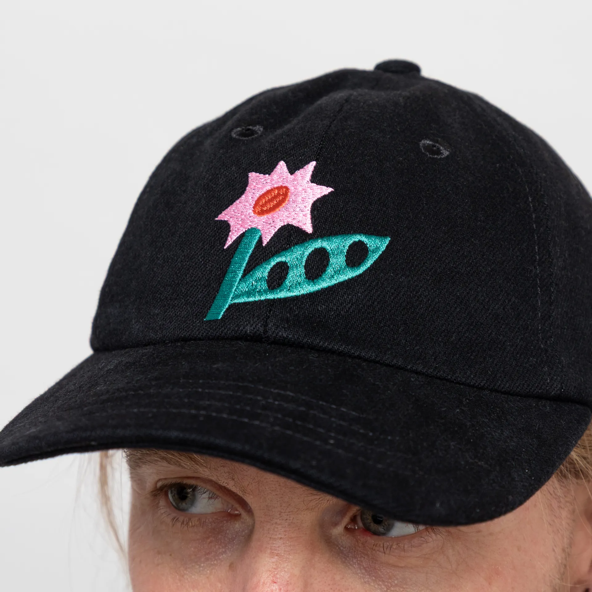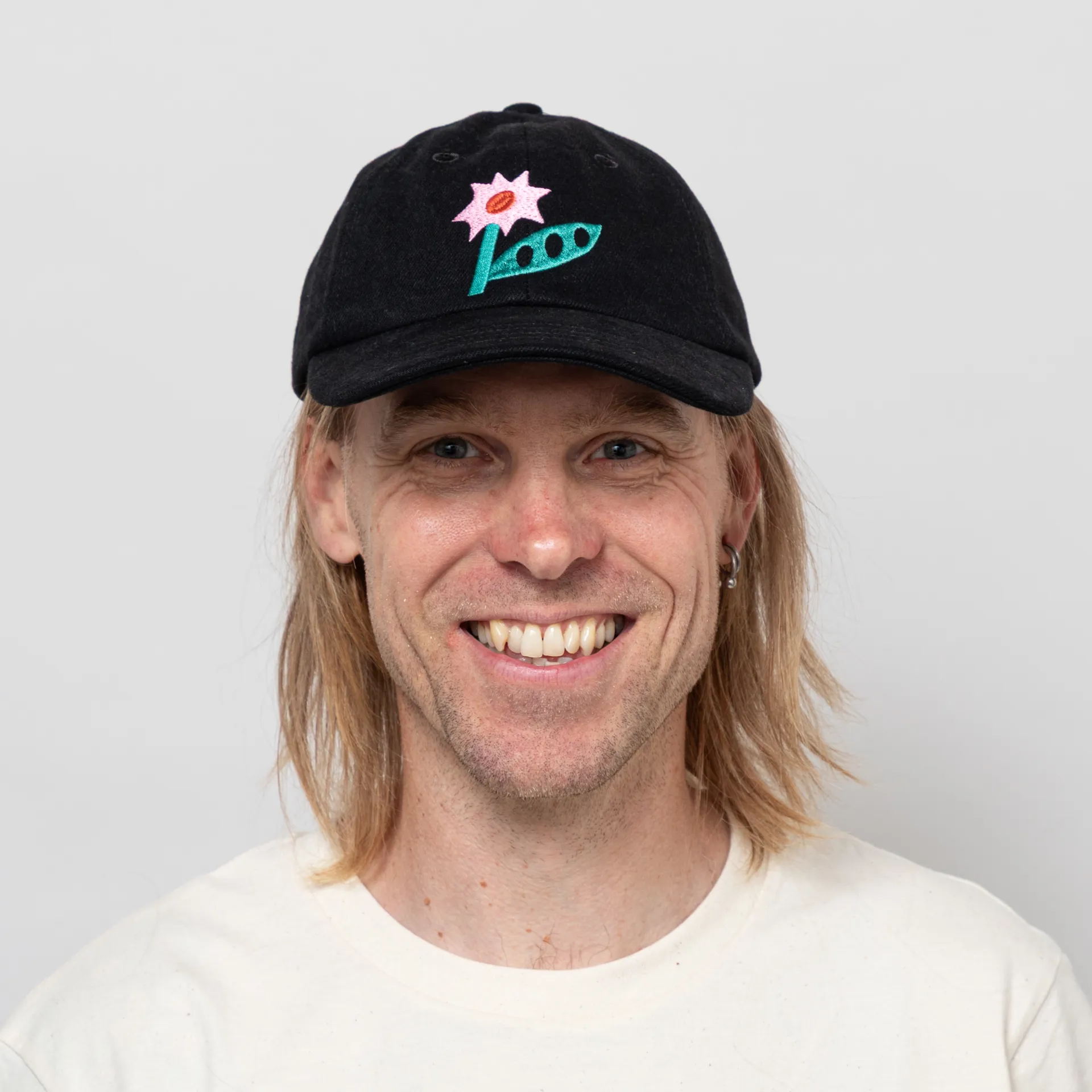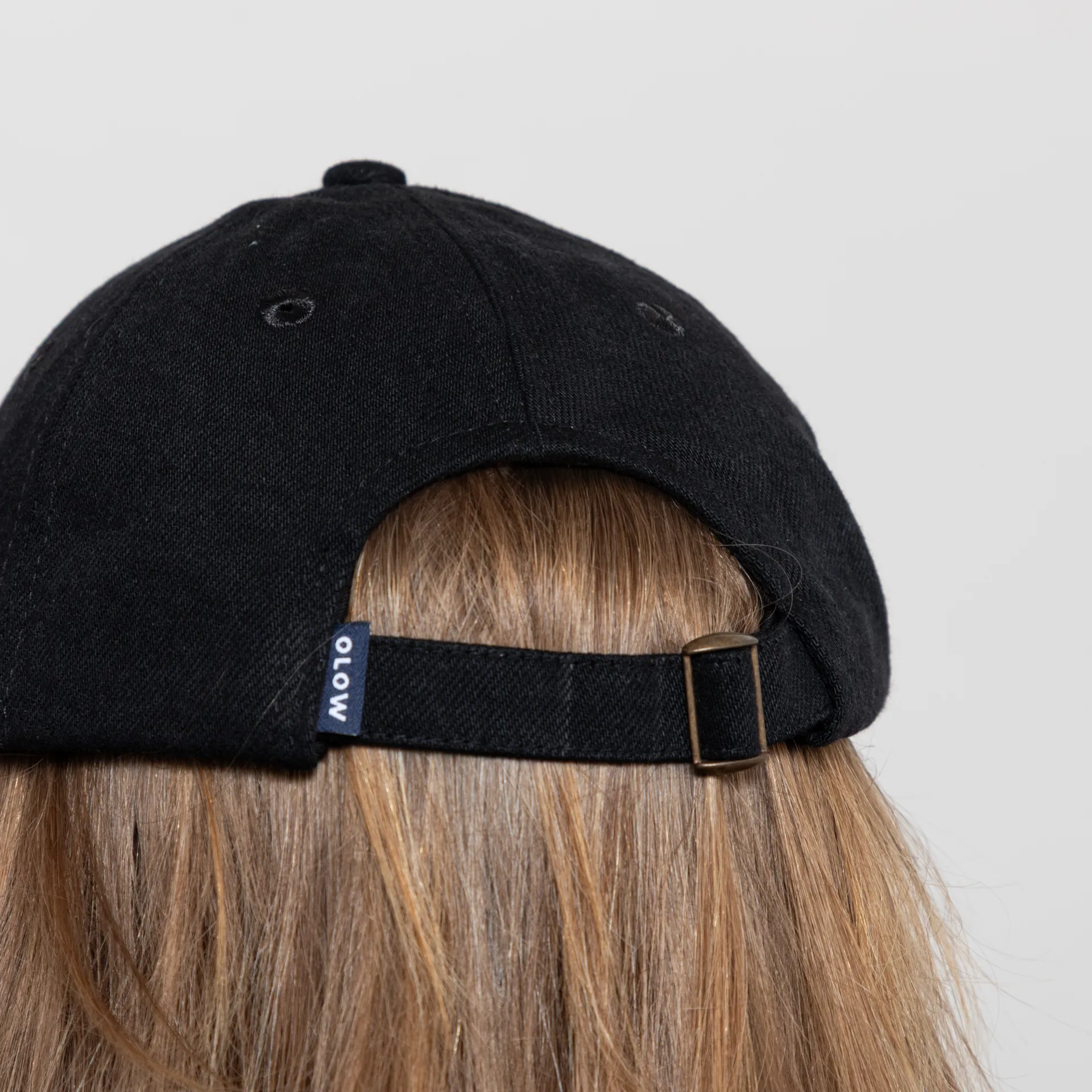 A six-panel from Olow, constructed from durable organic cotton, featuring a curved brim, a metal buckle adjuster and embroidered artwork at the front.