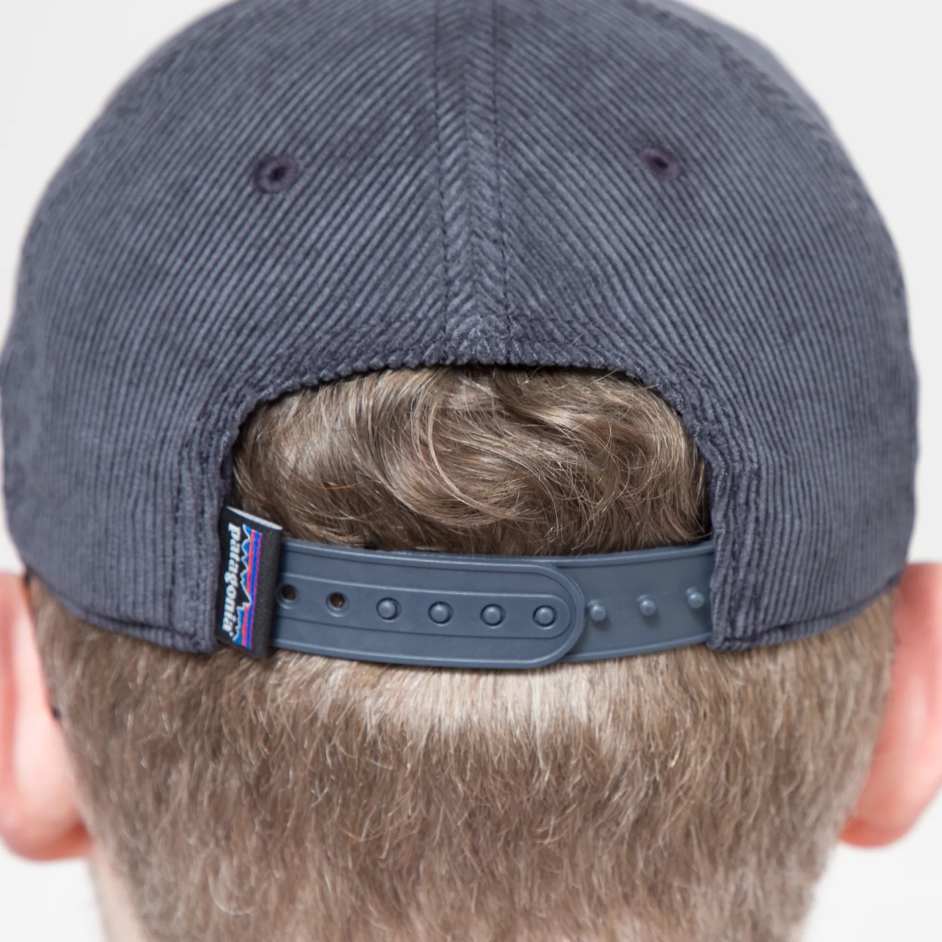 A cap from Patagonia made from a comfortable organic cotton corduroy with a flat peak made from NetPlus recycled fishing nets. It has a snapback size adjuster and branding to the front.
