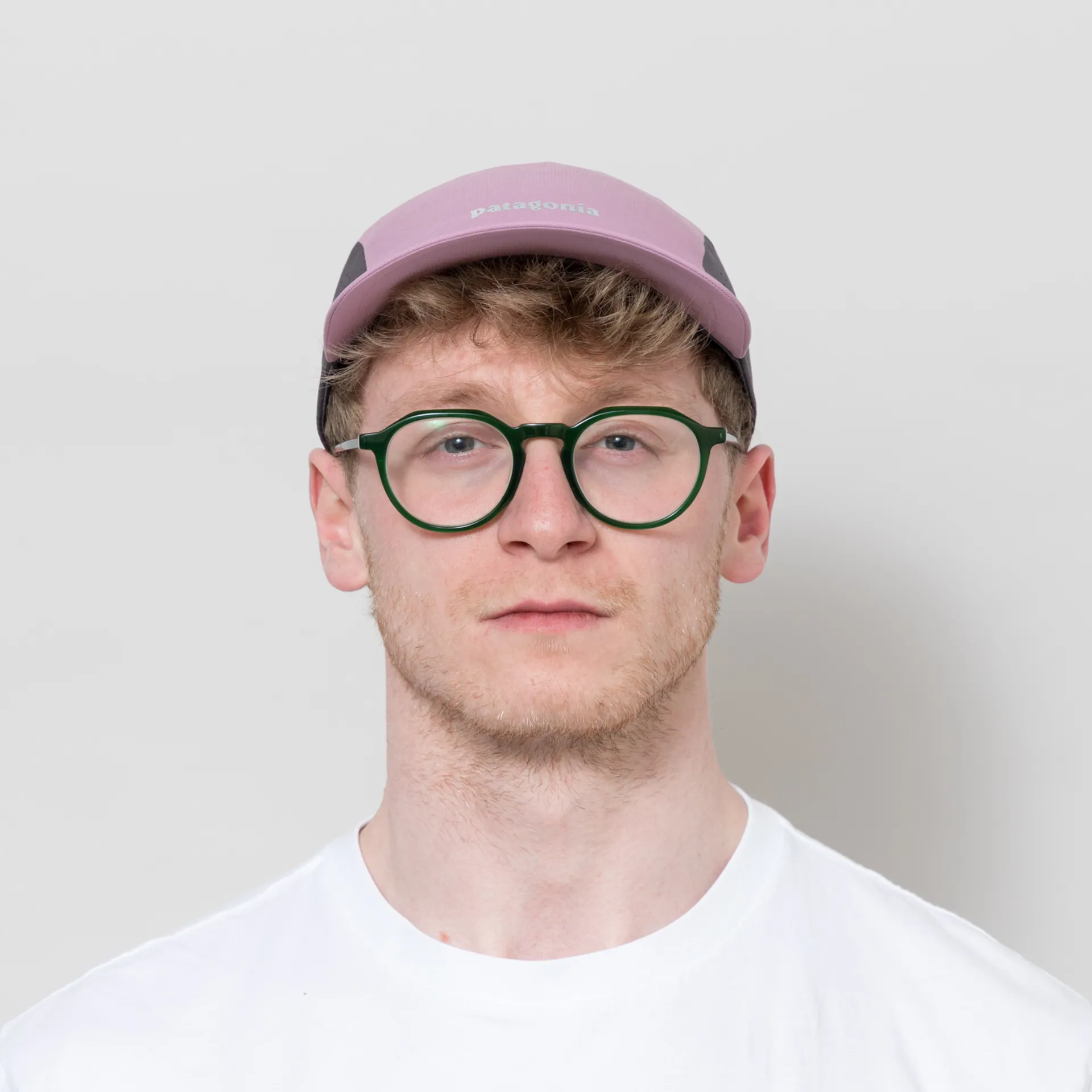 A technical cap from Patagonia, crafted from 100% recycled polyester fabric with laser-perforated holes so heat can easily escape. Featuring a packable, flexible brim, an adjustable bungee cord to the back and a quick-wicking internal sweatband. Finished with a printed Patagonia logo to the centre front.