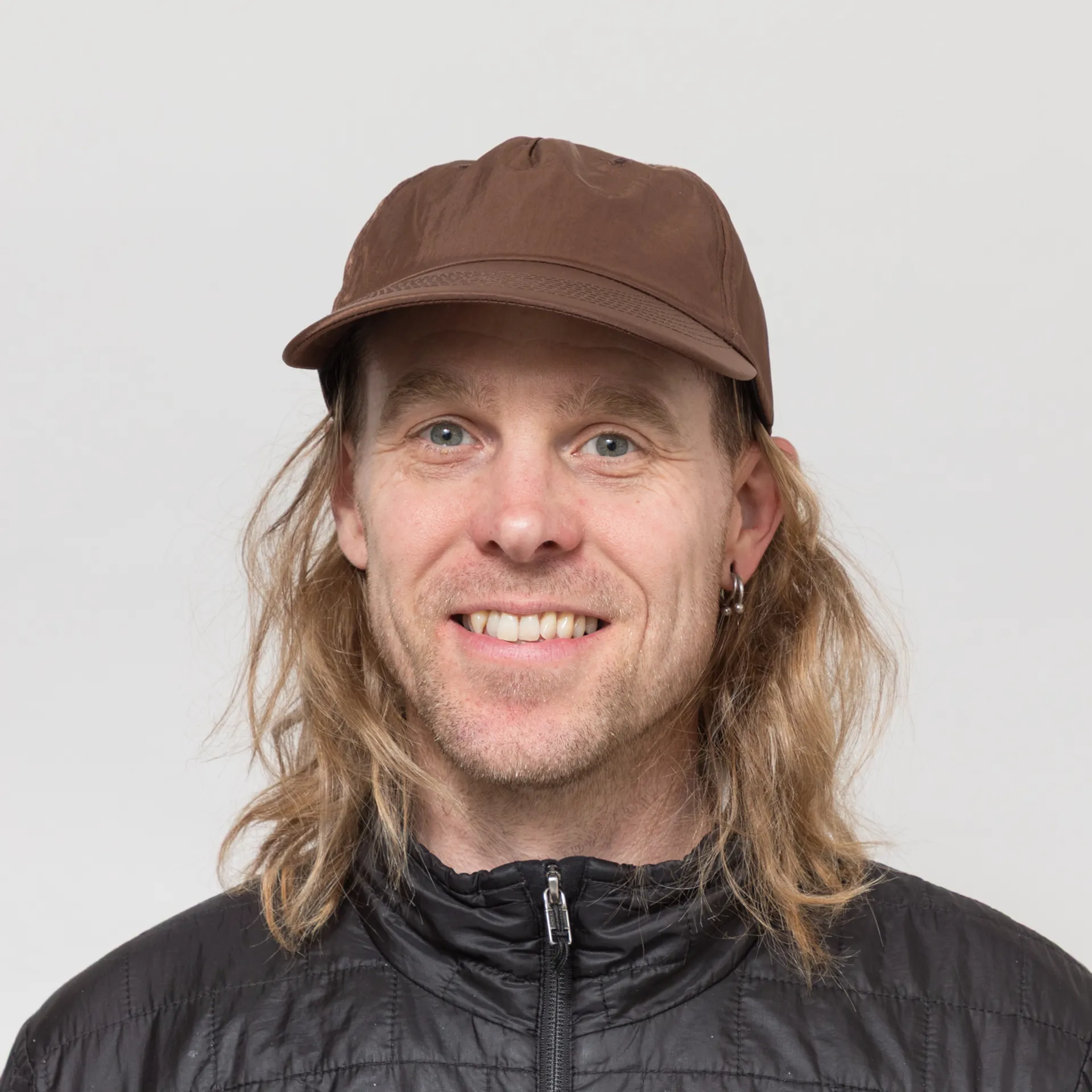 A simple six-panel from Power Goods, constructed from durable 100% nylon. It has a curved peak, embroidered eyelets and a drawcord adjuster to the back.