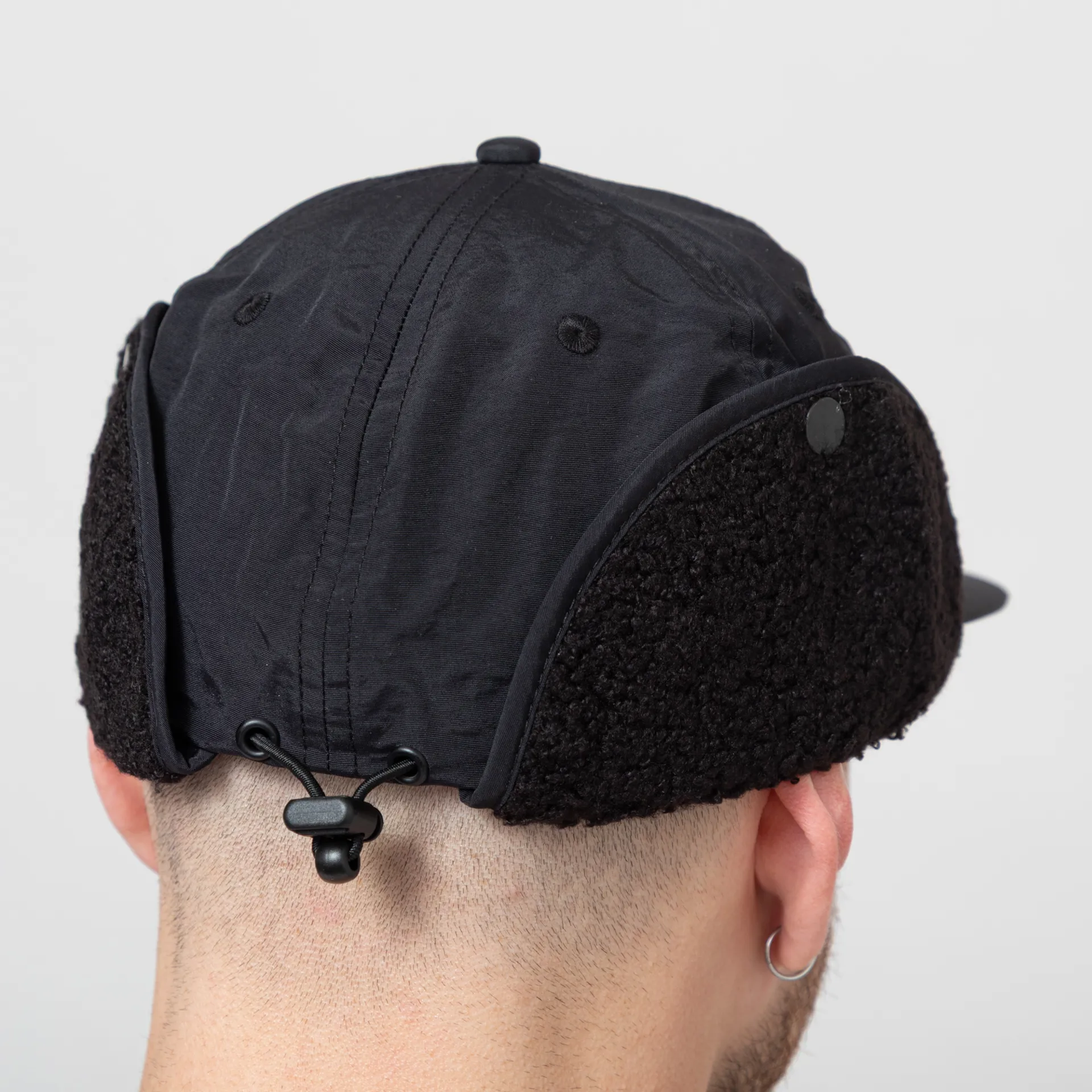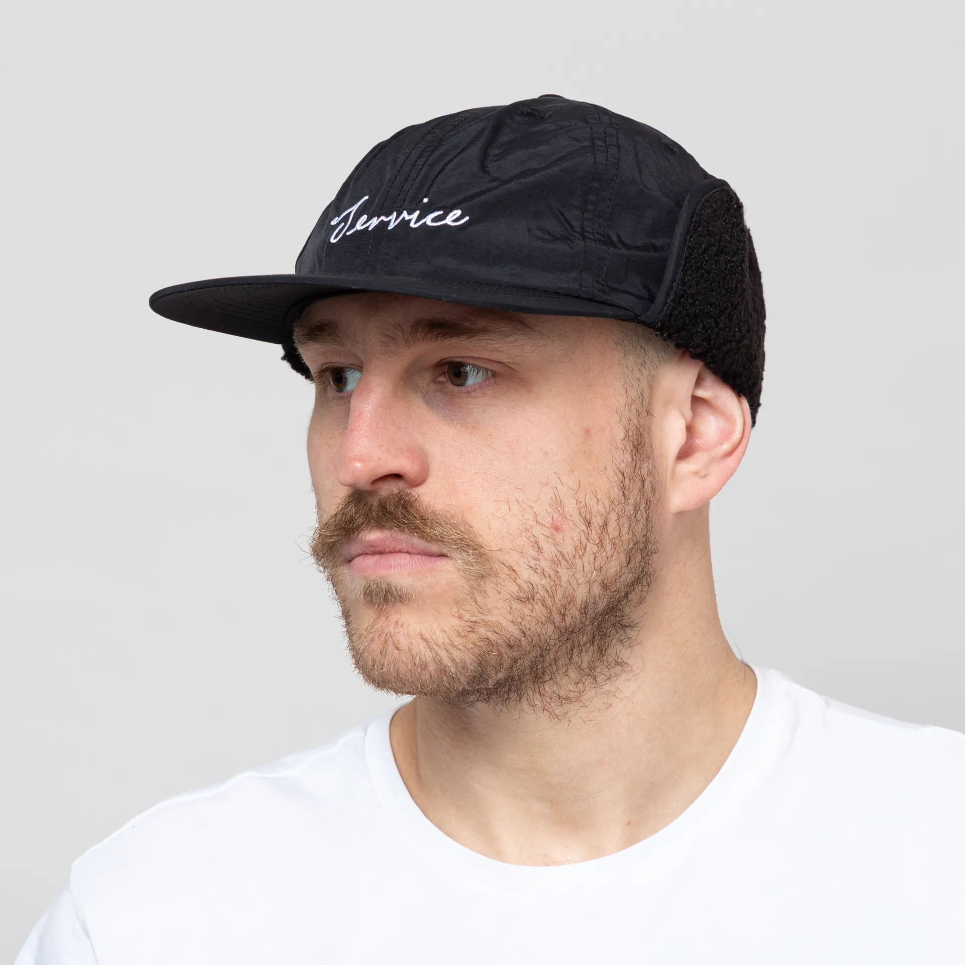 A low-profile six panel from Service Works, constructed from durable 100% nylon. Featuring a firm, flat brim, embroidered eyelets, a drawcord adjuster at the back, fleece lined earflaps and finished with an embroidered Service logo at the front.