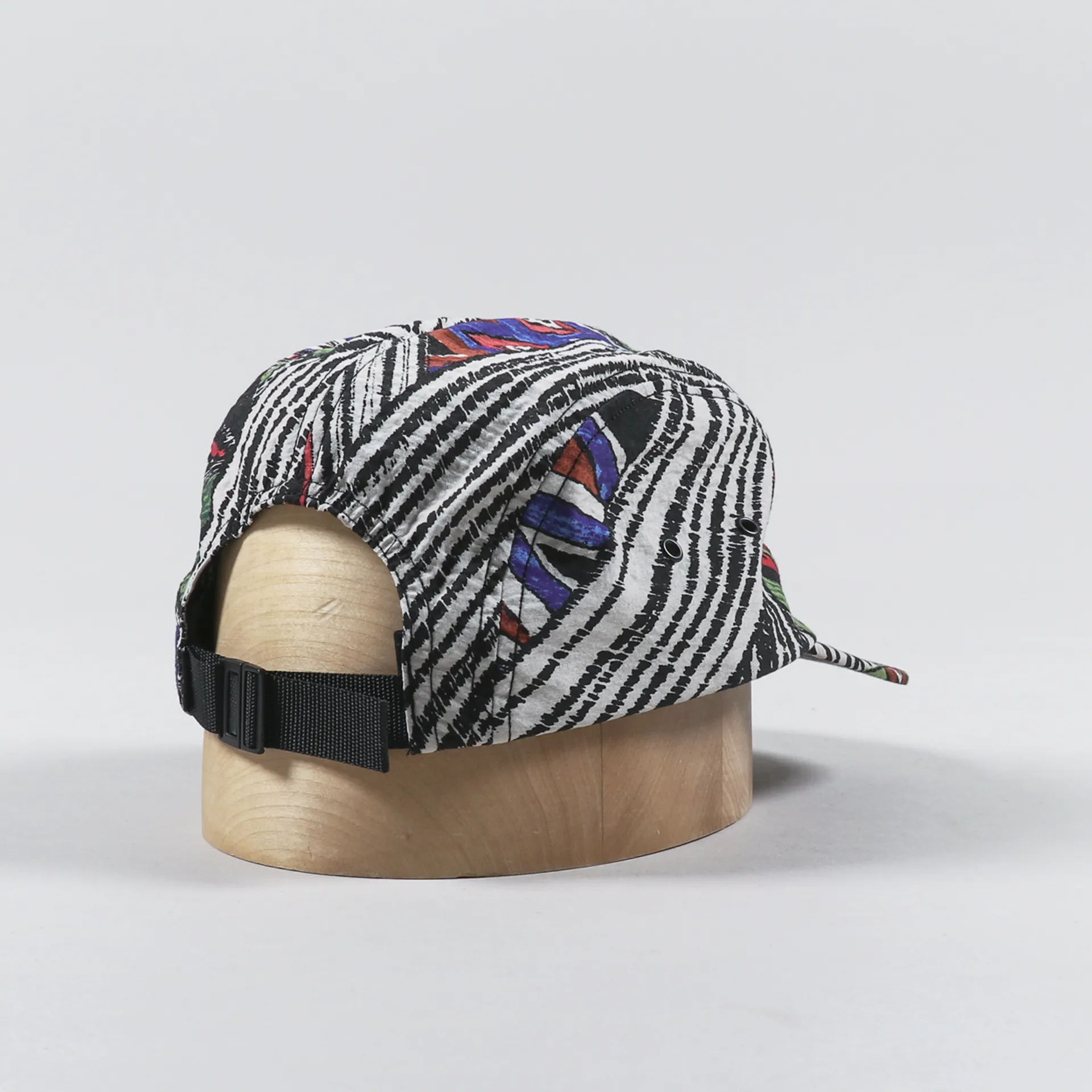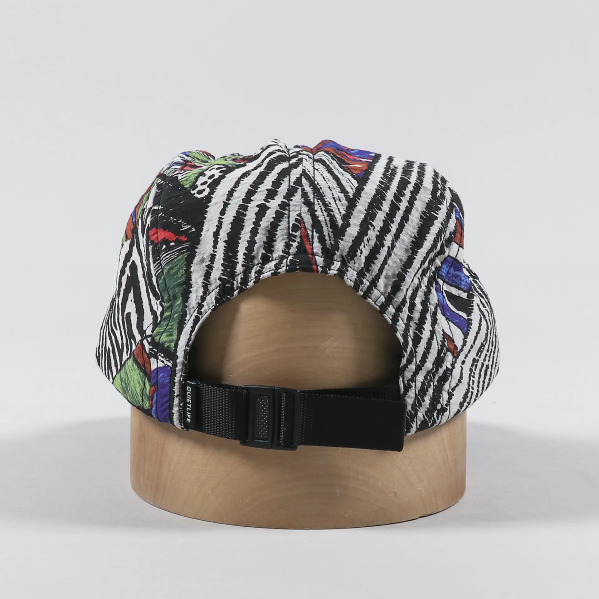 A five panel cap from The Quiet Life, made from a lightweight seersucker cotton with an adjustable strap and a woven logo patch to the front.