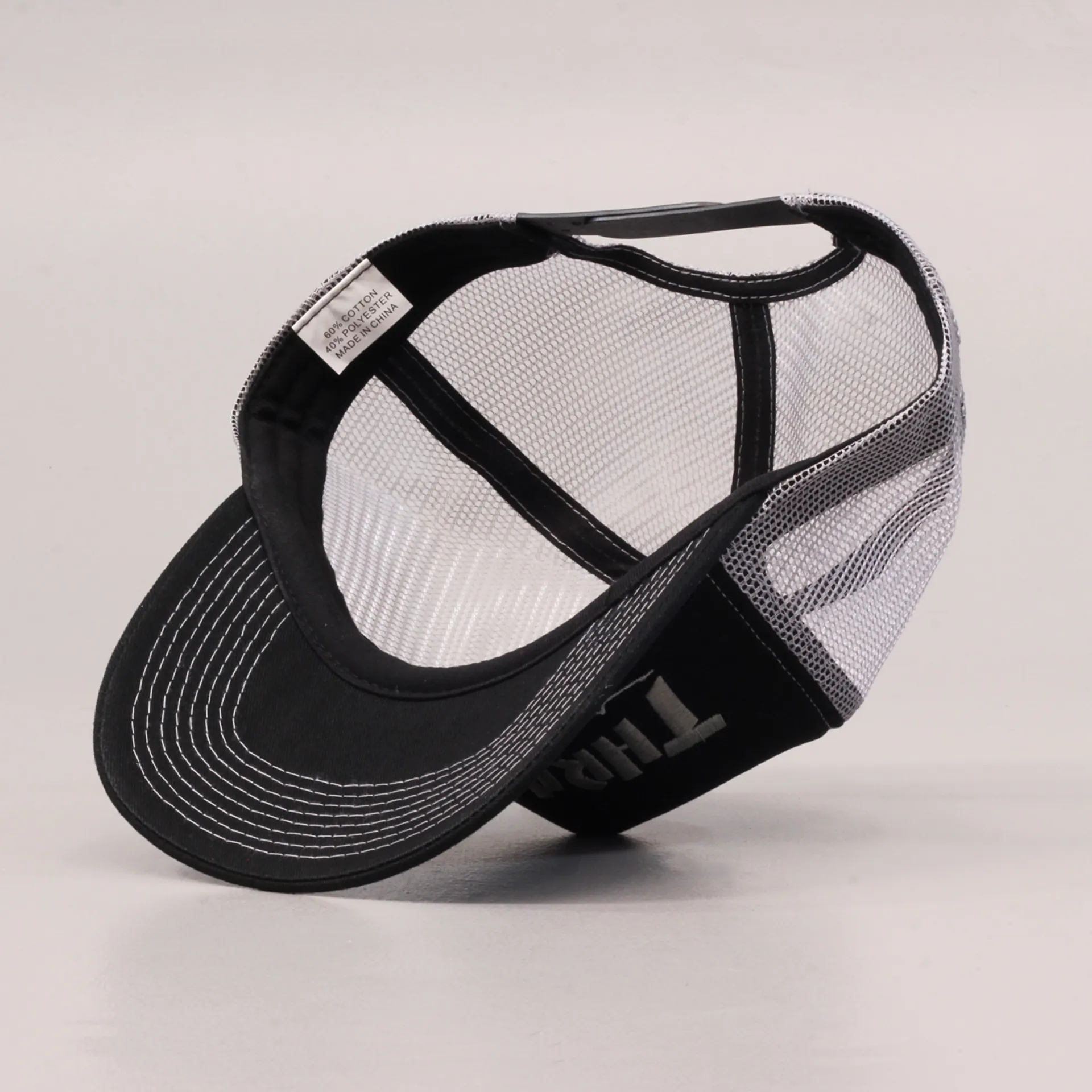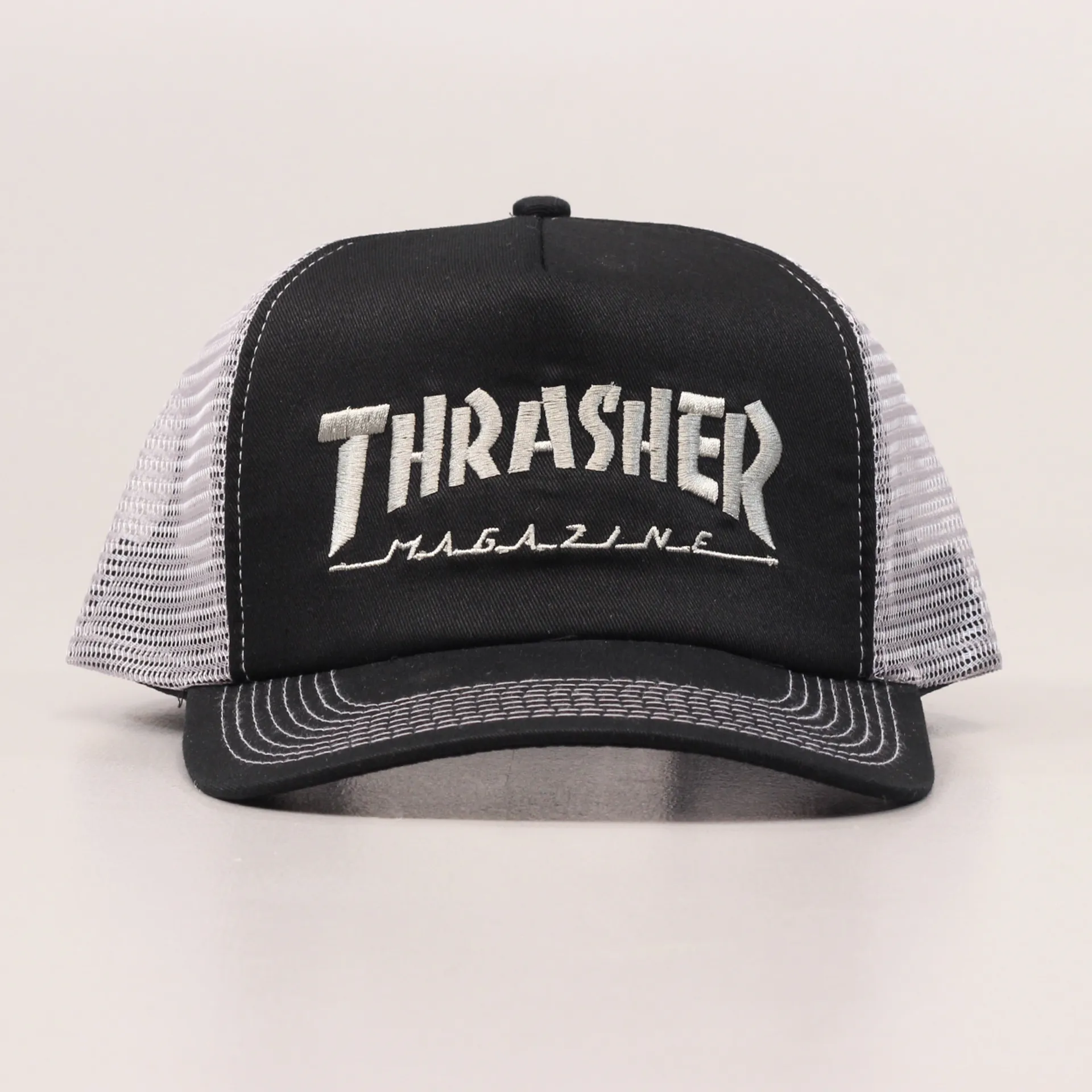 Thrasher Logo Mesh Trucker Cap Black Grey