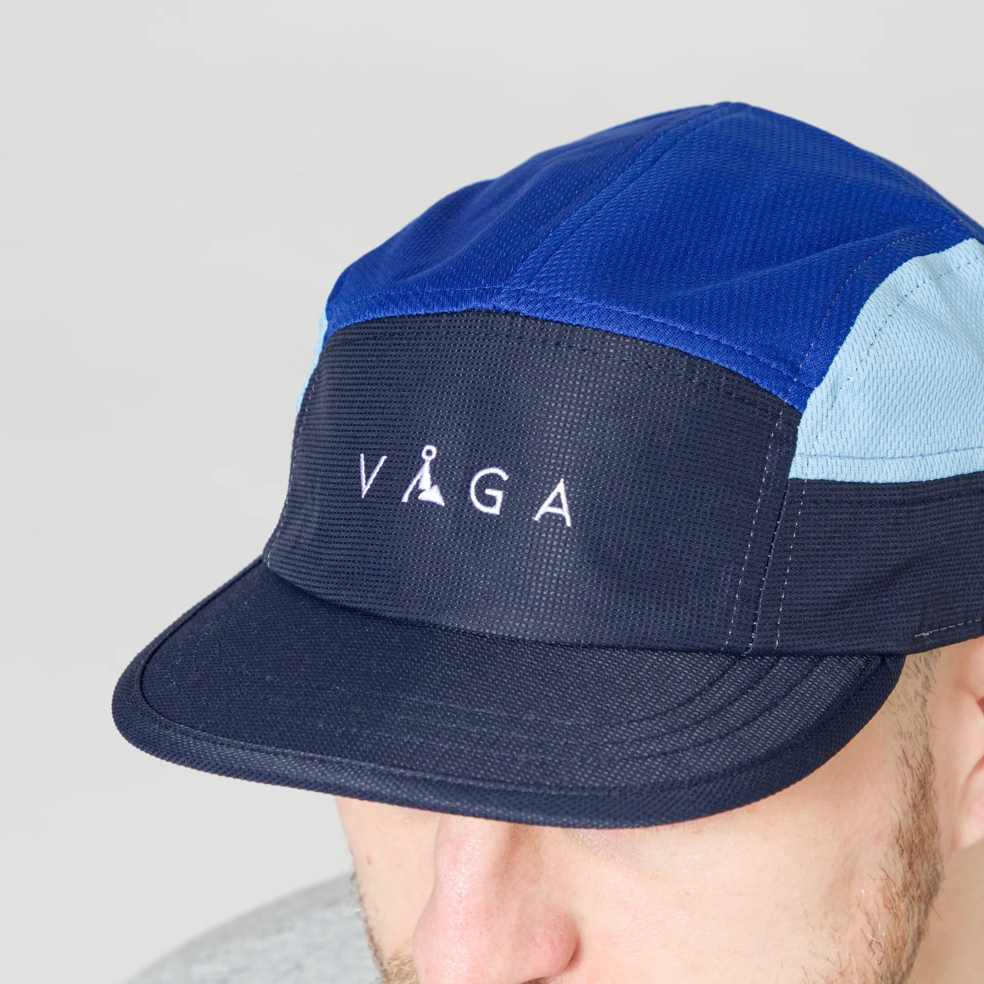 A running cap from the Lake District's Vaga, made from a lightweight and breathable 100% polyester mesh with a flexible peak and adjustable strap. Branding consists of a woven logo tag to the rear, embroidered box logo to the front and a print.