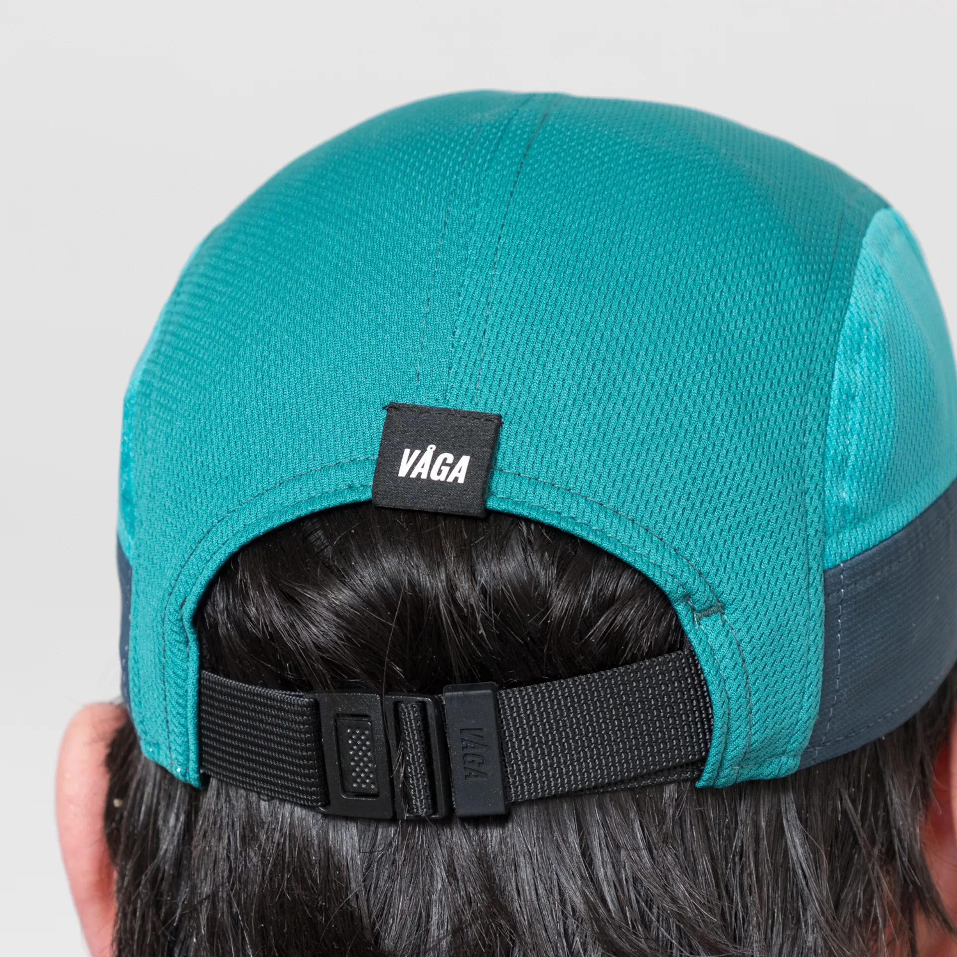 A running cap from the Lake District's Vaga, made from a lightweight and breathable 100% polyester mesh with a flexible peak and adjustable strap. Branding consists of a woven logo tag to the rear, embroidered box logo to the front and a print.
