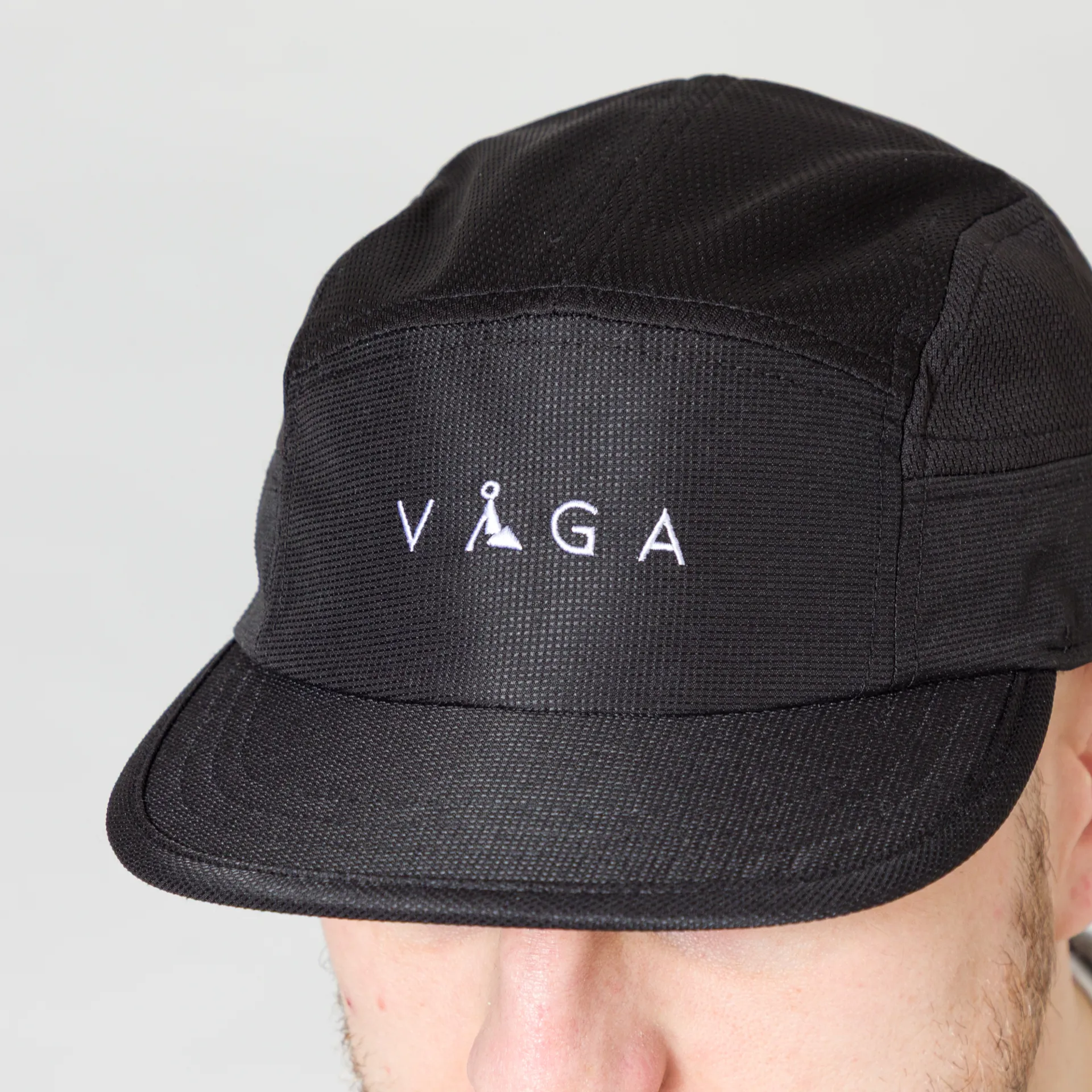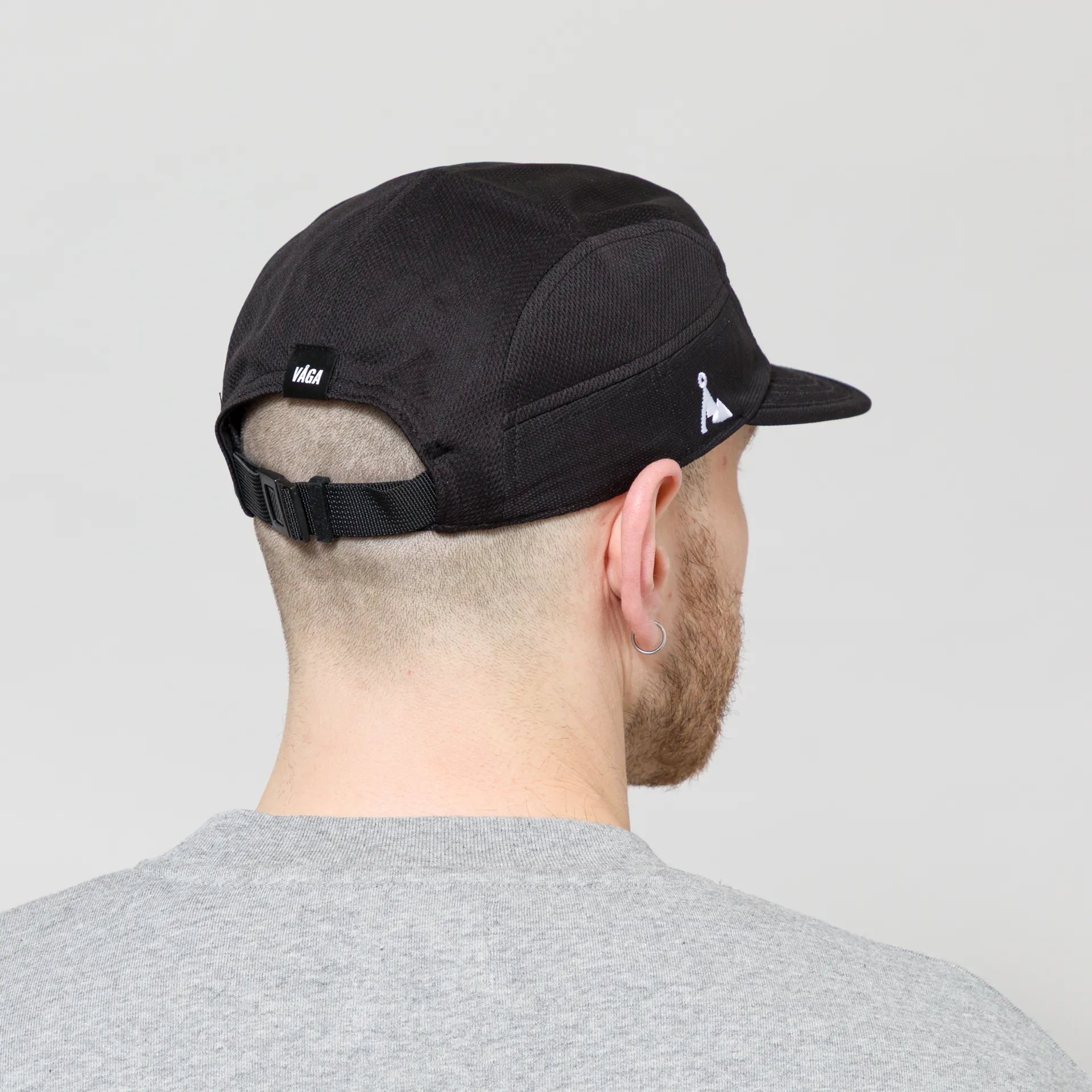 A running cap from Vaga, based up the road from WCH in the Lake District, made from a lightweight and breathable 100% polyester mesh with a flexible peak and adjustable strap. Branding consists of a woven logo tag to the rear, an embroidered box logo to the front, an embroidered mountain to the side and a print to the bottom of the peak.