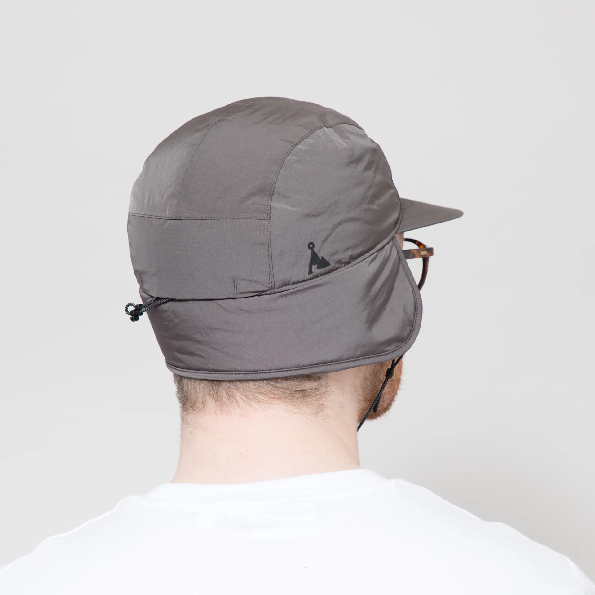 An insulated cap from Vaga, constructed from durable, water-resistant nylon with a polyester fleece lining for warmth and comfort. It has fully taped seams throughout, a flexible flat brim, ear flaps, an adjustable chin strap and a drawcord to the back. Finished with an open-pore padded high-wicking headband and classic Vaga logos to the front and back.