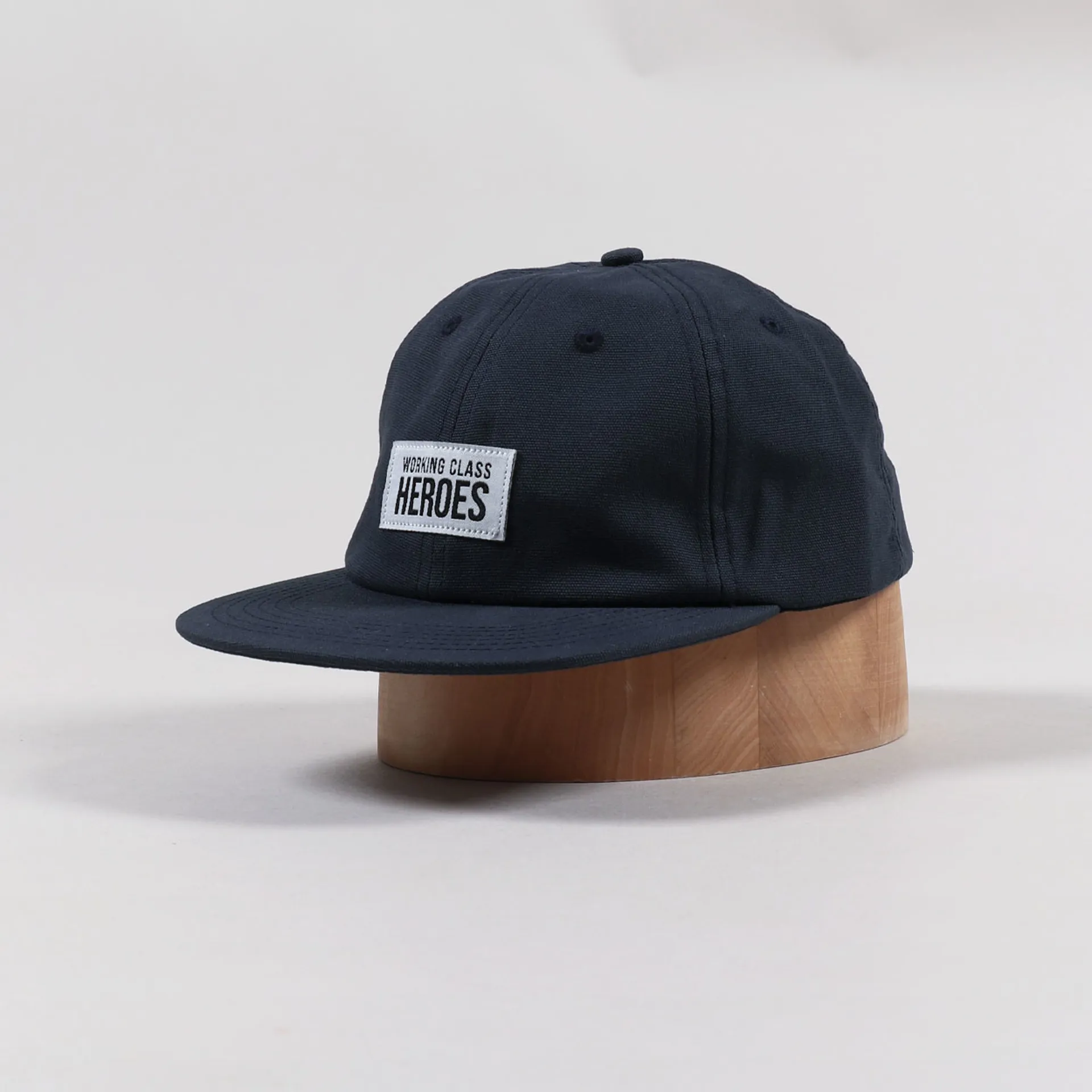 This six panel cap from Working Class Heroes is made from a lightweight cotton canvas with embroidered eyelets, an adjustable clip strap to the rear, a woven flag label and a woven logo patch to the front.