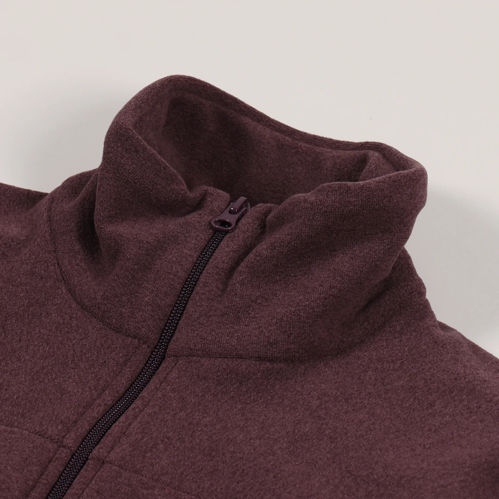 The fleece has a half-zip front with a double-layered collar, and it has a droptail hem for slightly more coverage to the rear. Branding is super simple with woven logo tape to the cuff and back of the neck.