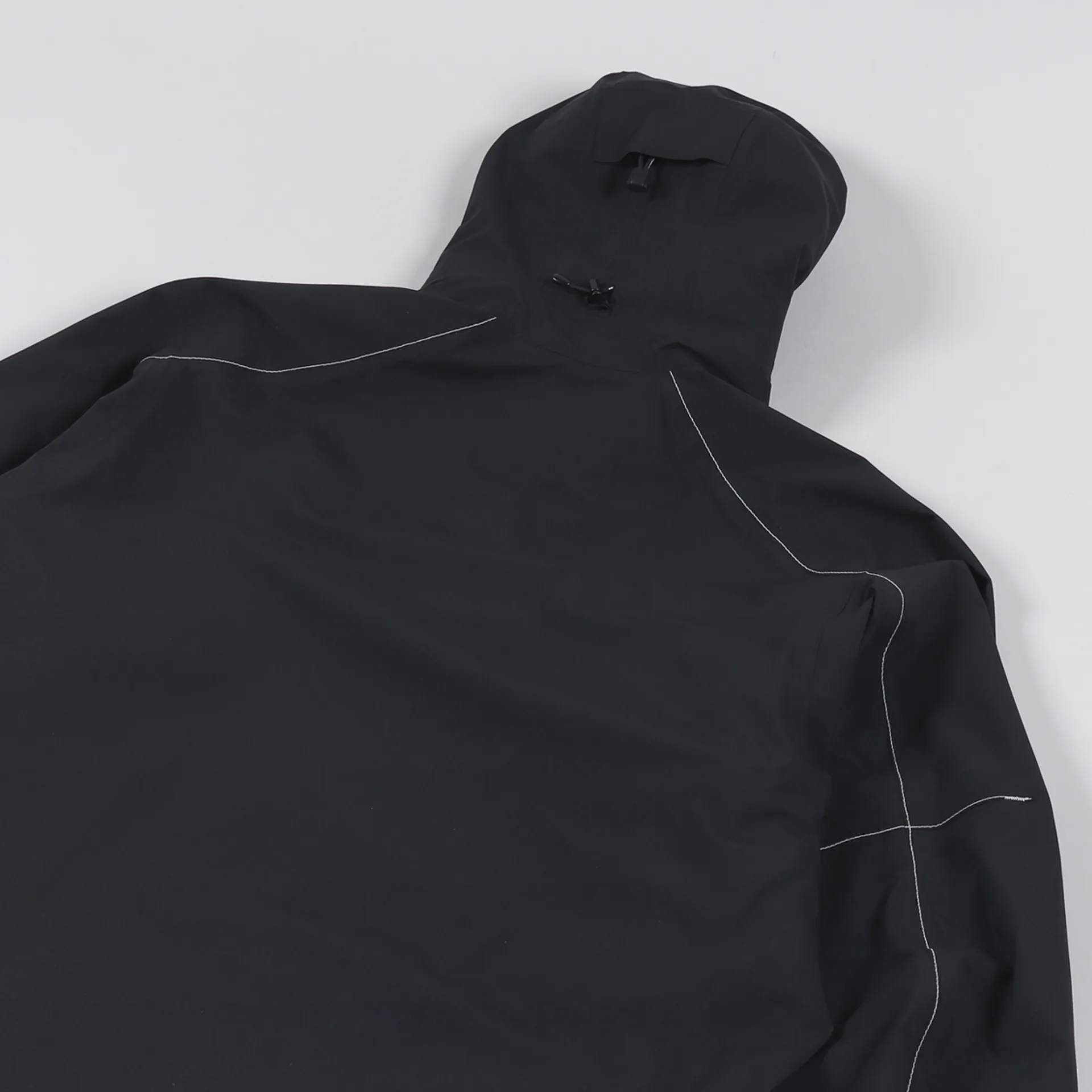 The jacket has a flexible fit with drawcords through the hem and hood, elasticated and Velcro-strapped cuffs, and zippered sides leading all the way from the hem to the inner arm, to be opened for ventilation.