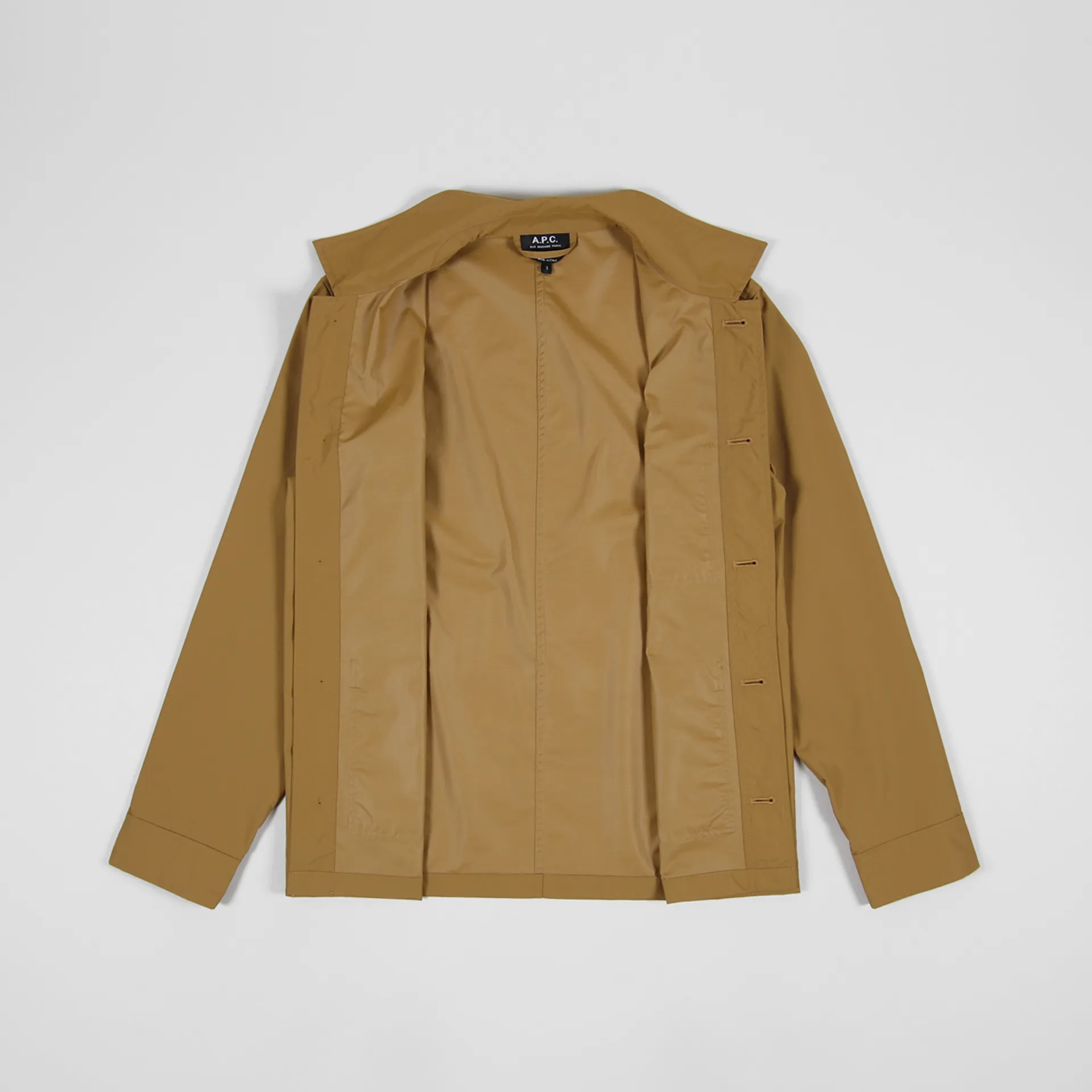 A lightweight jacket from A.P.C. made from a weather-resistant and durable polyamide ripstop with a buttoned front and cuffs and workwear inspiration, featuring chore coat patch pockets. It has a woven logo tag to the chest.