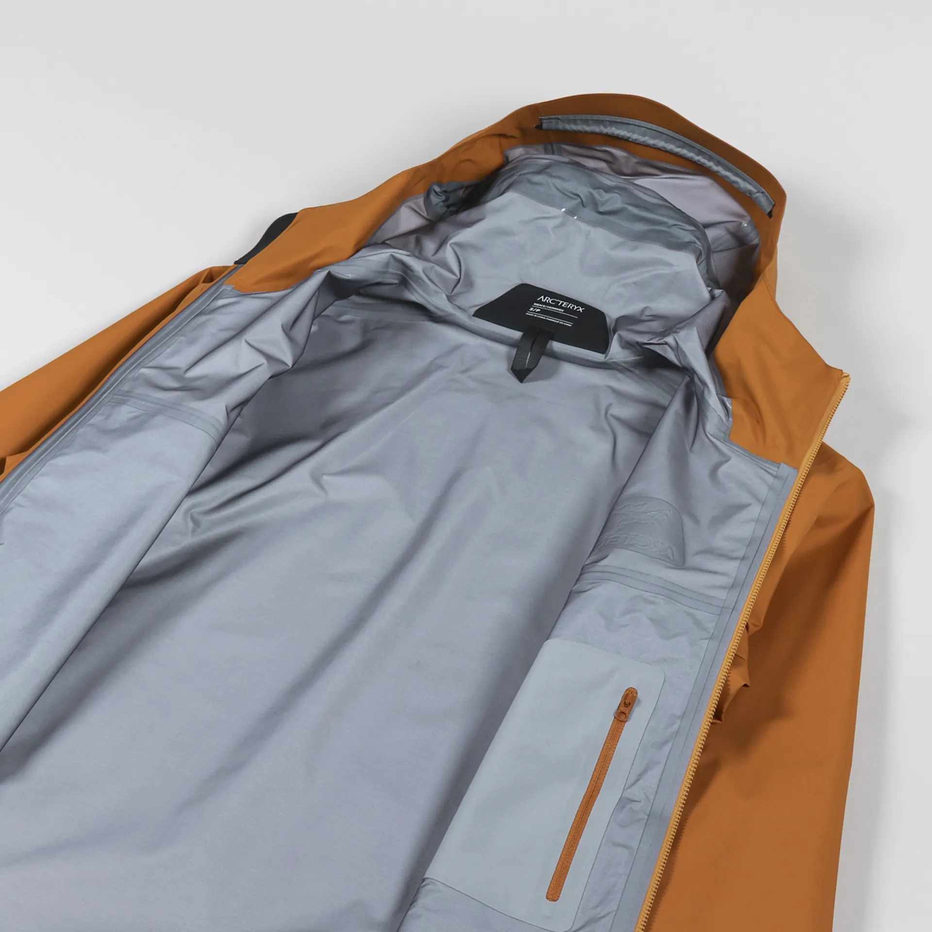A technical jacket from Canadian outerwear label Arc'teryx, made from a waterproof GORE-TEX membrane with a GORE C-KNIT backer for a soft, quiet and breathable design.