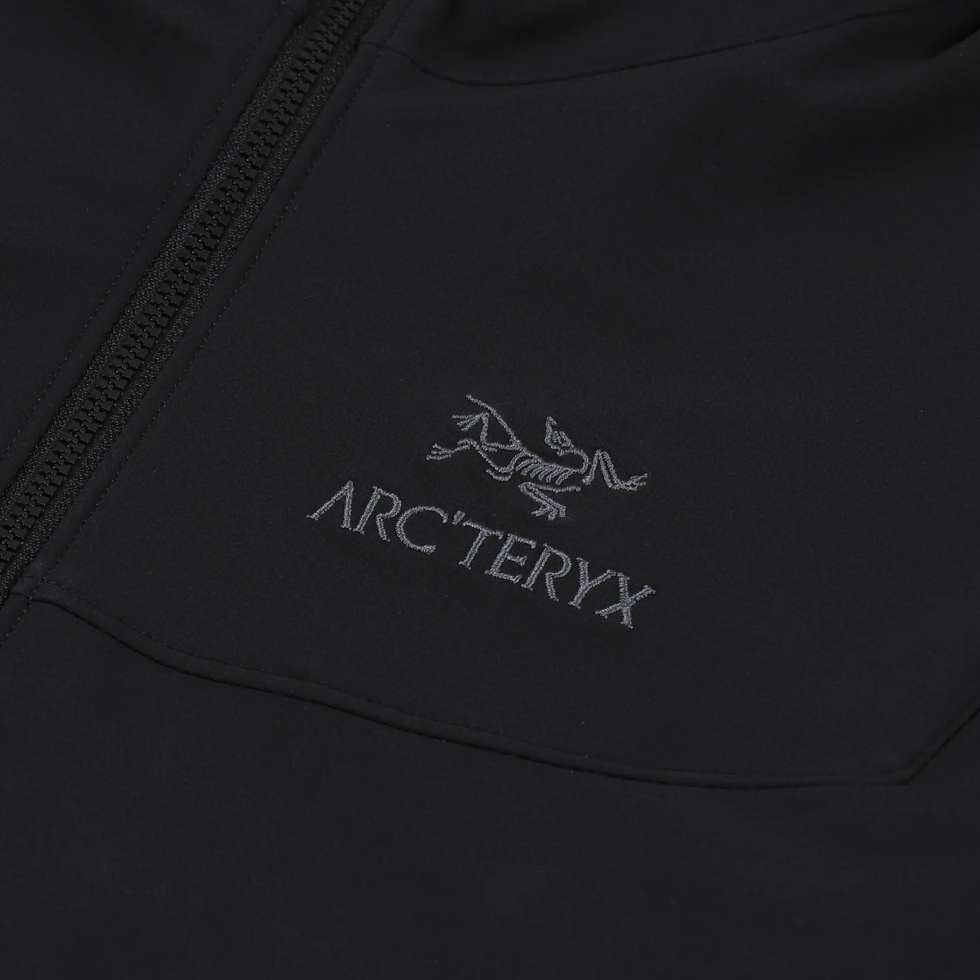A technical jacket from Acr'teryx, made from a Wee Burly Double Weave shell of nylon, polyester and elastane, with a flexible fit, a fleece-lined collar and an embroidered logo to the chest.