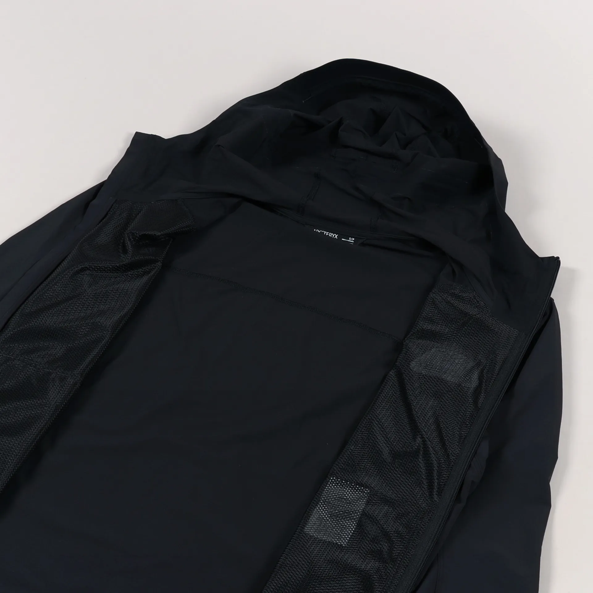 A lightweight jacket from Arc'teryx made from a comfortable and weather-resistant Fortius fabric with a mechanical stretch and an elasticated trim to the cuffs. The hem and hood are fitted with elasticated drawcords and it has a full-zip front. The jacket has two handwarmer pockets and an embroidered logo to the chest.