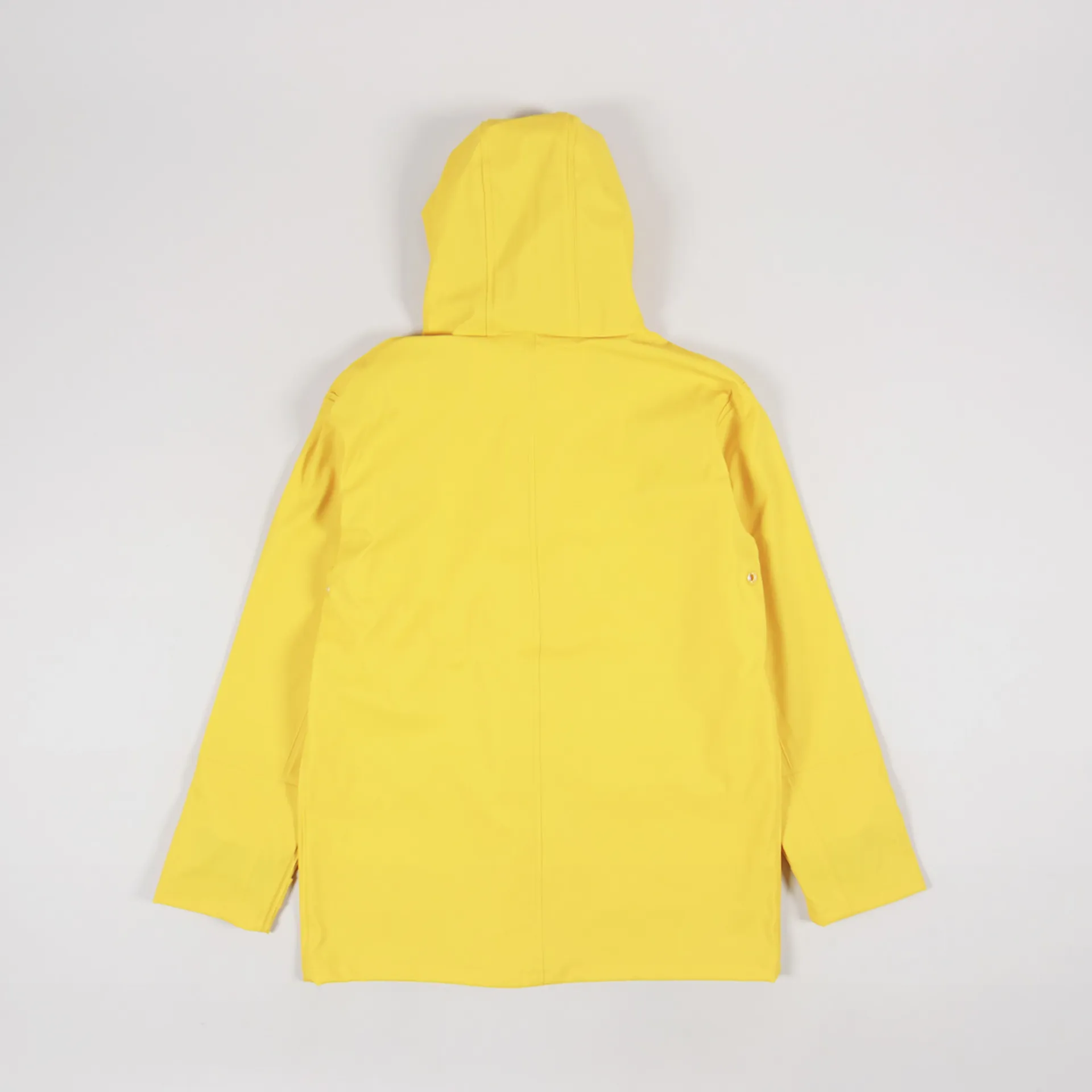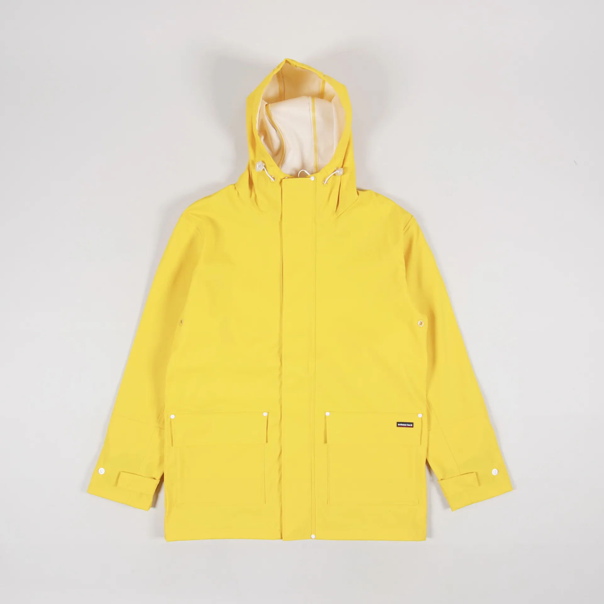 A waterproof fisherman's jacket from Brittany's Armor Lux made from a classic, smooth 100% polyester with a drawcord hood, ribbed and snap-up cuffs and a full-zip front with a snap-up stormflap. It features a rubber logo patch to the snap-up pockets.