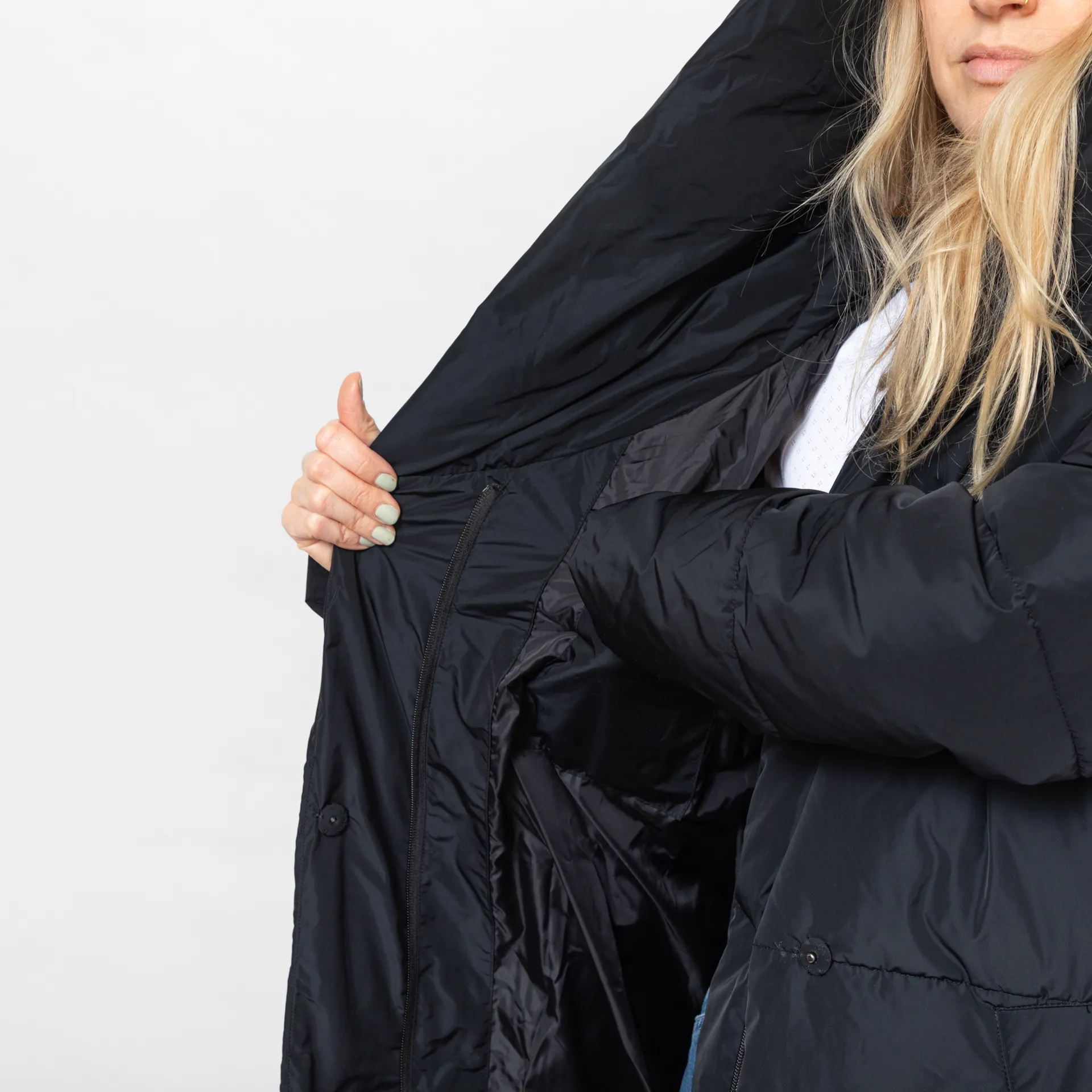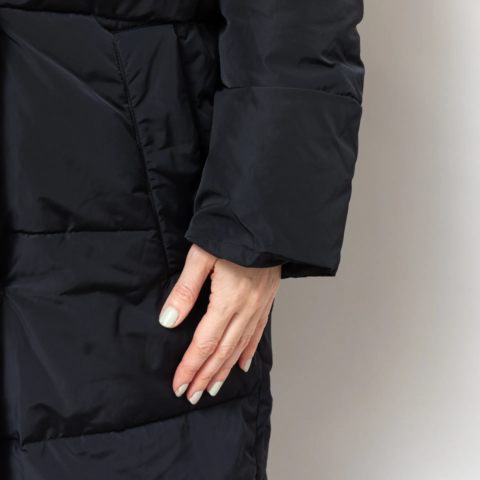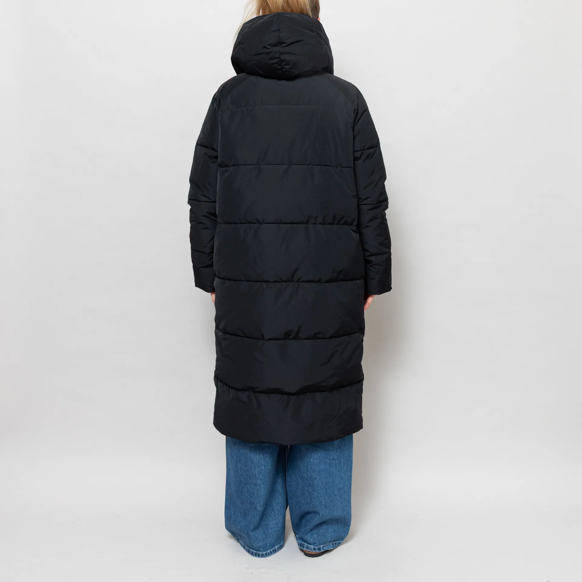 An oversized, super cosy long coat from Basic Apparel, constructed from 100% recycled polyester with a Bionic-Finish Eco coating, resulting in a highly wash-resistant and super-hydrophobic surface