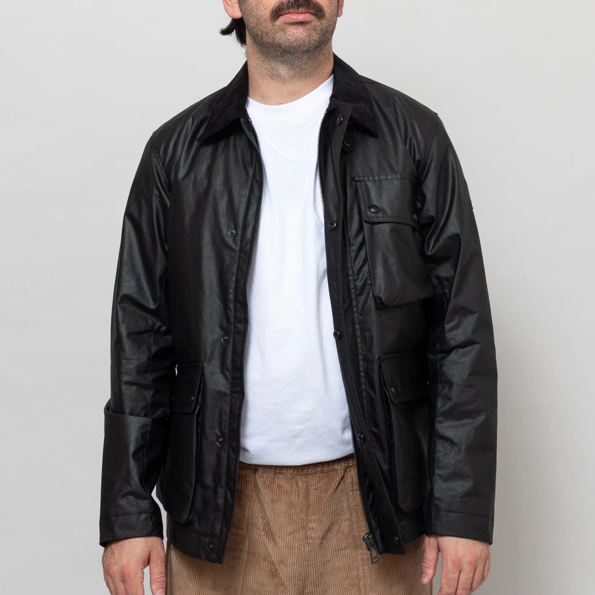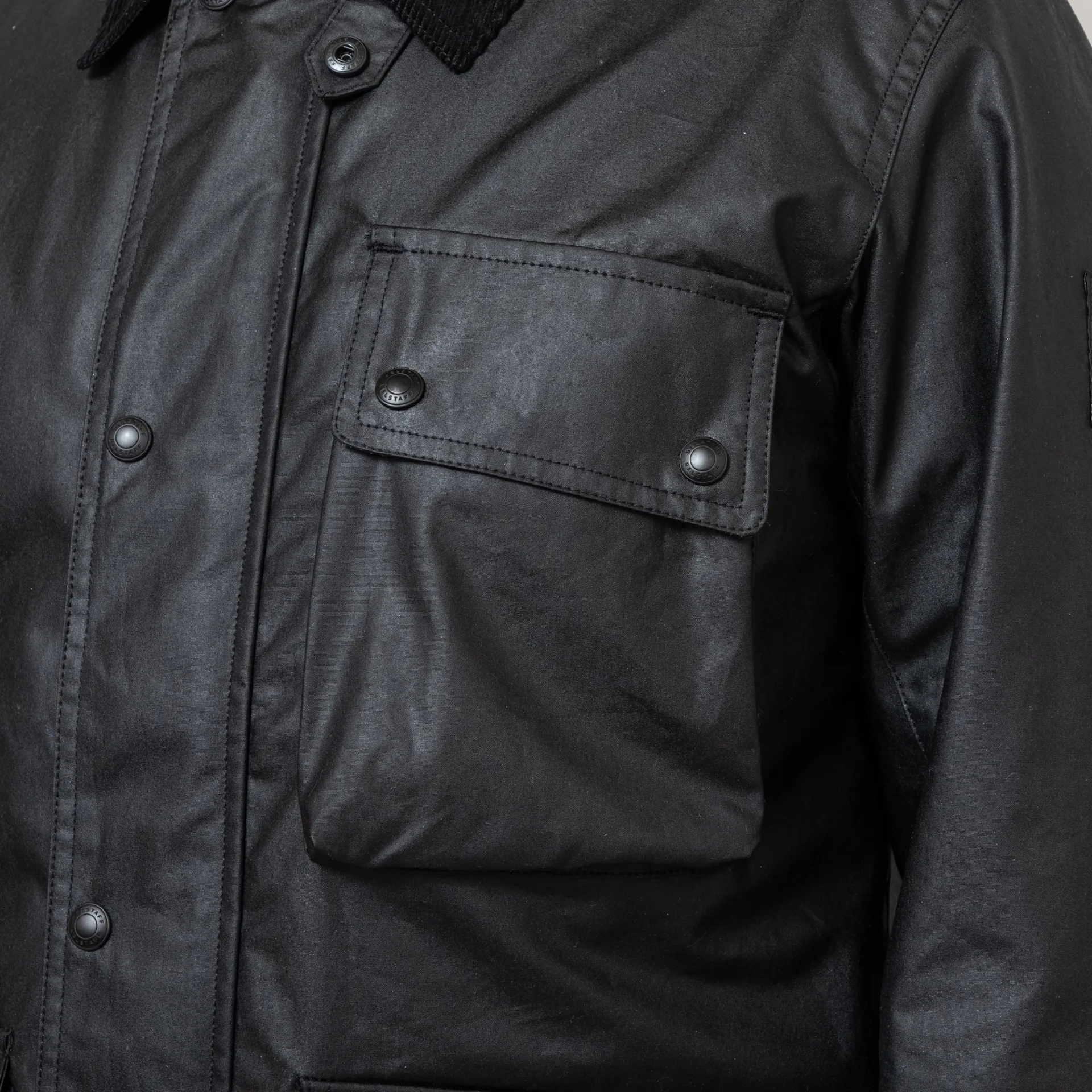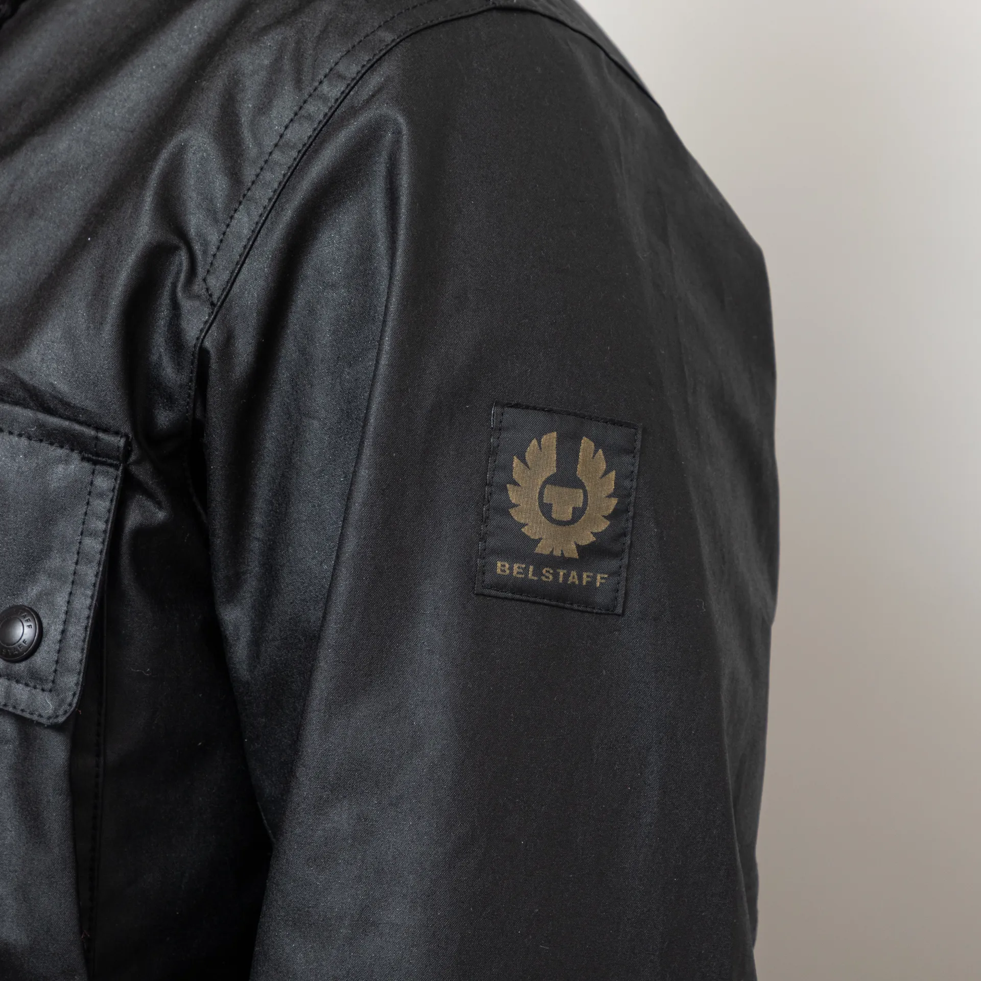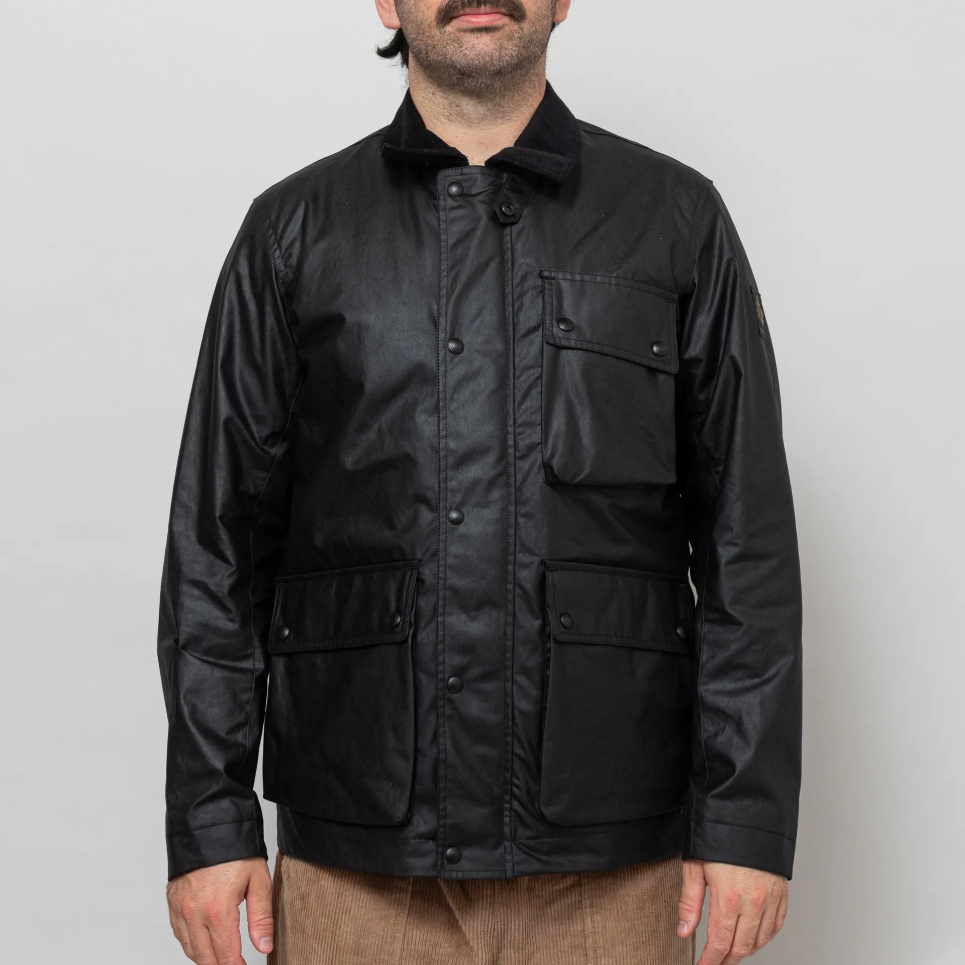 A relaxed fitting, waxed jacket from Belstaff, treated with a water-repellent coating for protection against light showers.