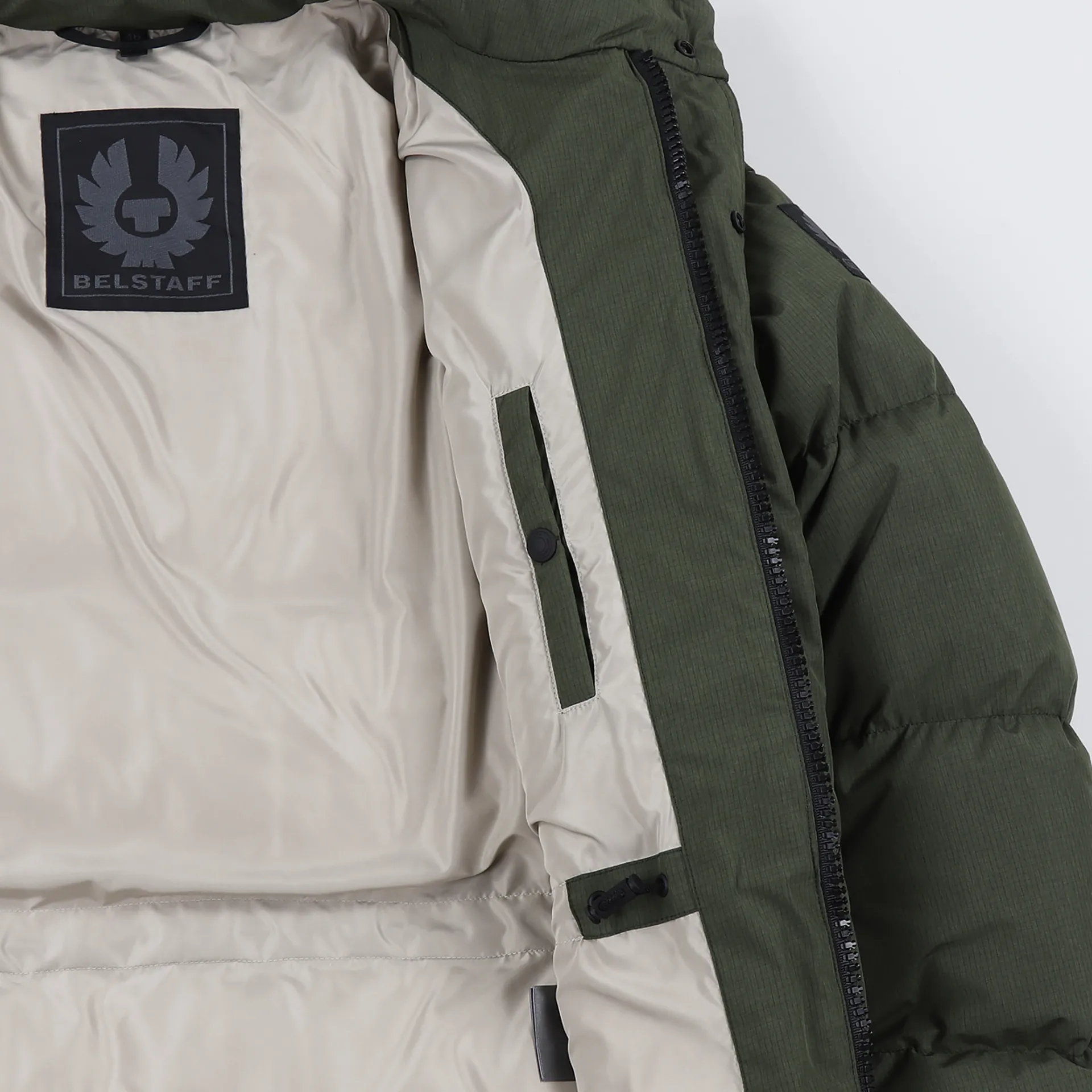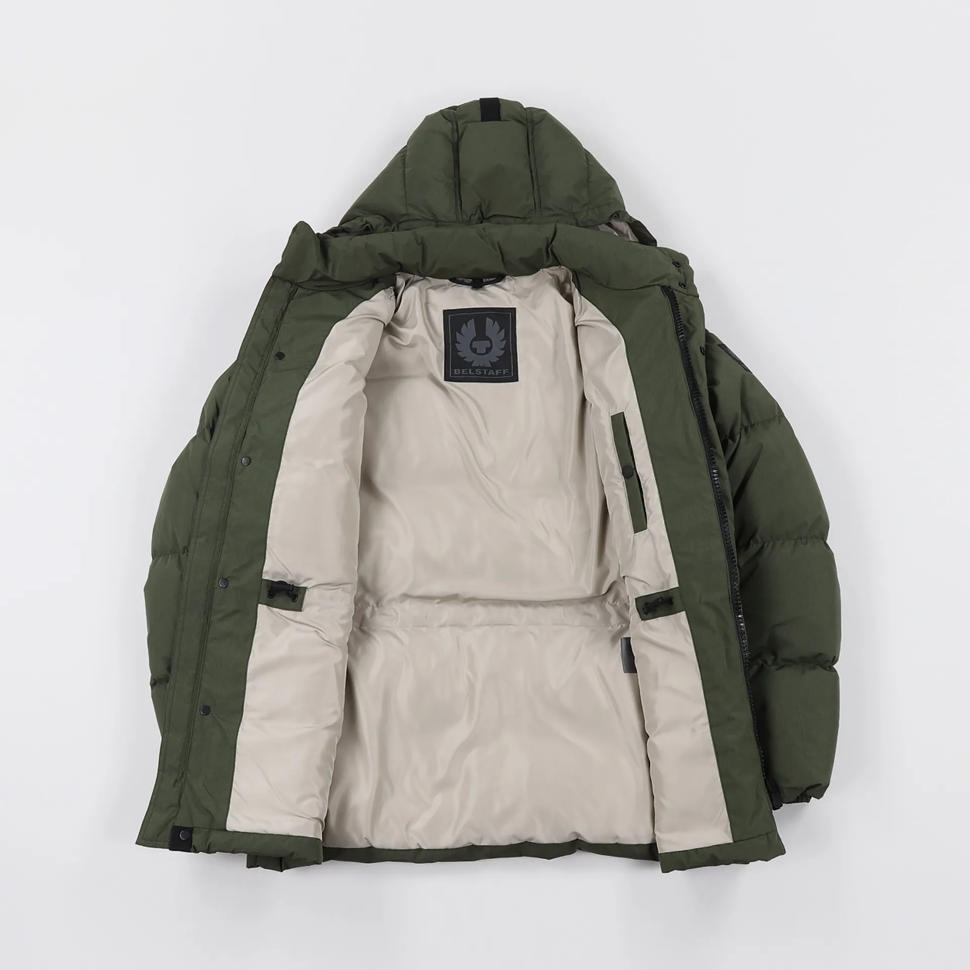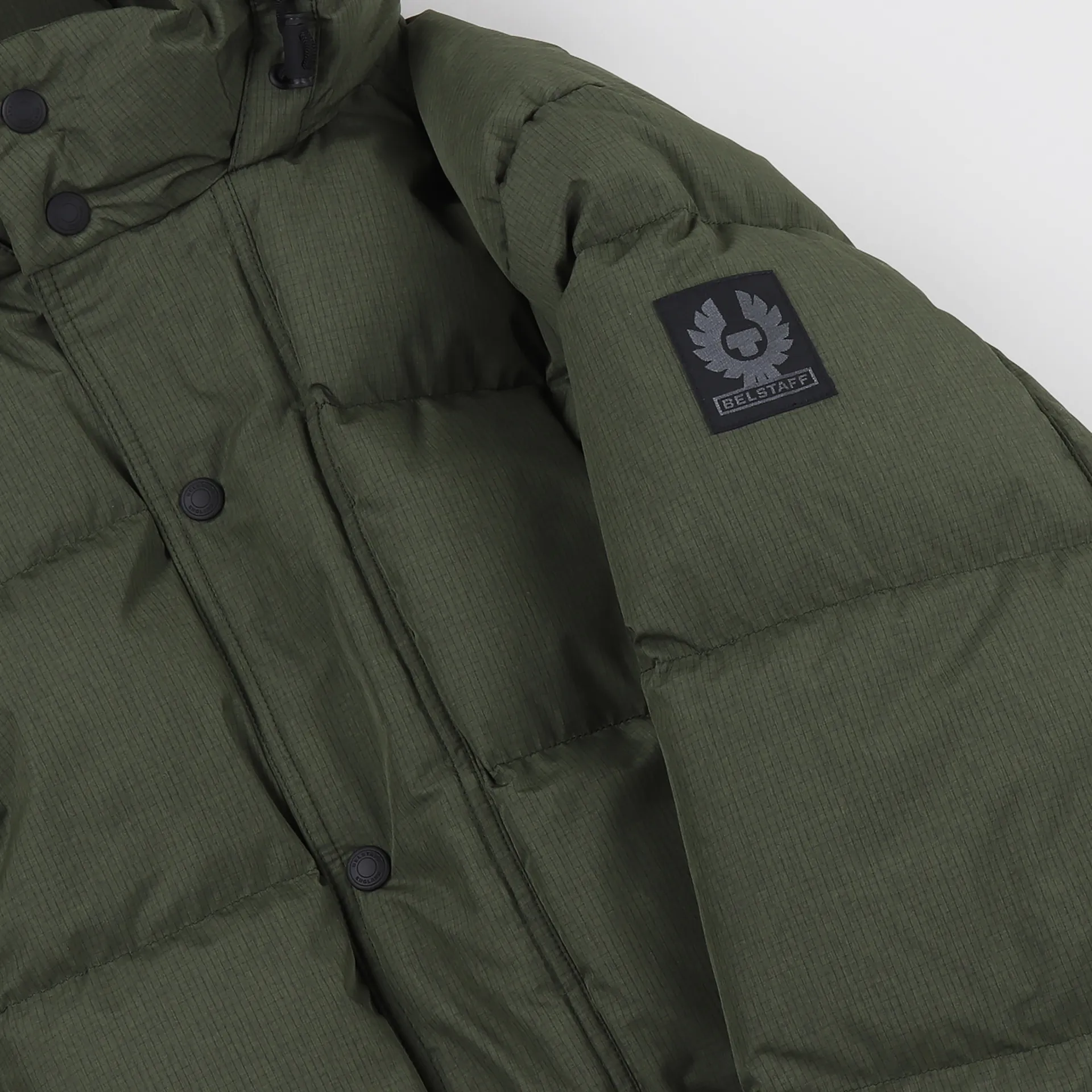 A winter jacket from Belstaff made from a lightweight nylon ripstop with a down and feather insulation. Weather-resistant, warm and resiliant, it has a woven logo patch to the left shoulder.