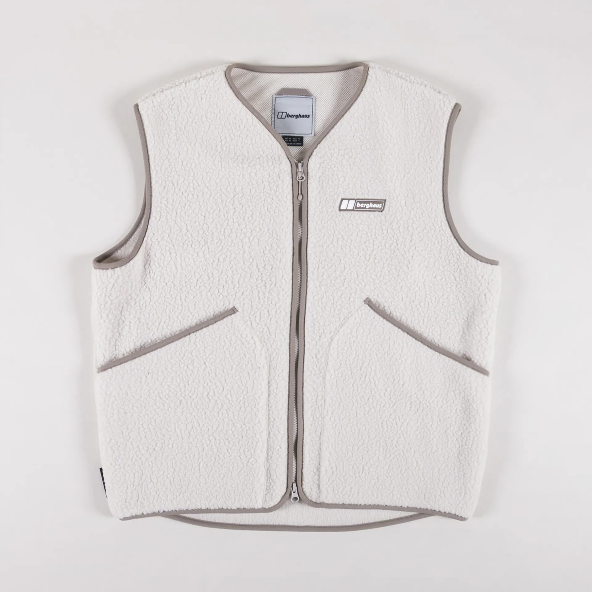 A fleece vest from Berghaus, constructed with Polartec Thermal Pro technology, a shearling fleece fabric thats highly breathable yet insulating.