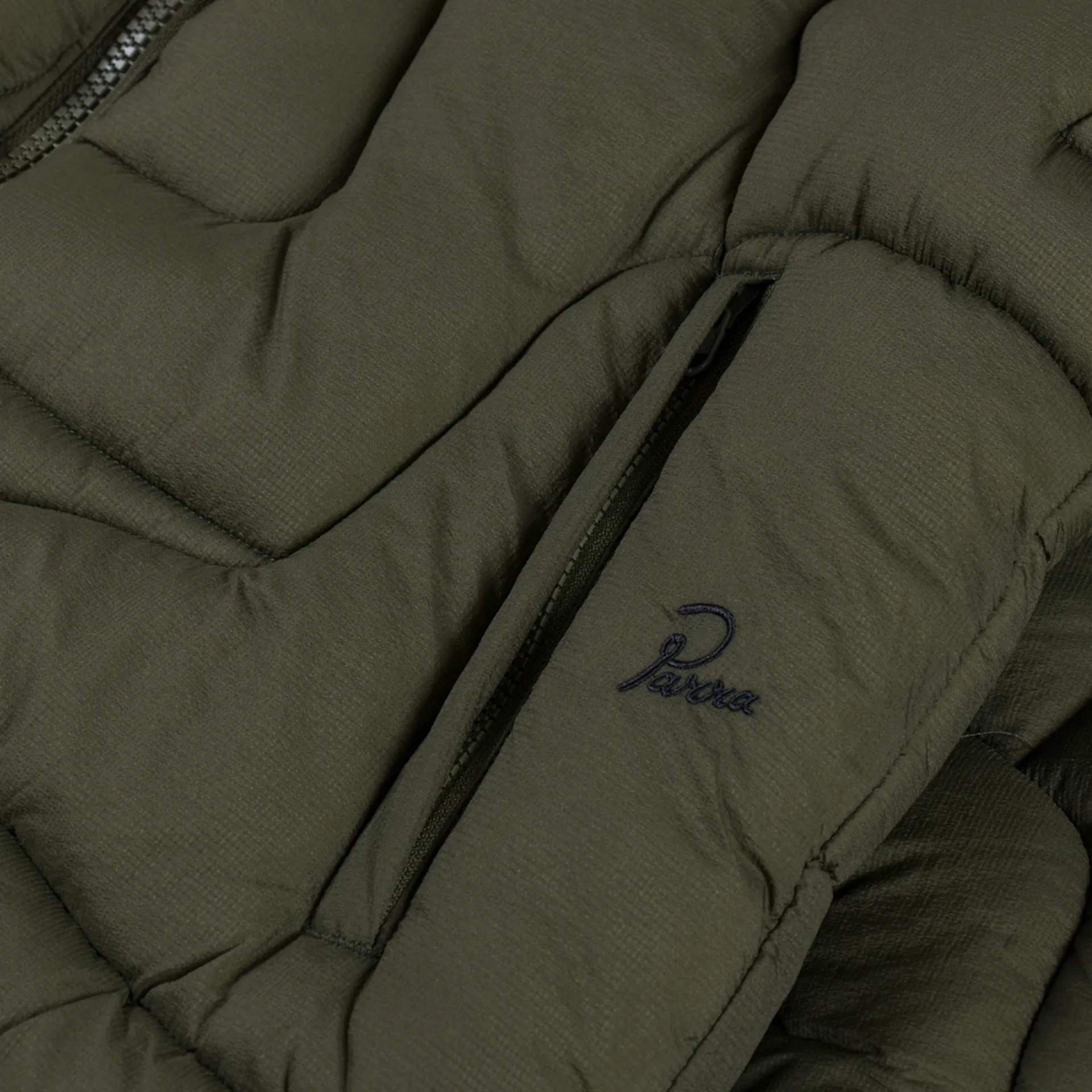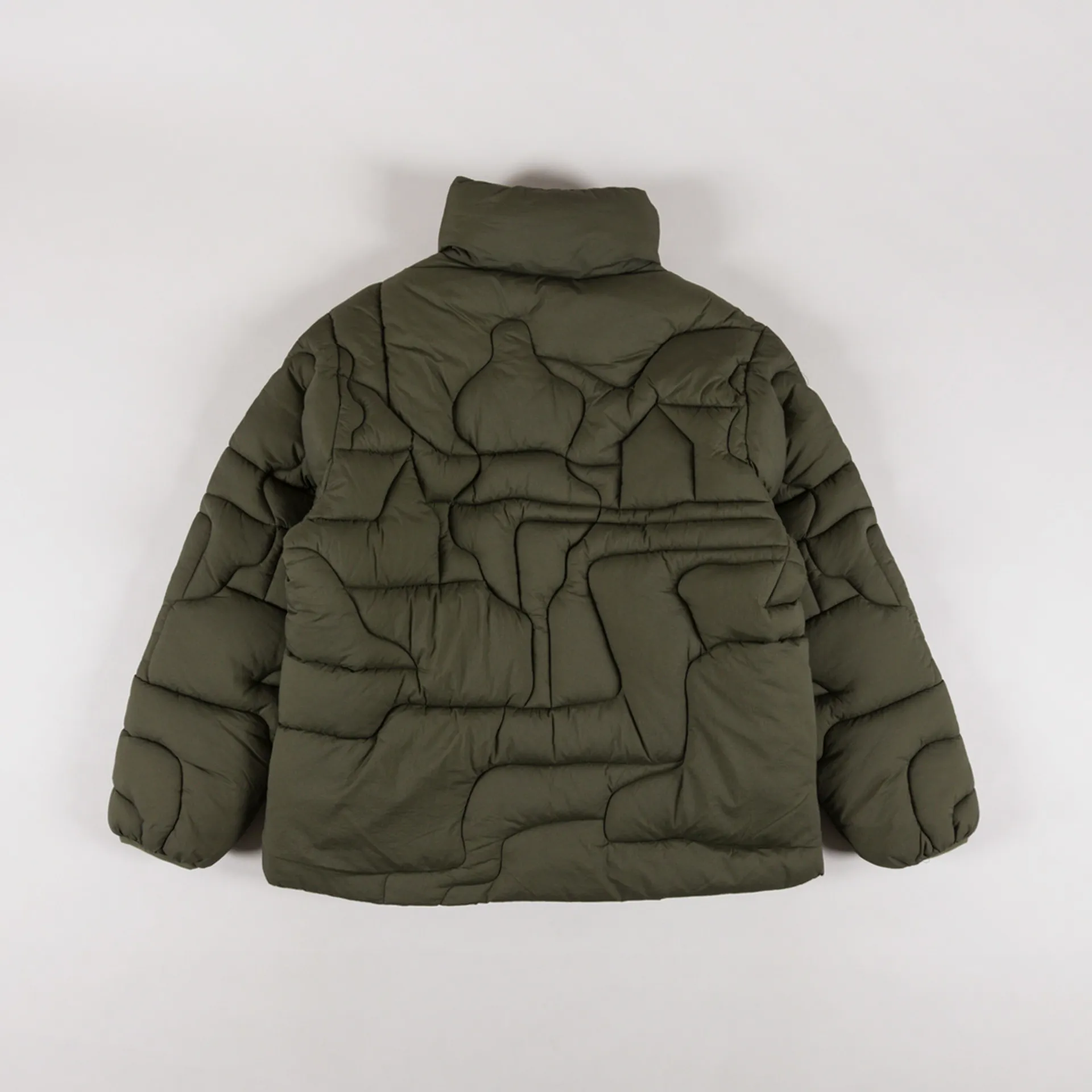 The Boring Village Puffer Jacket has got to be one of my all-time favourite pieces from By Parra, it's set apart with custom quilted 'boring village' artwork, giving it a bold tonal texture without being too loud. It has been cut in a regular fit for everyday comfort and crafted from mini-ripstop nylon with a polyester lining and fleece-lined collar. Featuring a full-zip through front, leading up to the stand collar, with a drawcord hem and elasticated cuffs. It has two pockets to the front and a single zipped pocket on the inner, finished with the signature Parra embroidered logo.