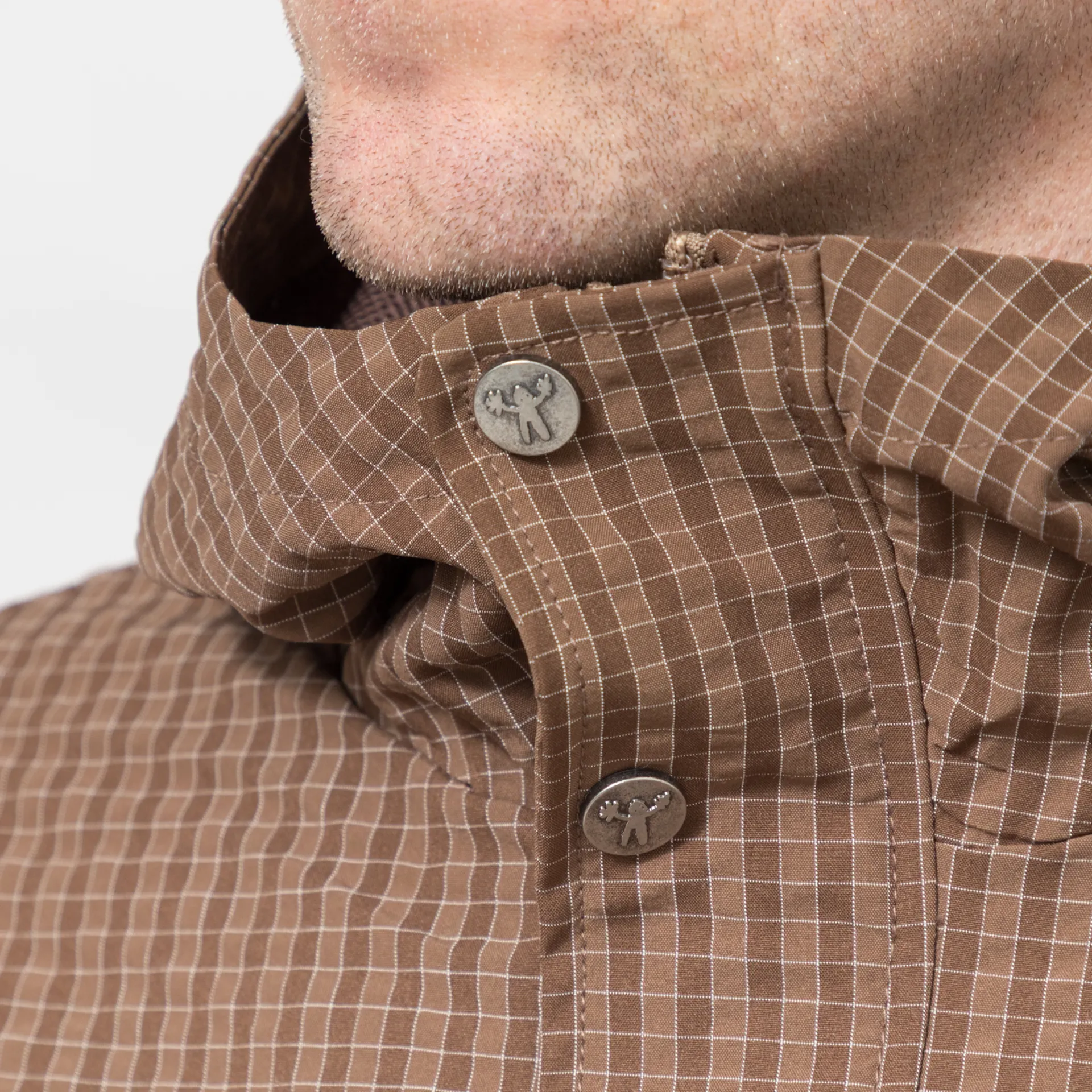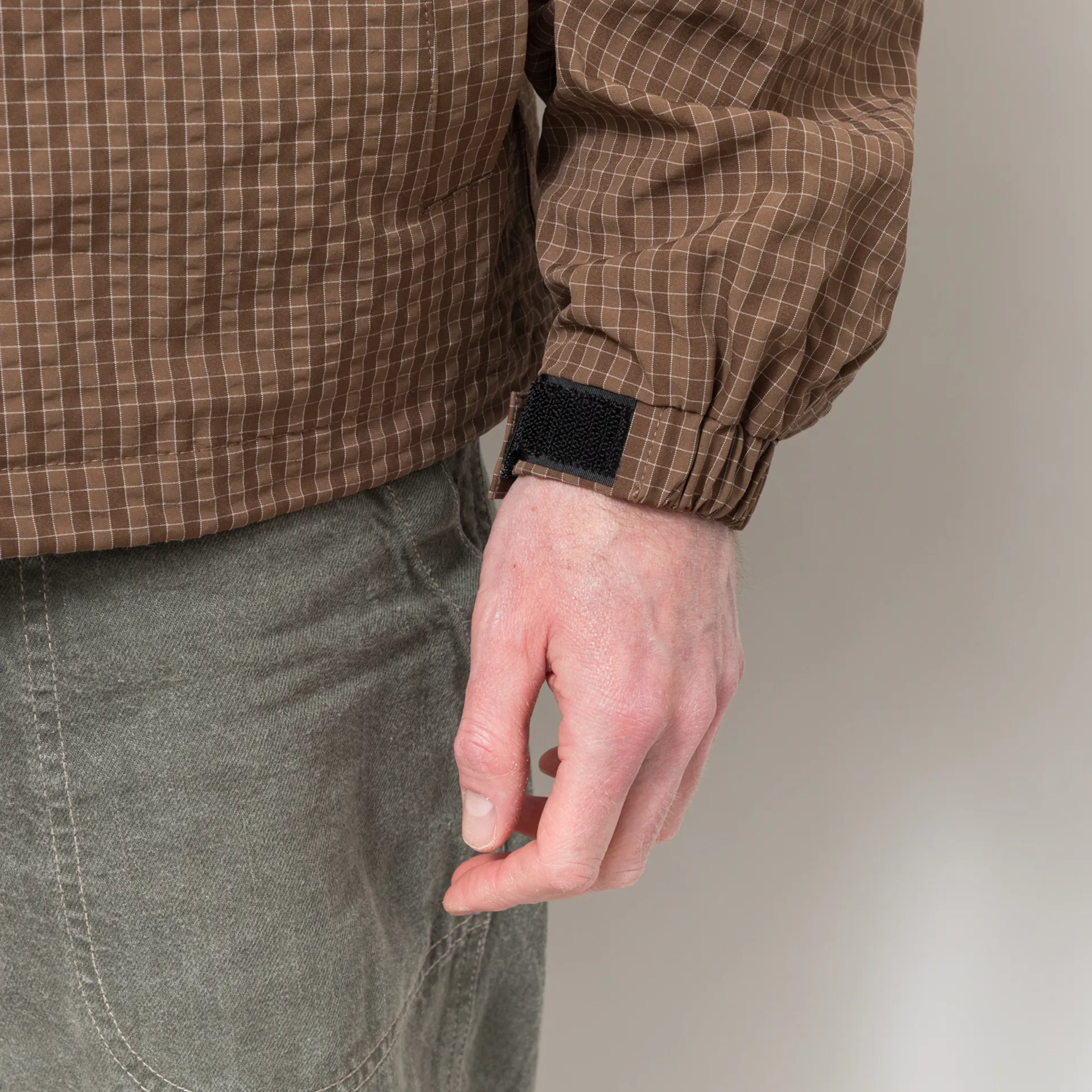 A windbreaker from CANDICE, cut in a boxy fit for a laidback silhouette and constructed from lightweight nylon fabric with a mesh lining for comfort. It features an all-over plaid design, a zip-through front covered by the snap-button placket, which leads to a classic hood. The hem has drawcords, and the cuffs have velcro straps to adjust the fit. The design is complete with two front hand pockets.