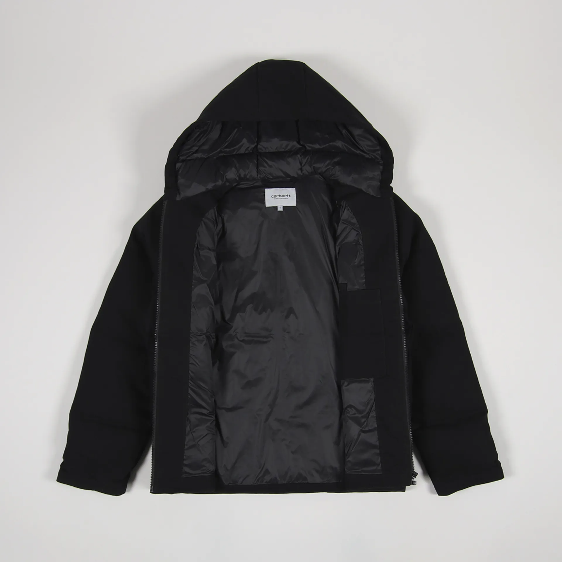 A durable jacket from Carhartt WIP with workwear inspiration and winter design, made from a shell of 100% organic cotton canvas with a super smooth nylon lining, handwarmer pockets, an internal patch pocket and a woven logo patch.