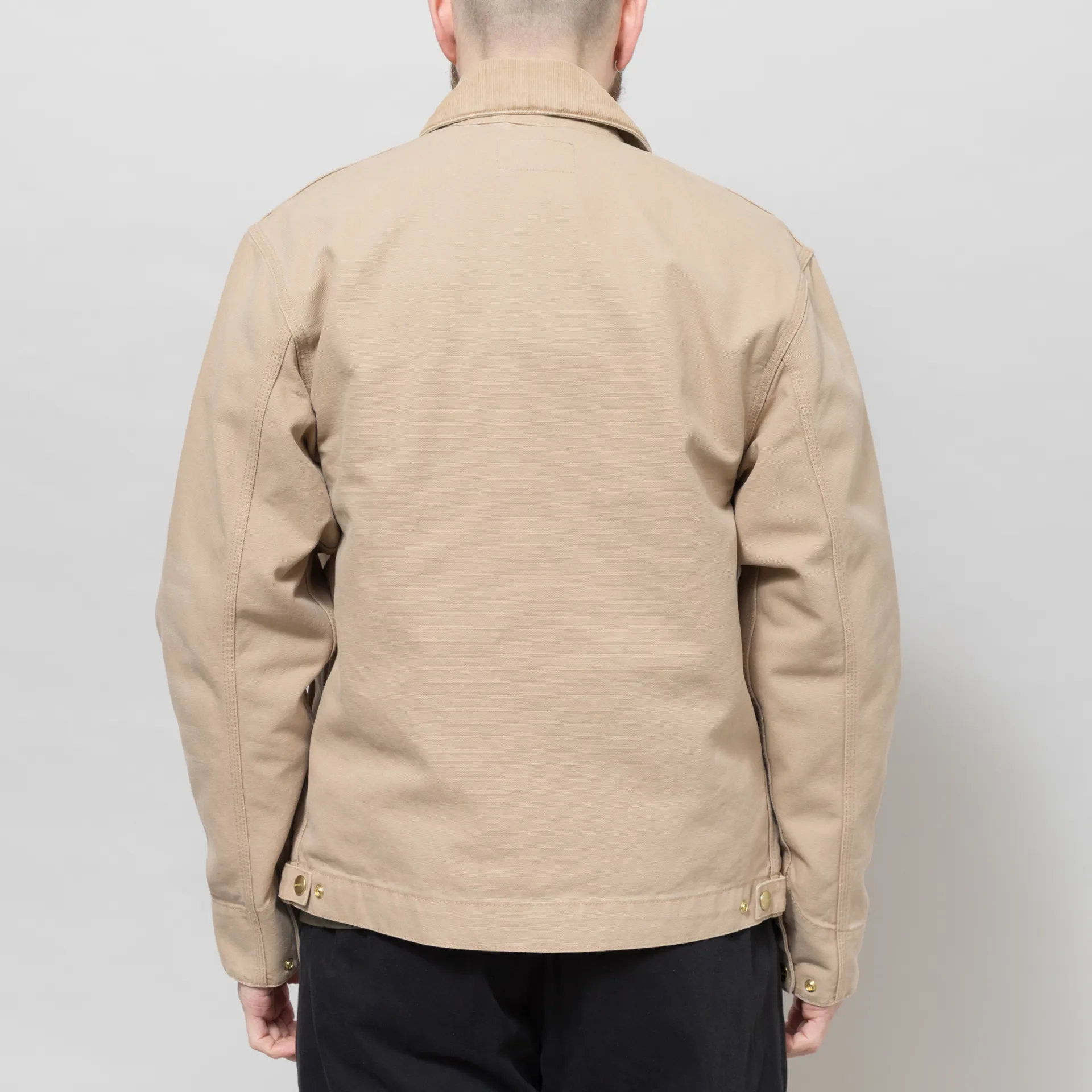 The unlined Detroit Jacket from Carhartt WIPis a classic workwear heritage silhouette pulled from Carhartt's archive. It has been cut in a regular, slightly boxy fit for everyday comfort and constructed from 100% organic cotton Dearborn Canvas, a heavyweight and durable fabric. It features a zip-through front, leading up to a classic corduroy collar, with a buttoned hem and cuffs, with a three-pocket design to the front and finished with the signature Carhartt WIP logo patch to the chest.