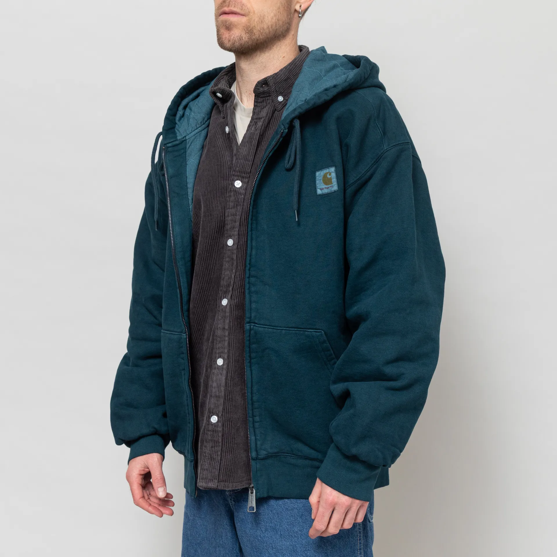 A casual workwear-style jacket from Carhartt WIP made from a heavyweight 100% cotton jersey with a quilted lining. For a soft washed look, it's been pigment dyed.