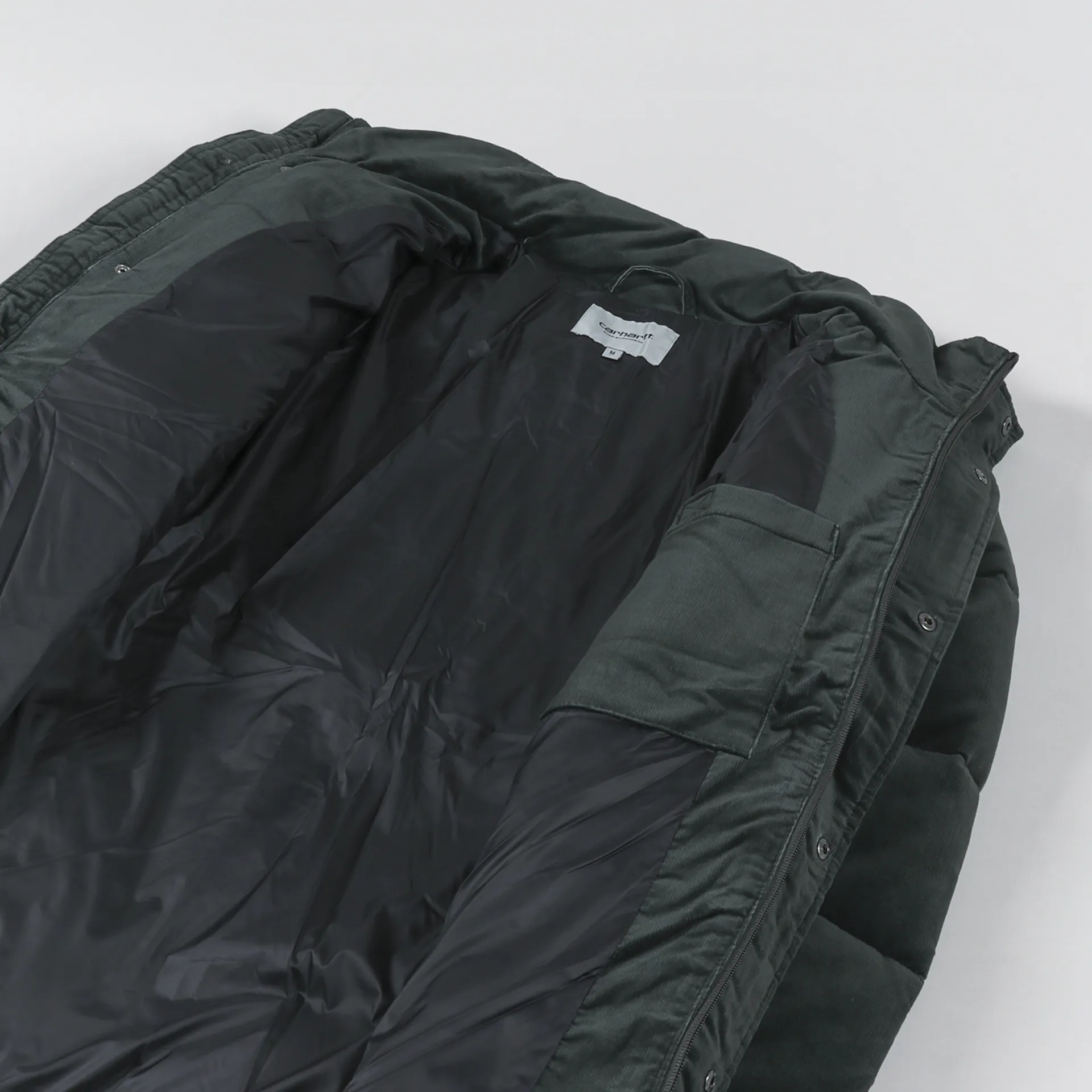 The Layton Jacket is made from 98% cotton and 2% spandex, with a 100% nylon lining. It features Carhartt WIP Script logo to the chest and is filled with artificial down.