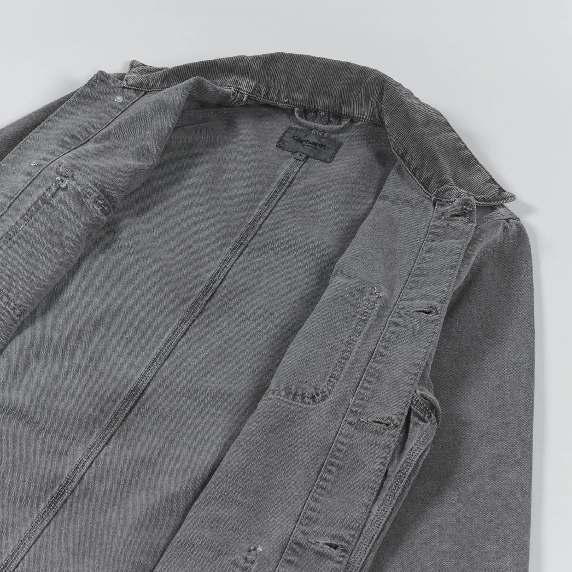 Blending iconic workwear silhuoettes from Hamilton Carhartt's legacy with more contemporary European styles, this version of the Michigan Coat is a classic chore design with four pockets to the front for convenience. It features a woven logo patch to the chest, metallic buttons and a corduroy collar detail.