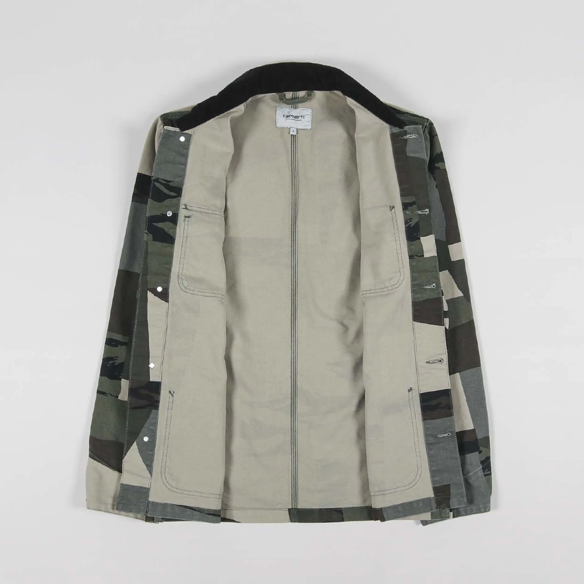 Blending iconic workwear silhuoettes from Hamilton Carhartt's legacy with more contemporary European styles, this version of the Michigan Coat is a classic chore design with four pockets to the front for convenience. It features a woven logo patch to the chest, metallic buttons and a corduroy collar detail.