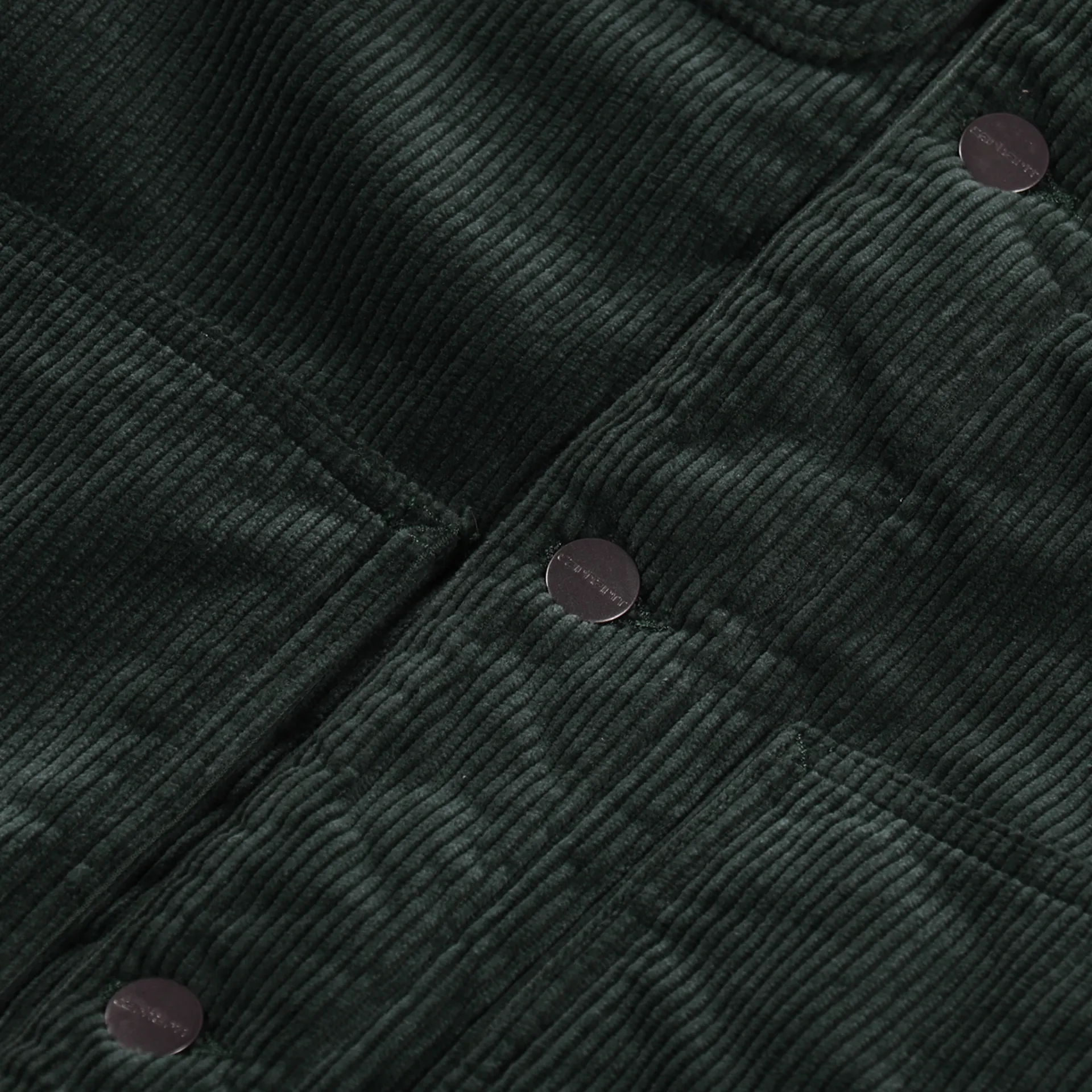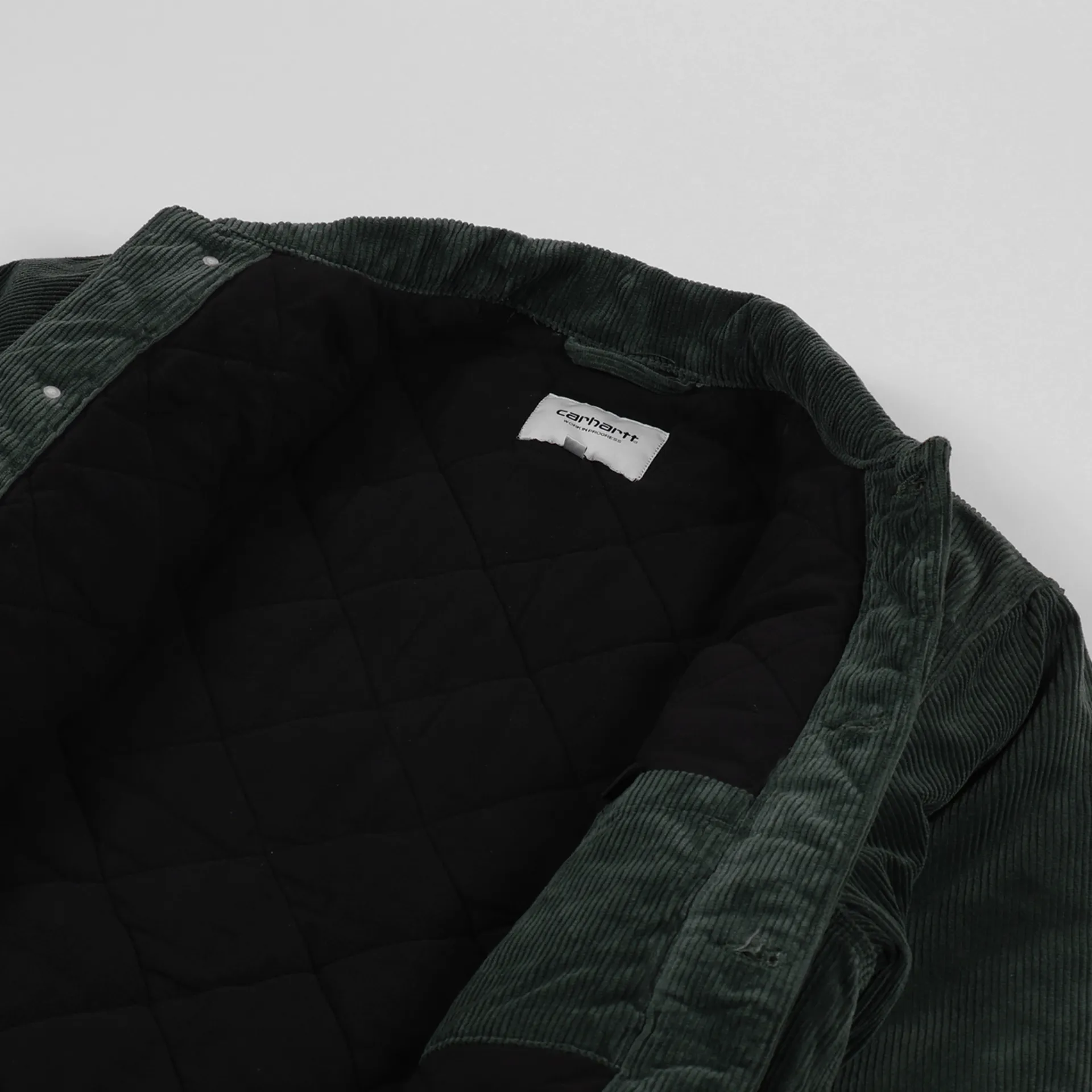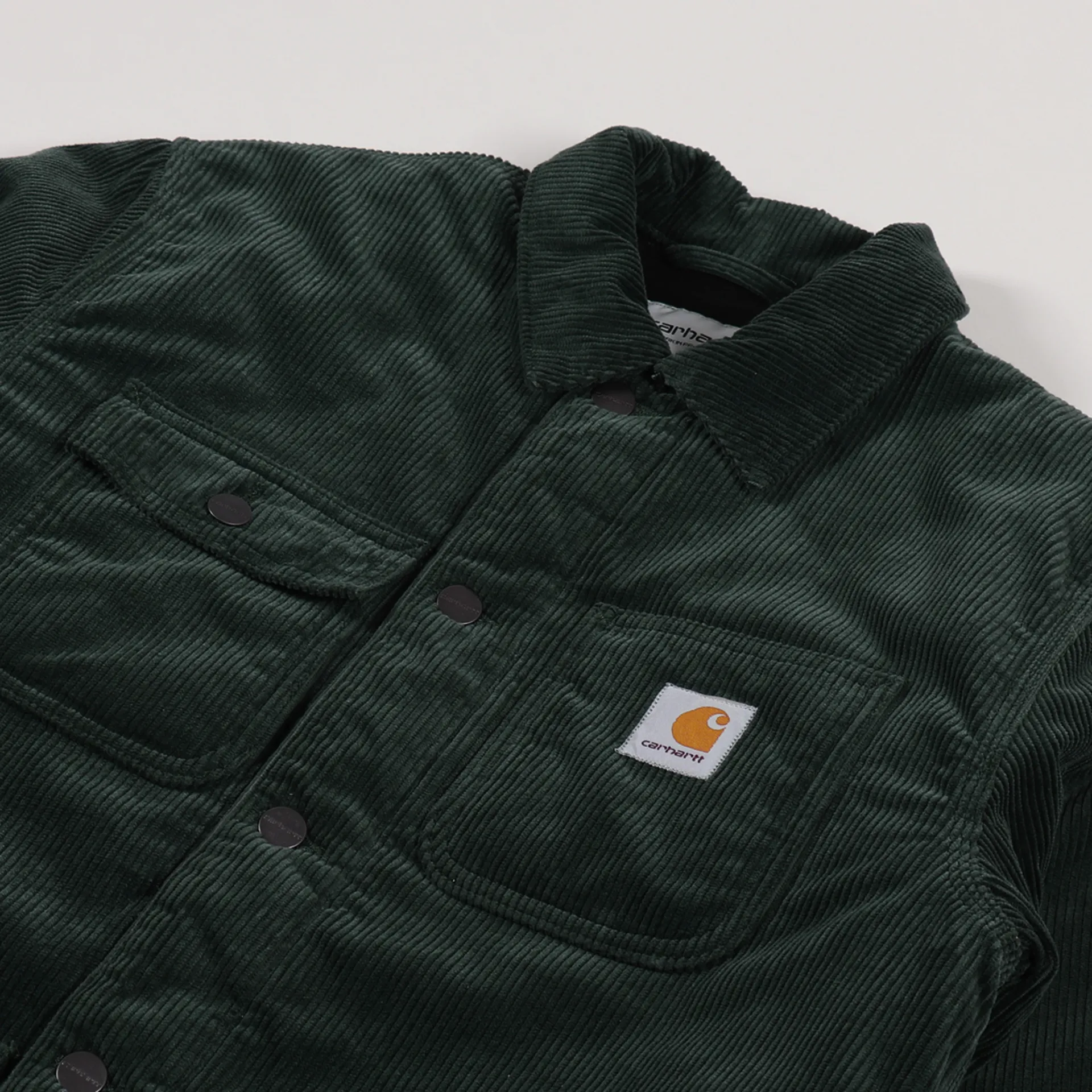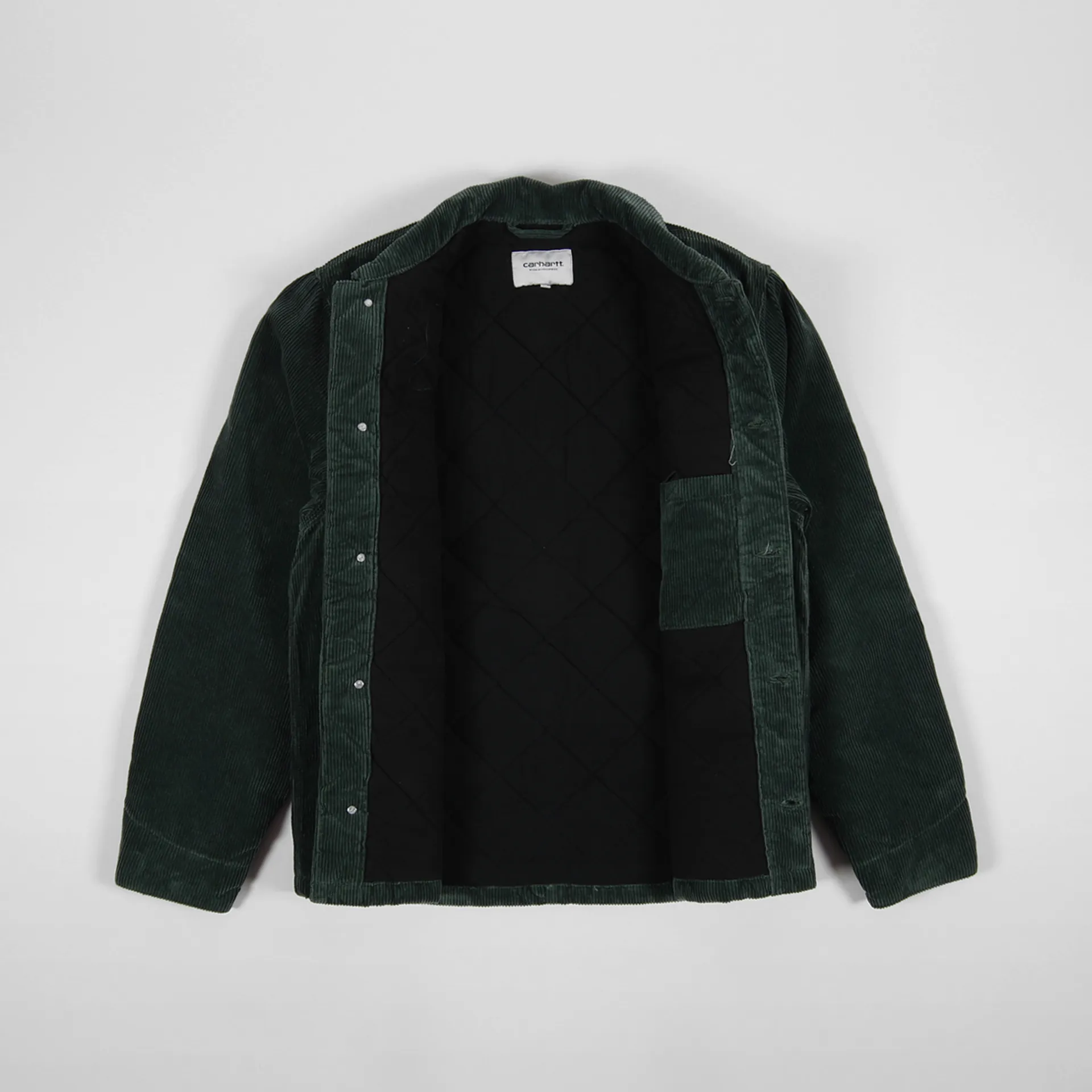 A jacket from Carhartt WIP made from a shell of 100% cotton 'Coventry' corduroy with a quilted cotton poplin lining and a buttoned front and cuffs. The jacket has four external patch pockets and an internal security pocket.