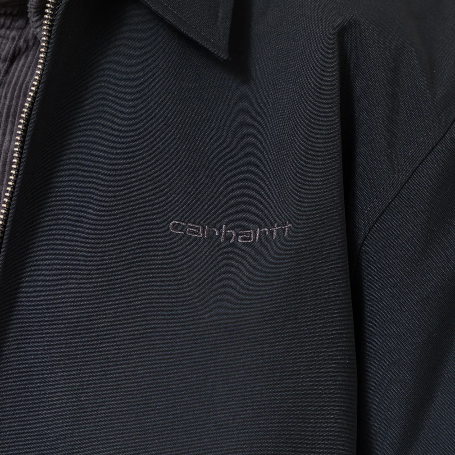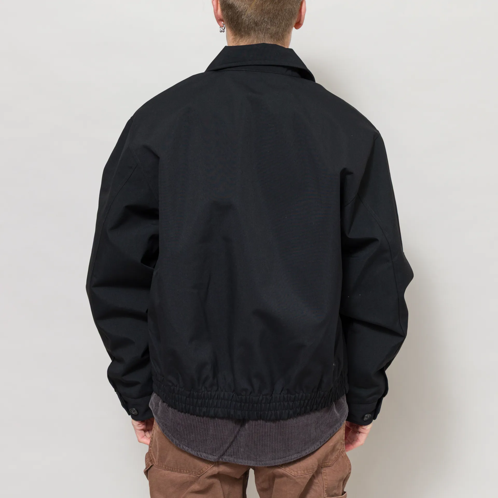 A lined canvas jacket from Carhartt WIP, cut in a boxy fit with a dropped shoulder and slightly shorter body. It features a full zip-through front, leading to a classic collar, with buttons at the cuffs to adjust and an elasticated bottom band that cinches the jacket in slightly. Finished off with two simple welt pockets and a tonal embroidered Carhartt Script logo at the chest.