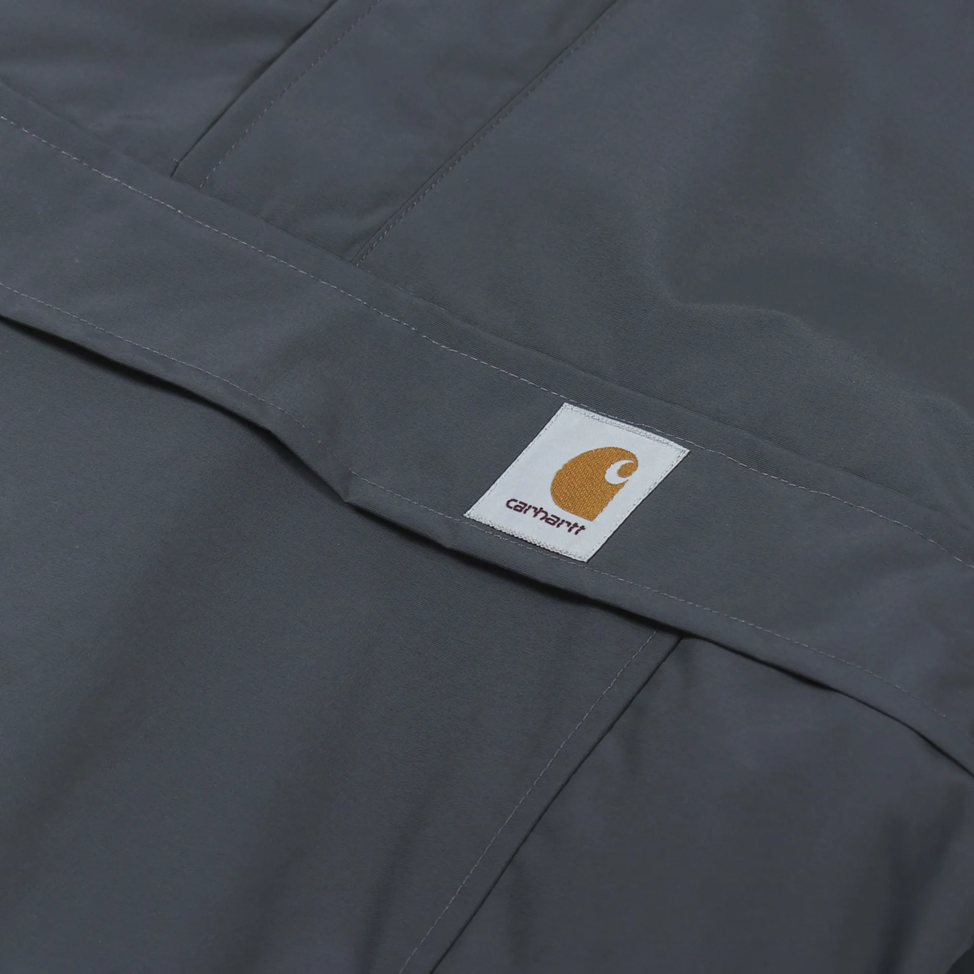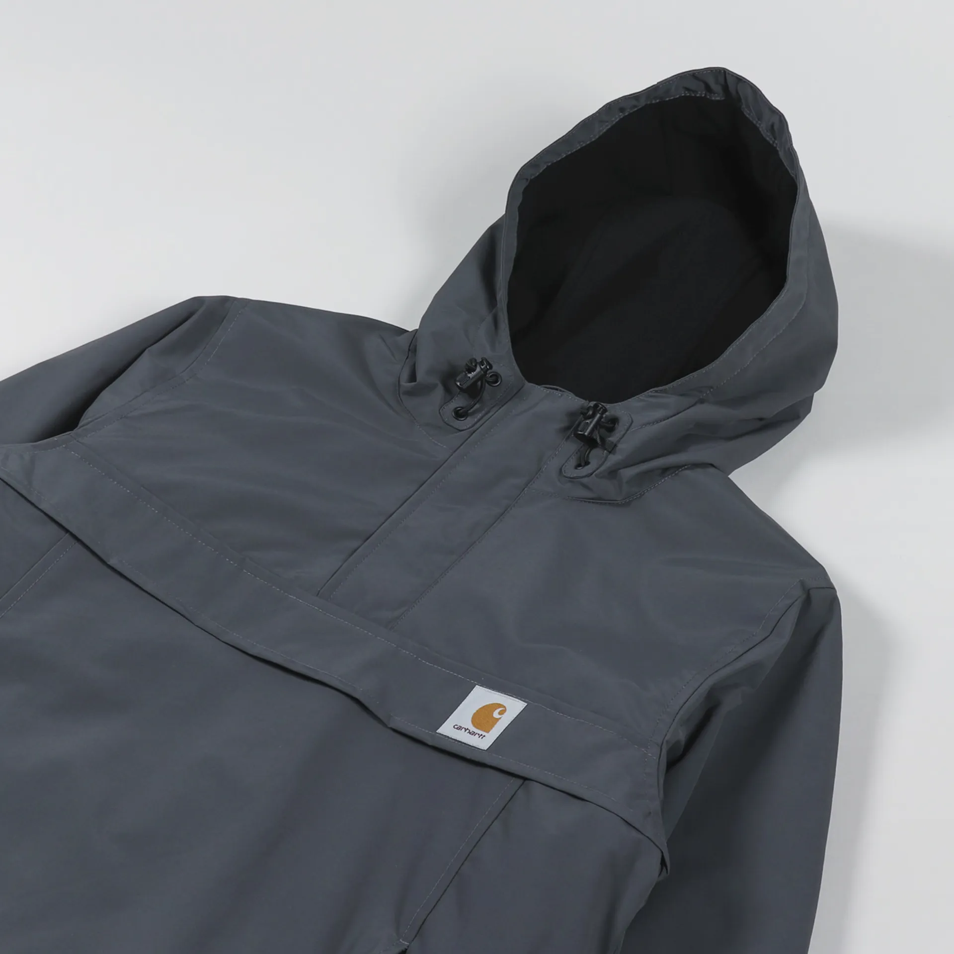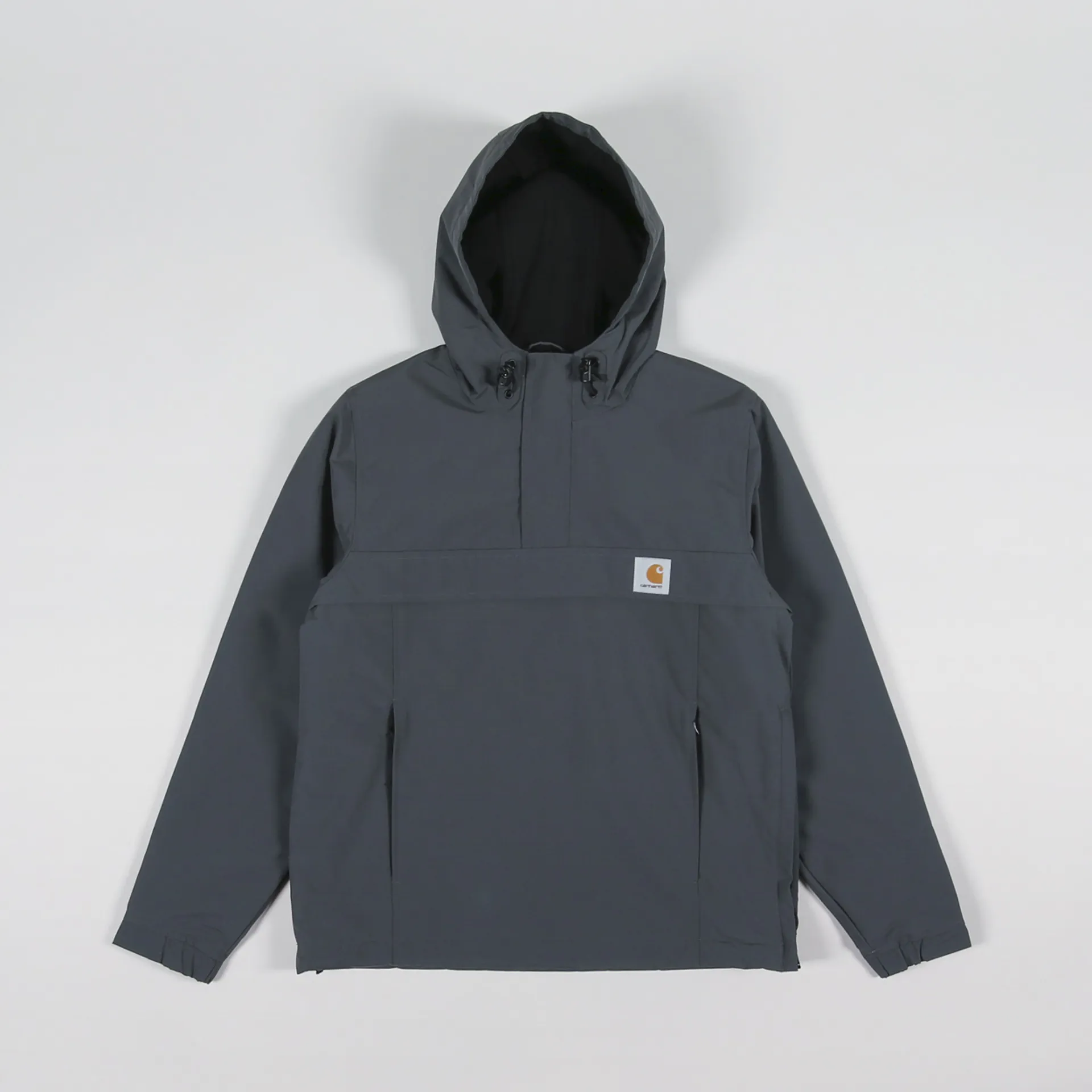 A half zip fastening hold you in place, and drawstrings are found at the hood for those necessary adjustments when the rain falls hard. Finishing off the look is the Carhartt woven logo tab embroidered to the front of the jacket.