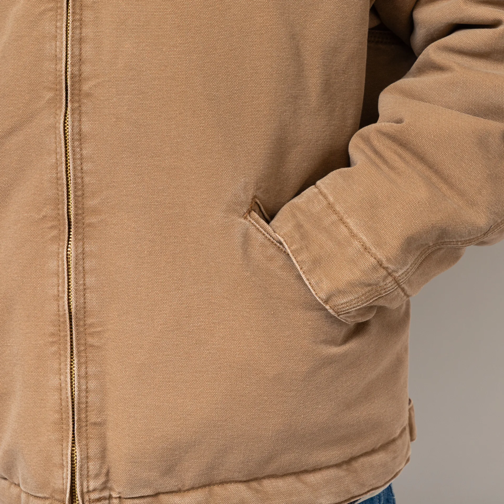 The OG Detroit Jacket from Carhartt WIP has been cut in the original loose fit from diamond quilt lined, heavyweight Dearborn Canvas that has been chalk washed for a sun-faded effect