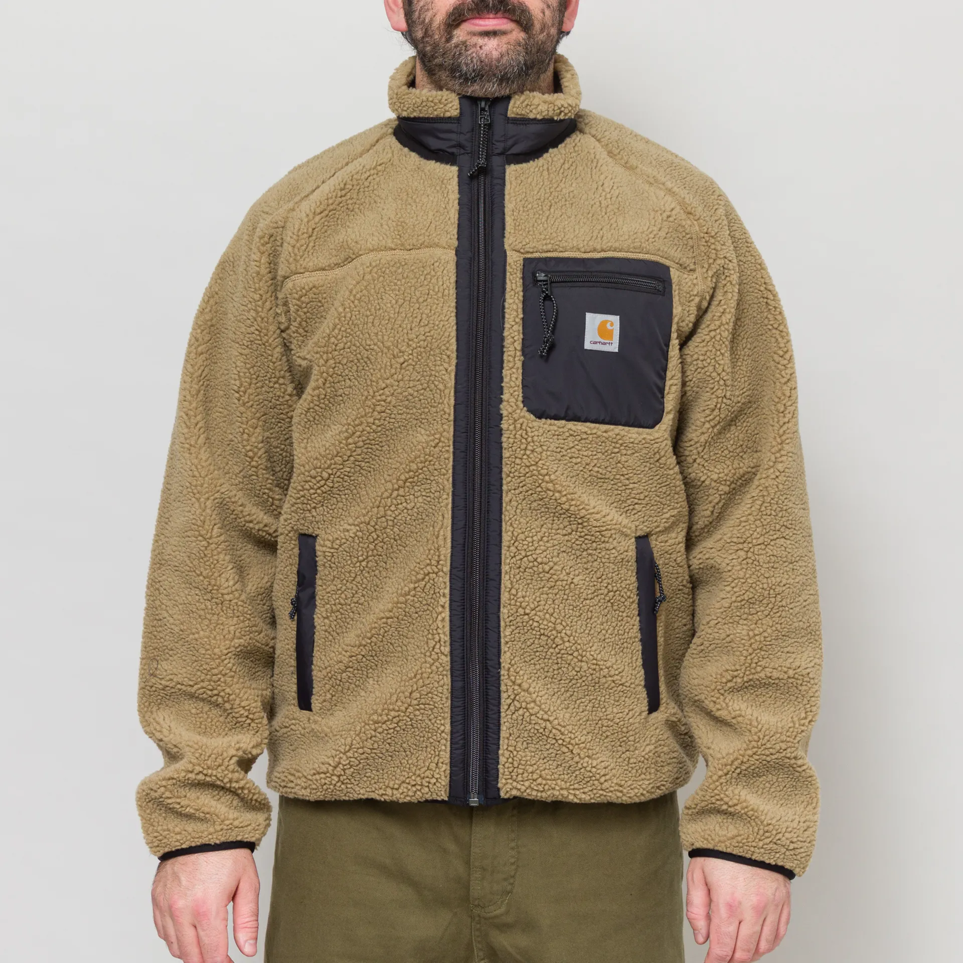 A fleece jacket from Carhartt WIP, constructed from midweight polyester pile with a mesh lining through the body and a nylon sleeve lining