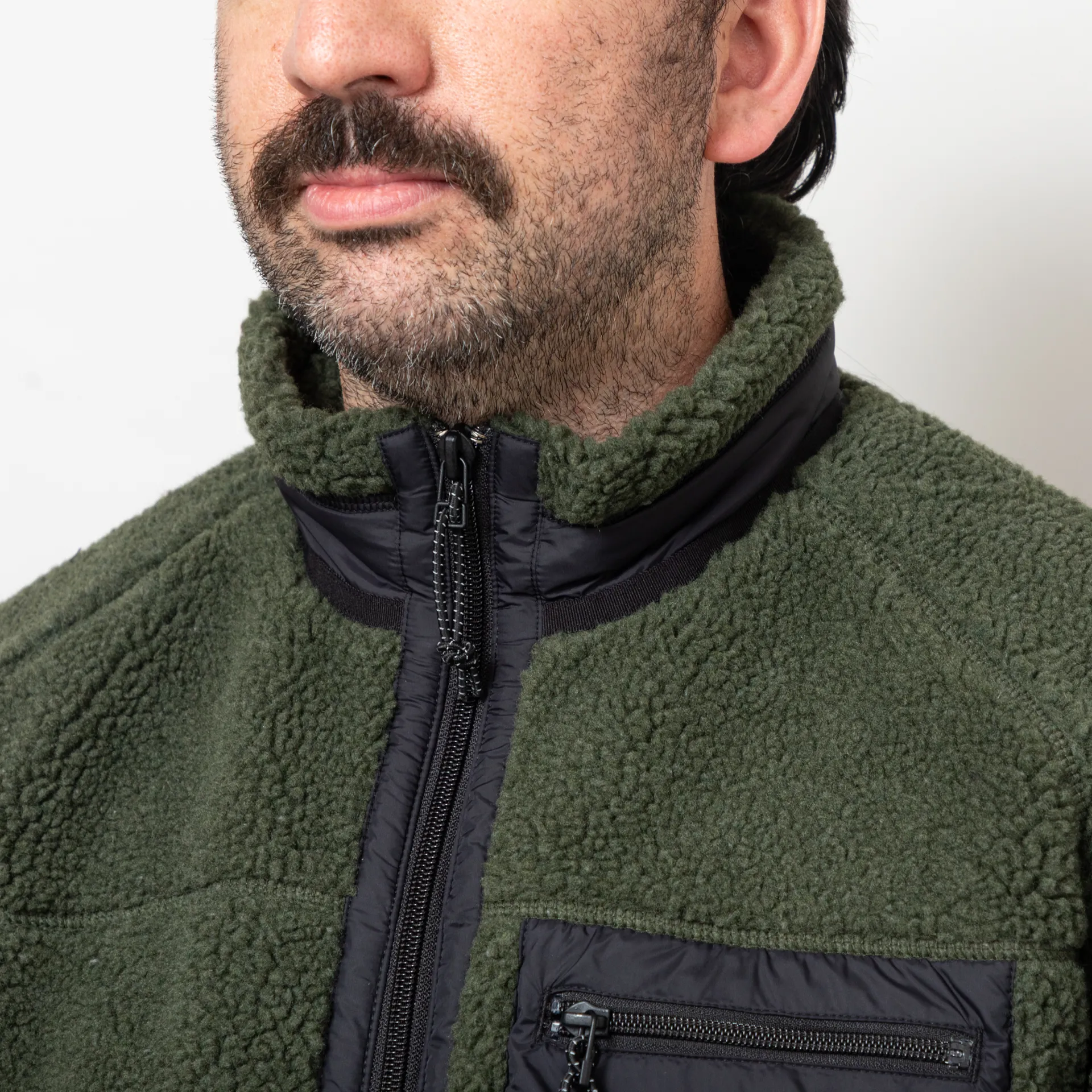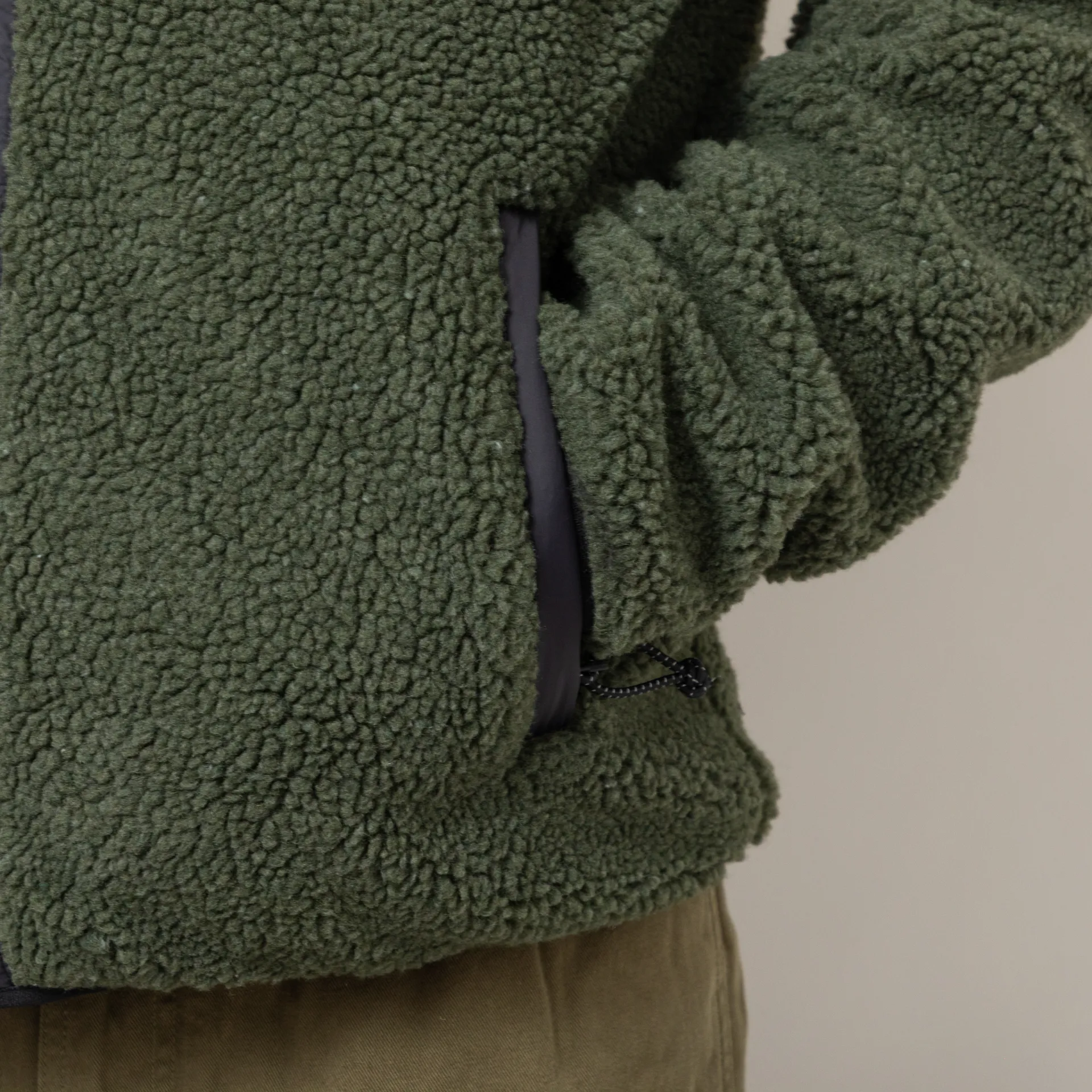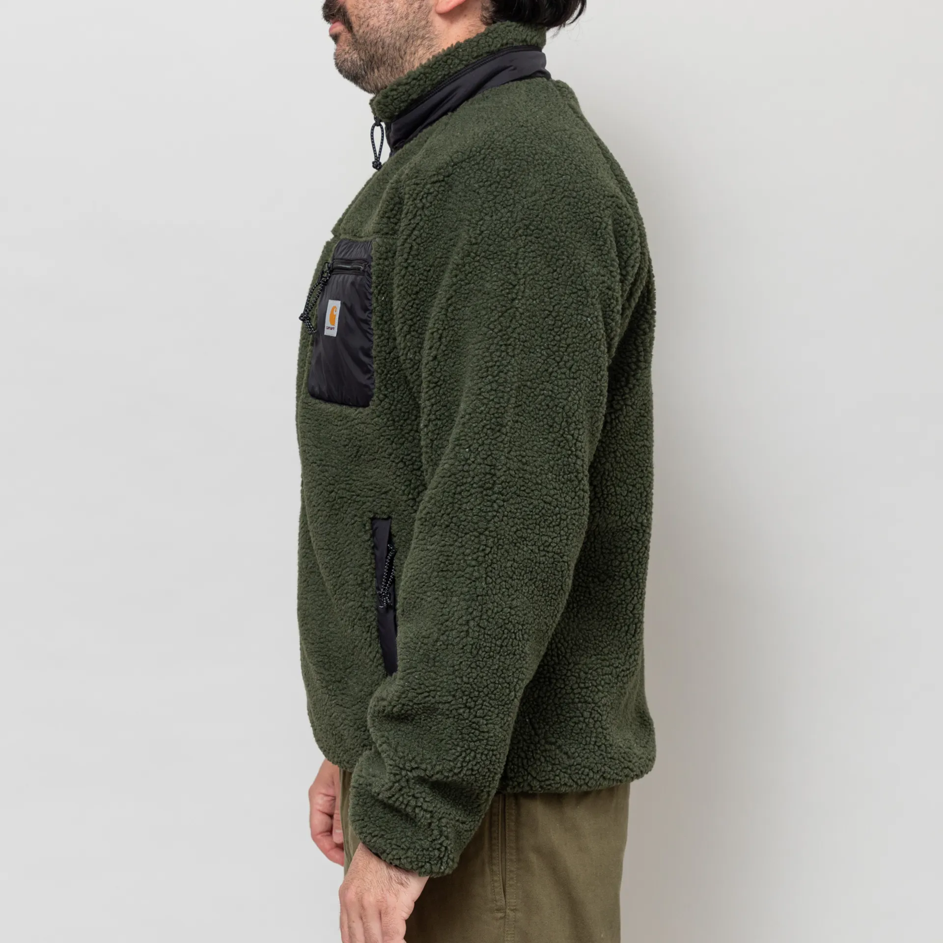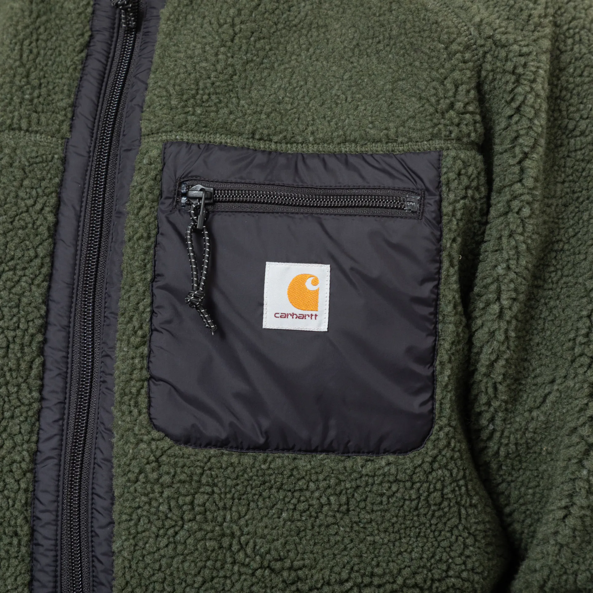 A fleece jacket from Carhartt WIP, constructed from midweight polyester pile with a mesh lining through the body and a nylon sleeve lining