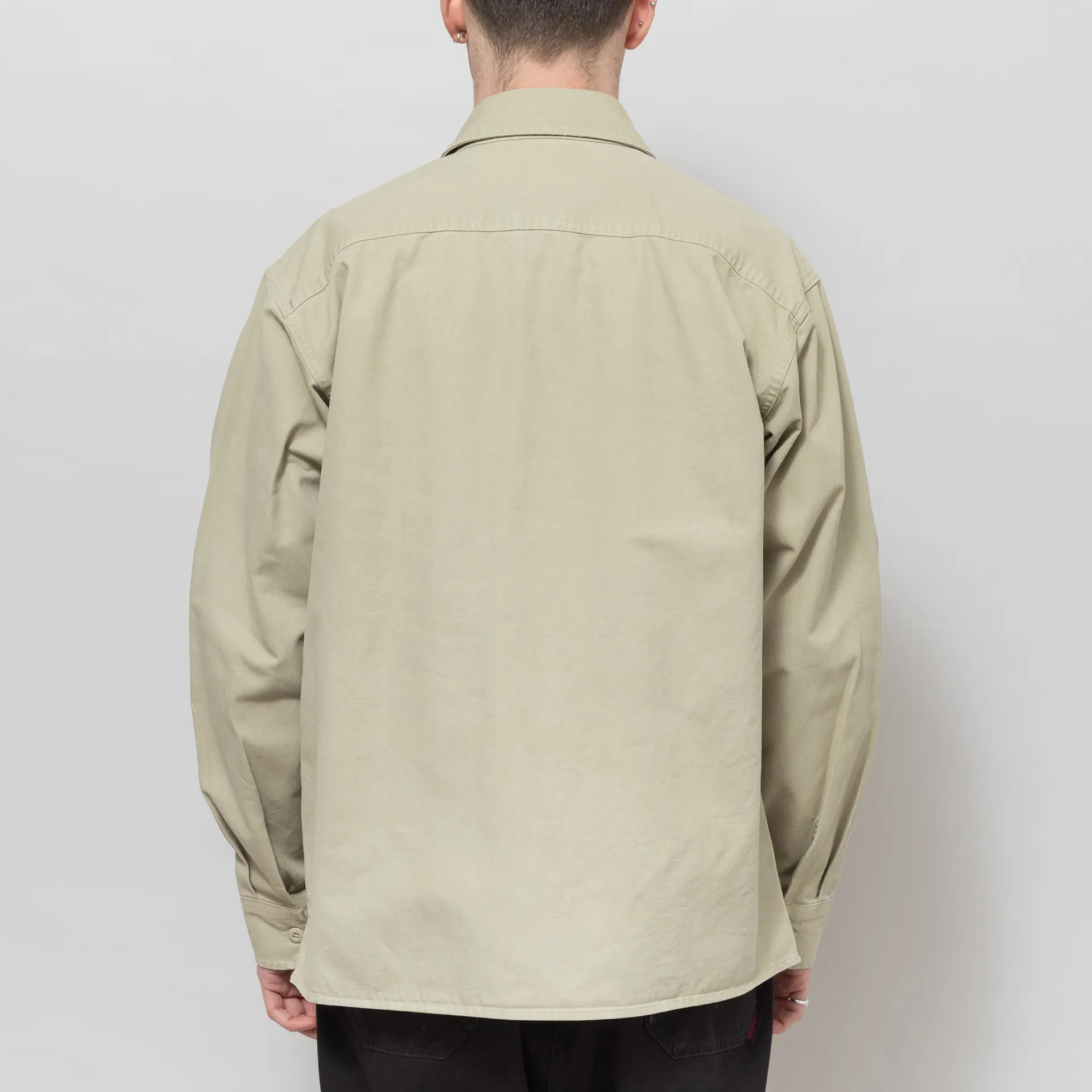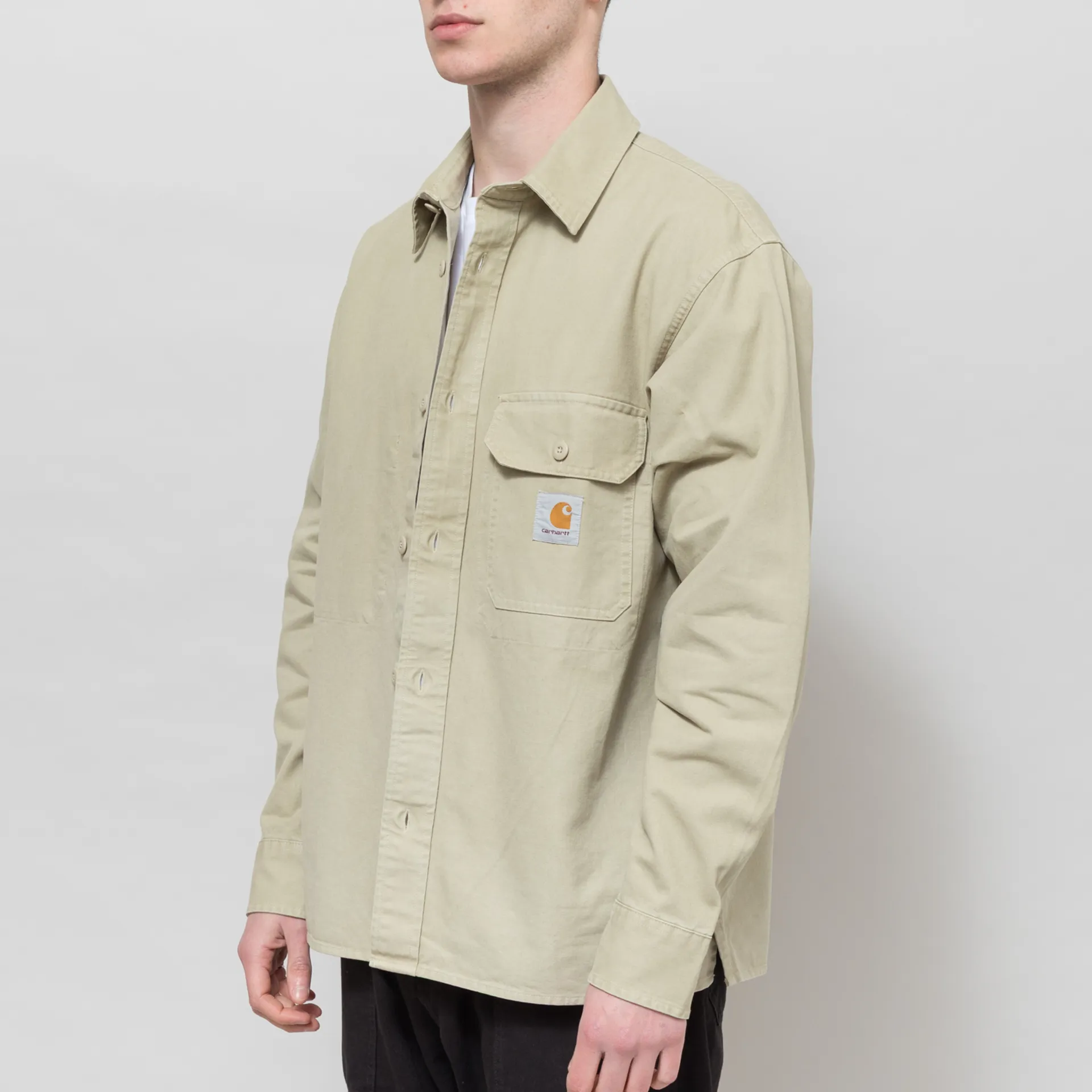 An overshirt from Carhartt WIP, cut in a relaxed fit for easy layering and crafted from heavyweight cotton drill fabric, garment-dyed for a more complex colour configuration. This style is unlined and features a full button-through front, leading to a classic collar, with buttoned cuffs and a single chest pocket. Finished with a woven Square Label.